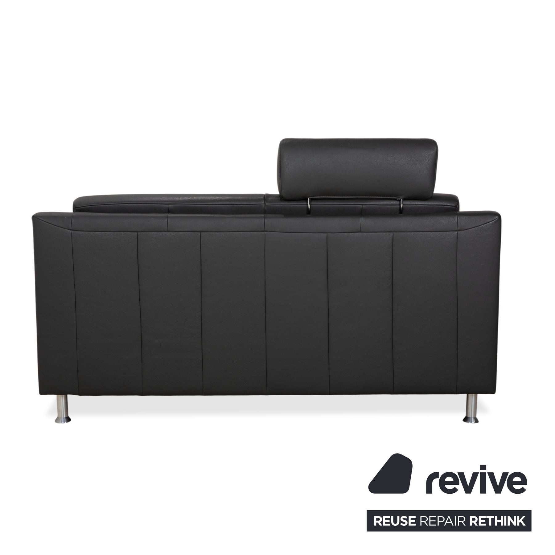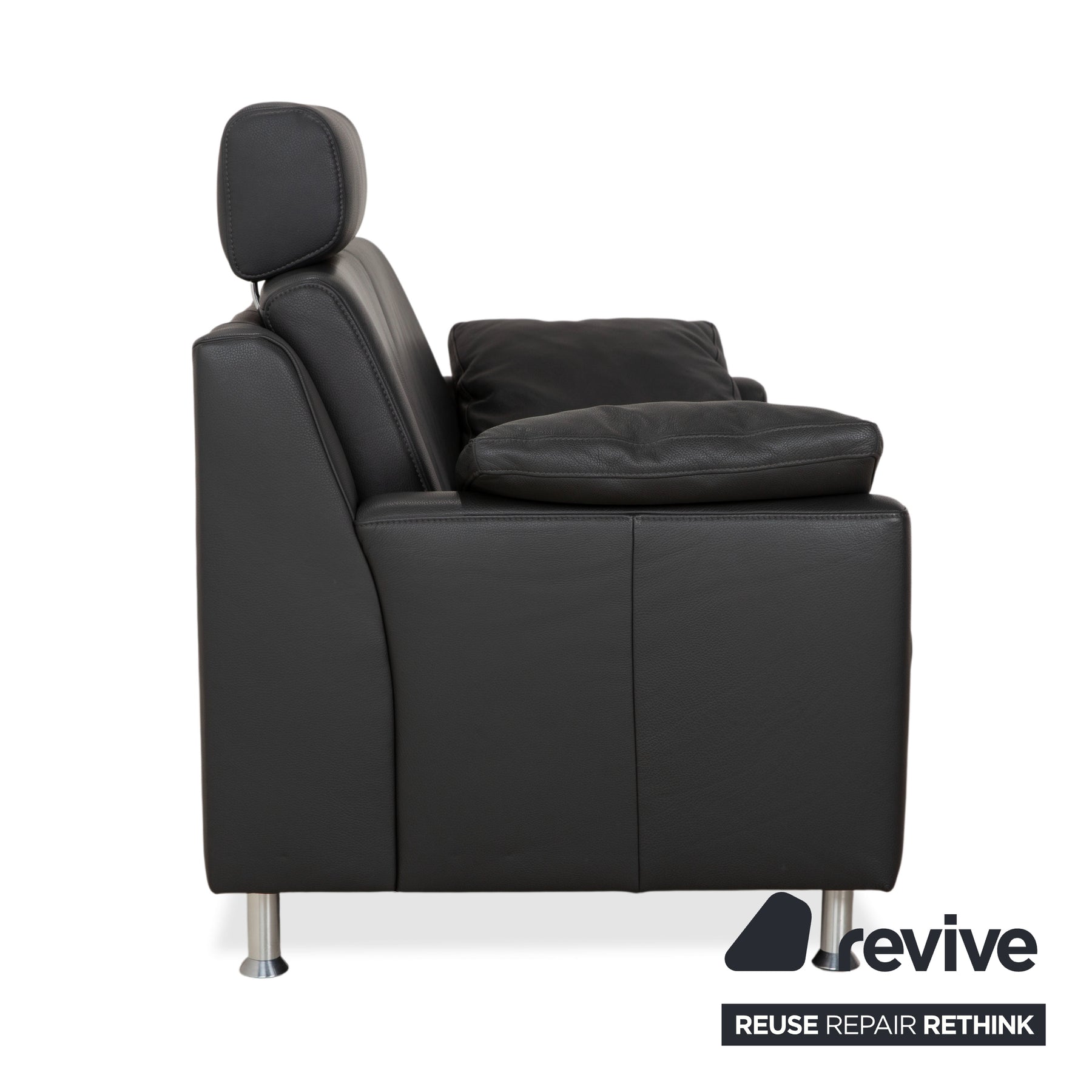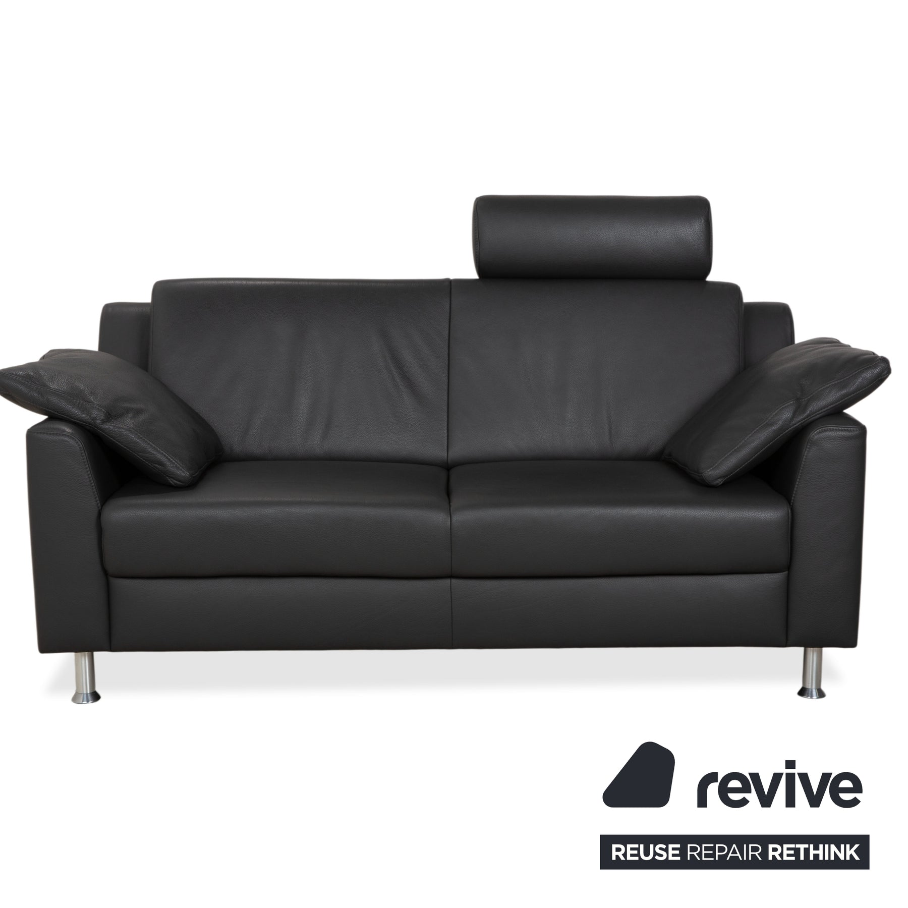 Canapé deux places Mondo en cuir gris foncé avec appuie-tête