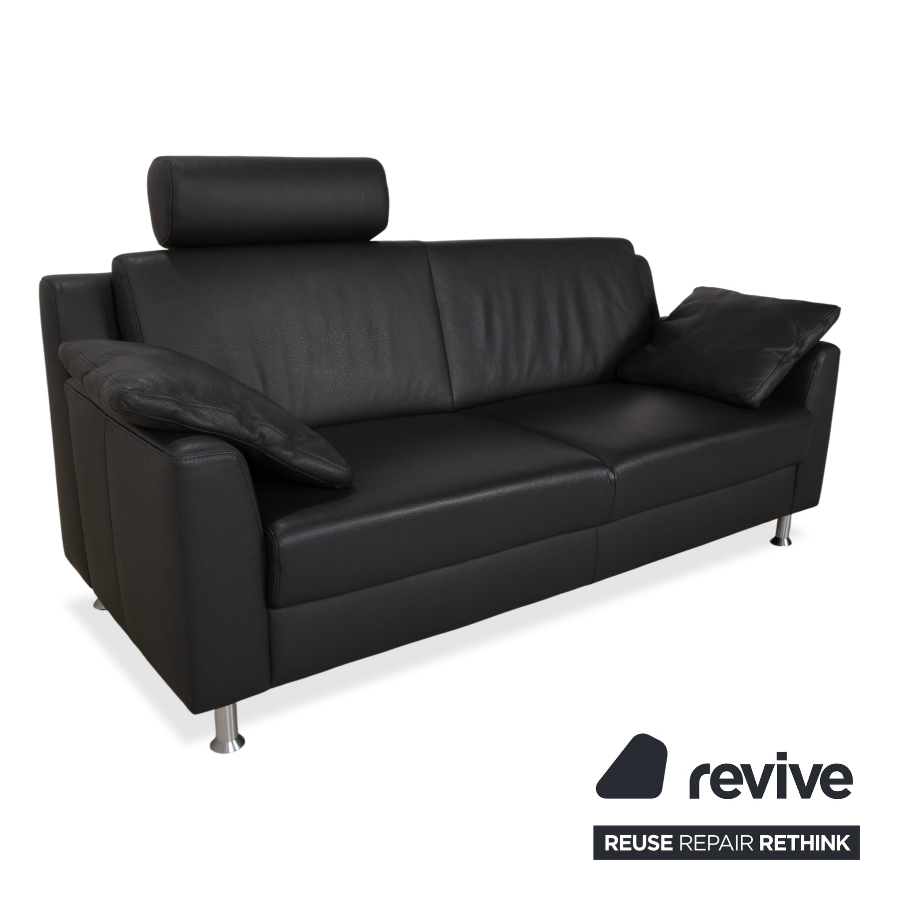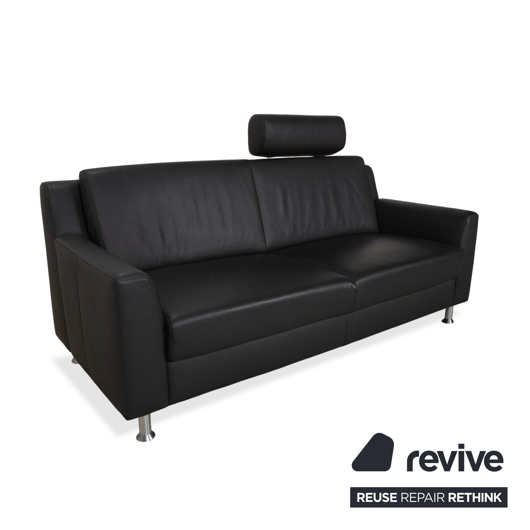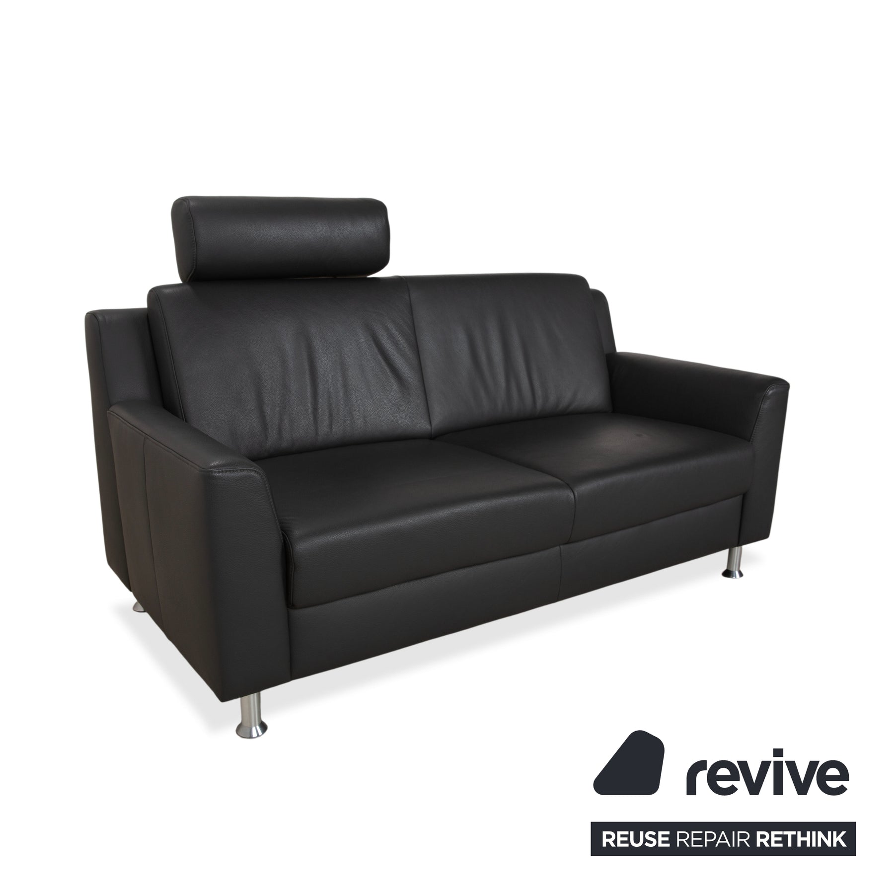 Canapé deux places Mondo en cuir gris foncé avec appuie-tête