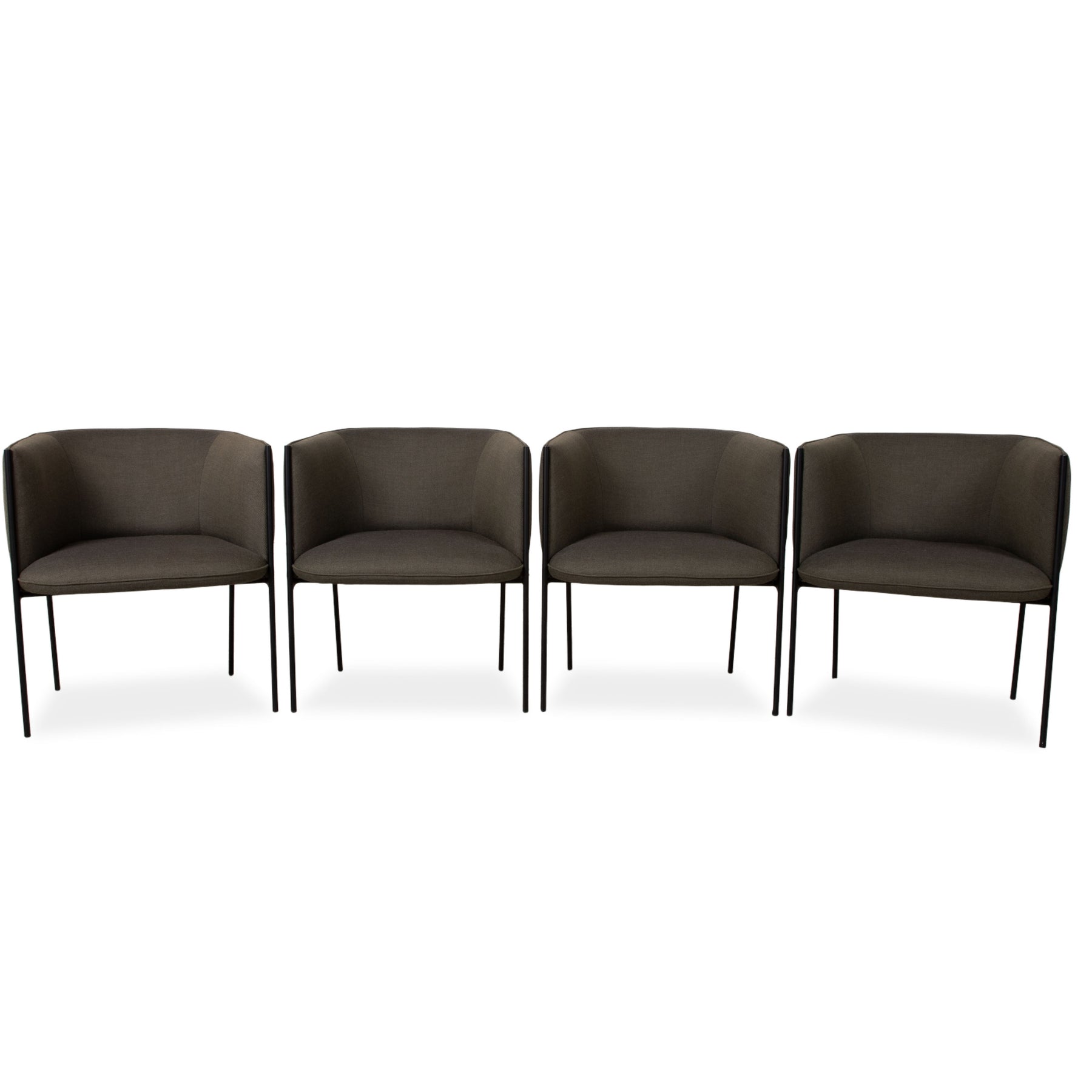 Ensemble de 4 chaises Wendelbo Sepal, tissu : laine, gris Fiord de Kvadrat, structure : acier noir, Luca Nichetto