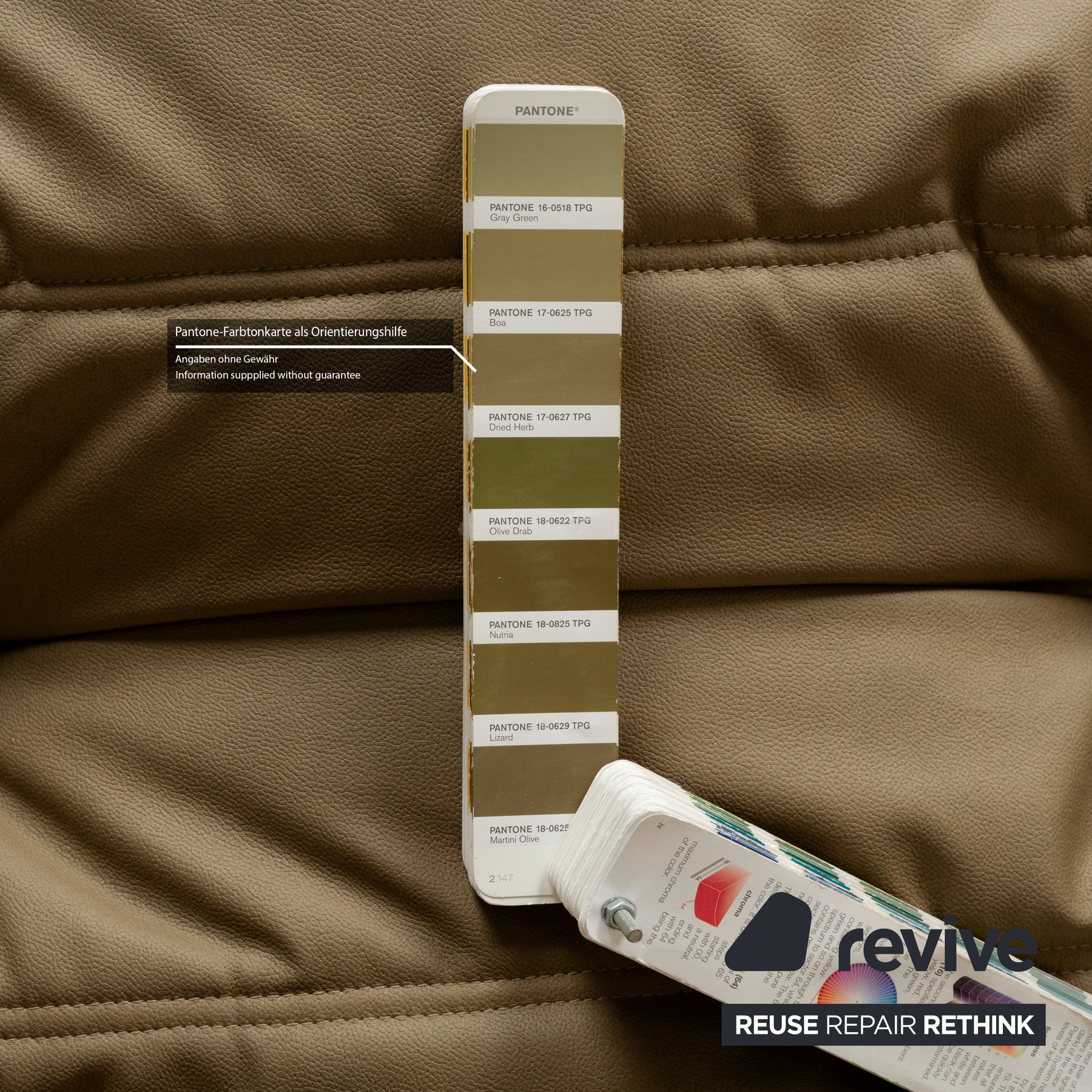 Canapé Togo trois places en cuir vegan vert olive kaki Ligne Roset