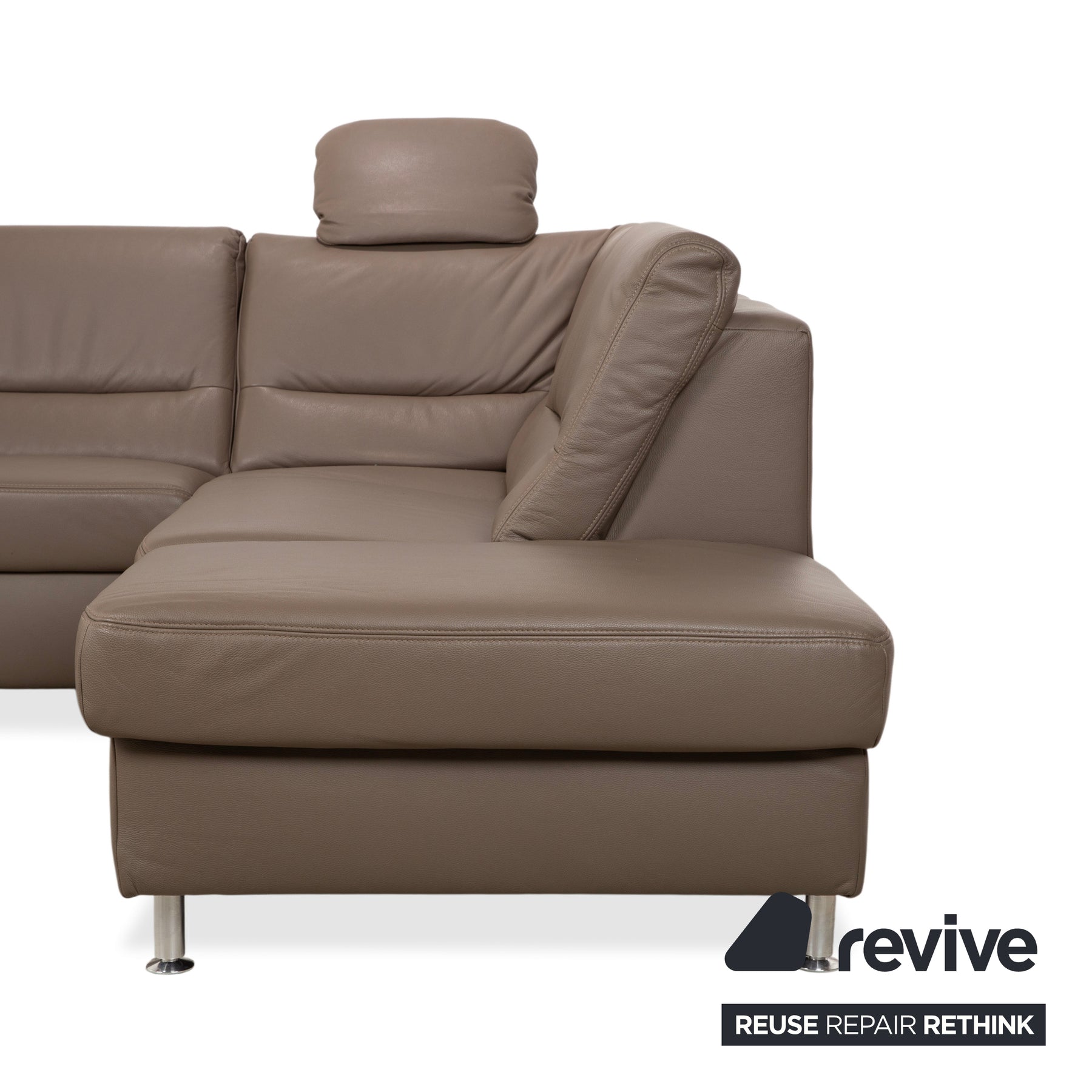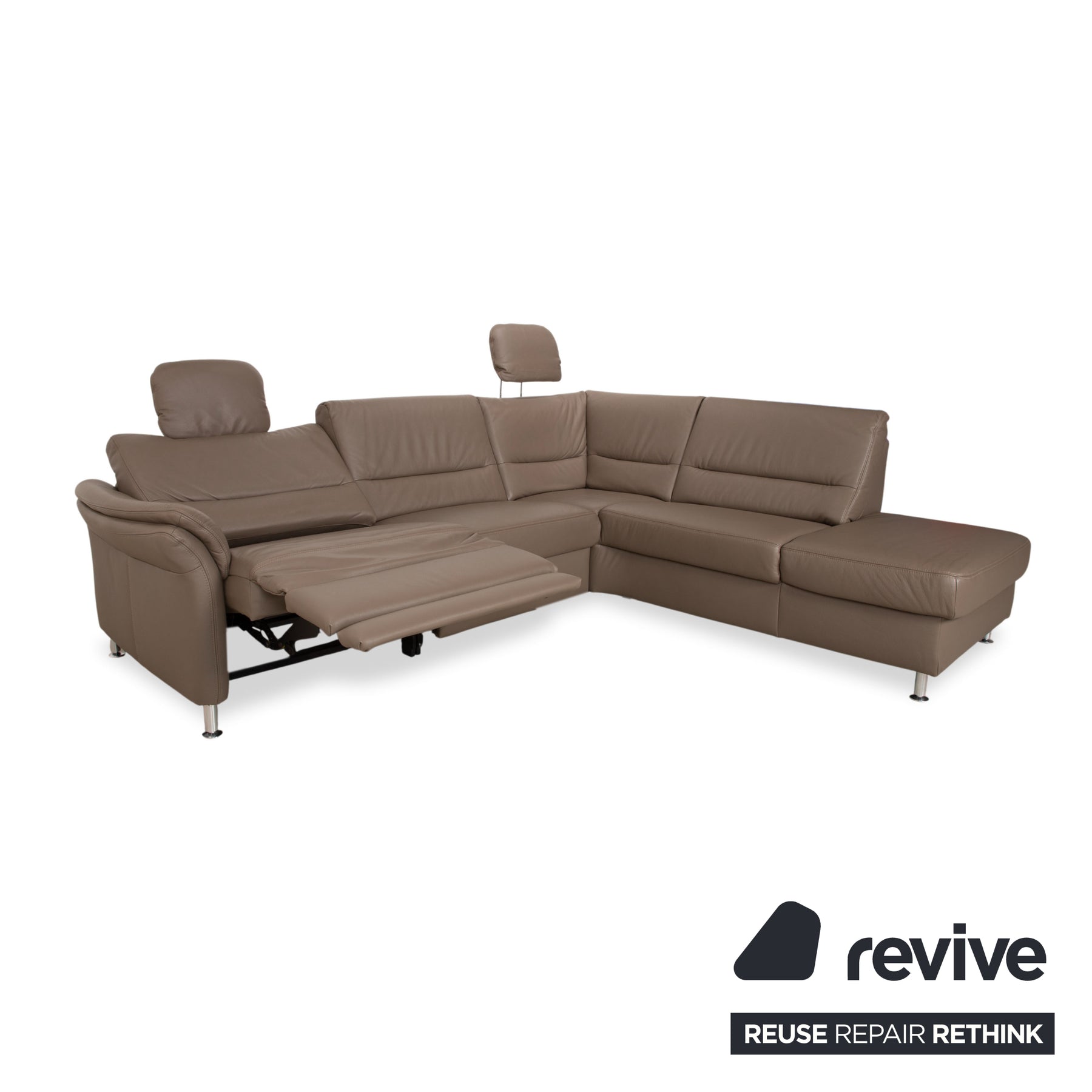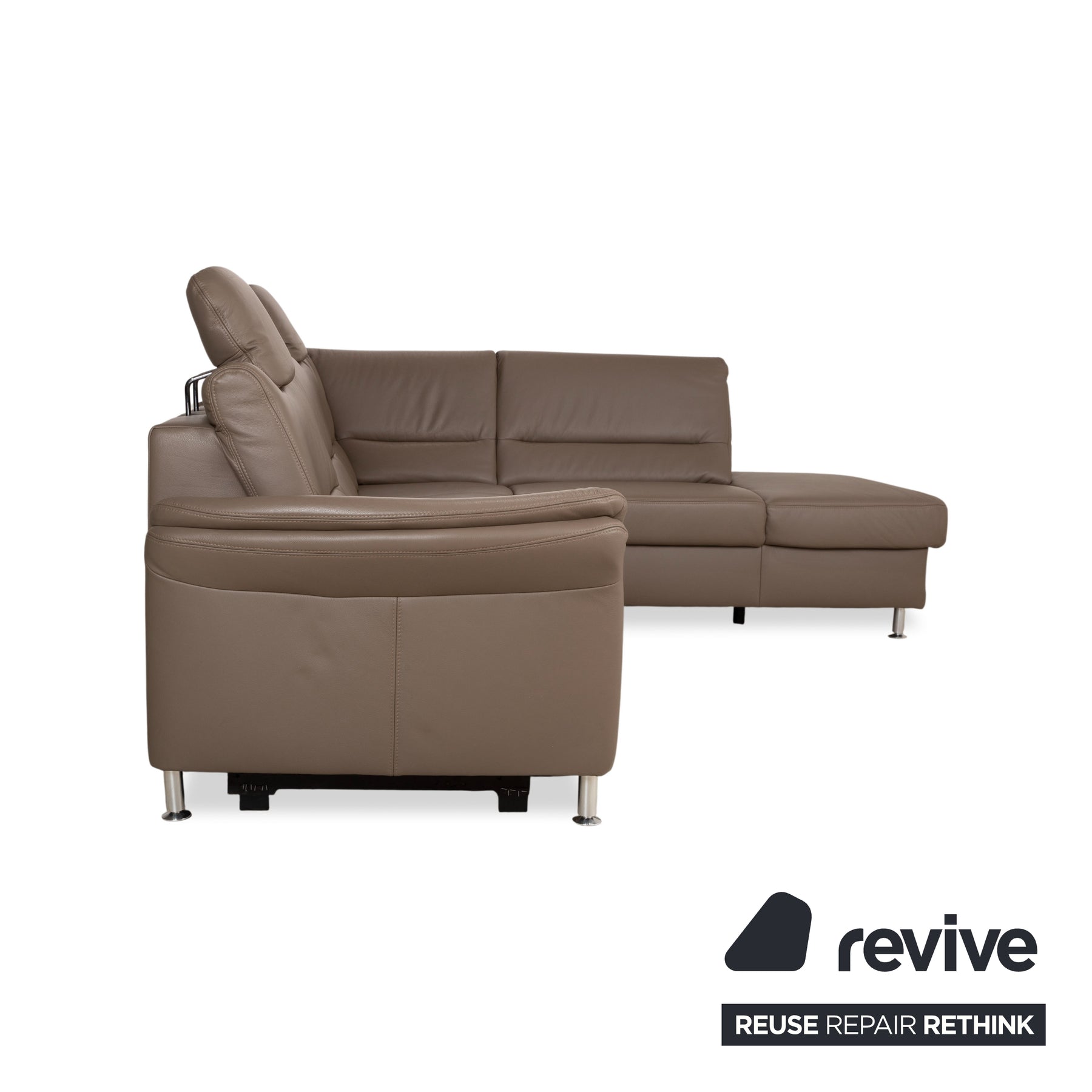 Polinova Leder Ecksofa Grau Braun Grau Taupe Couch elektrische Funktion Recamiere Rechts inkl. Kopfstützen