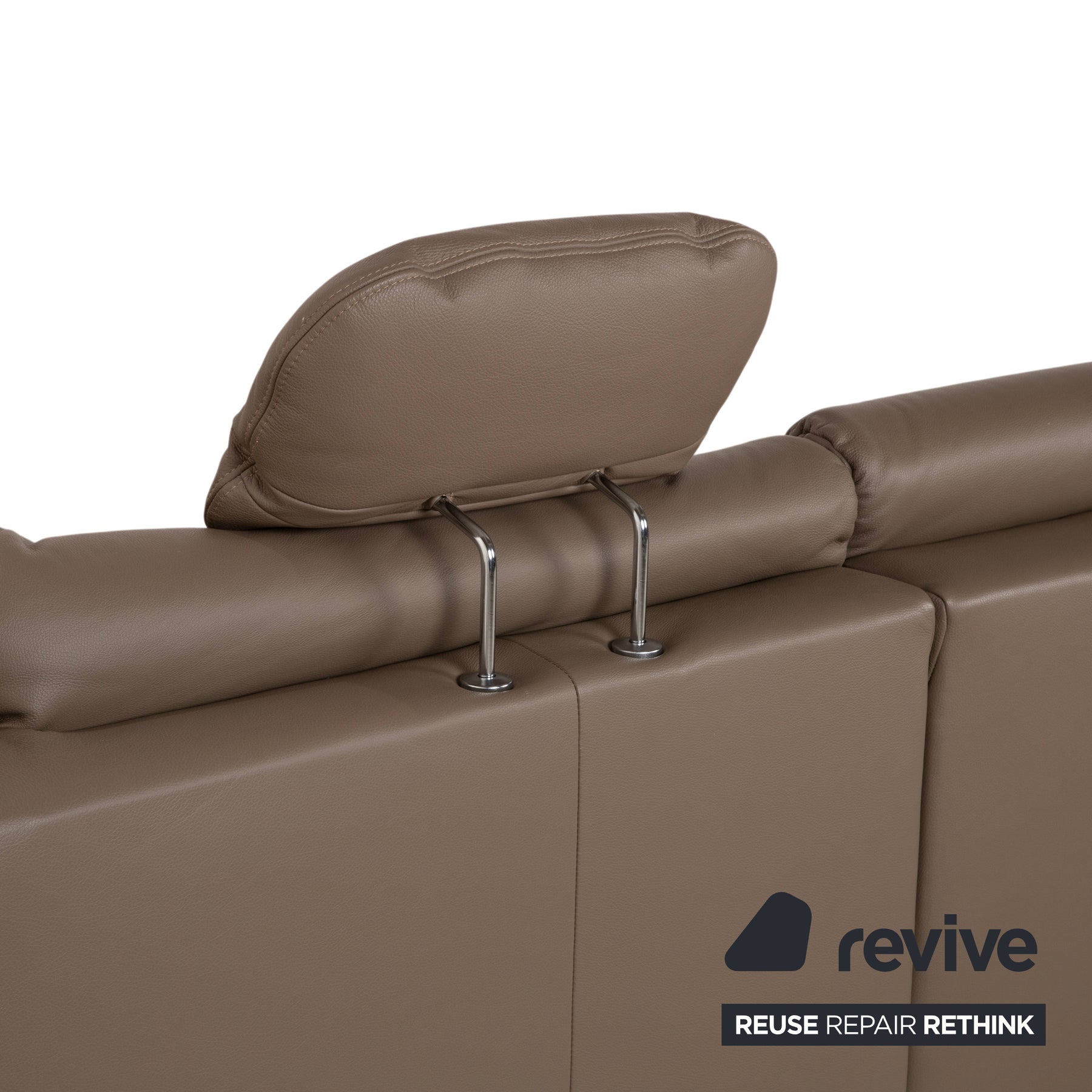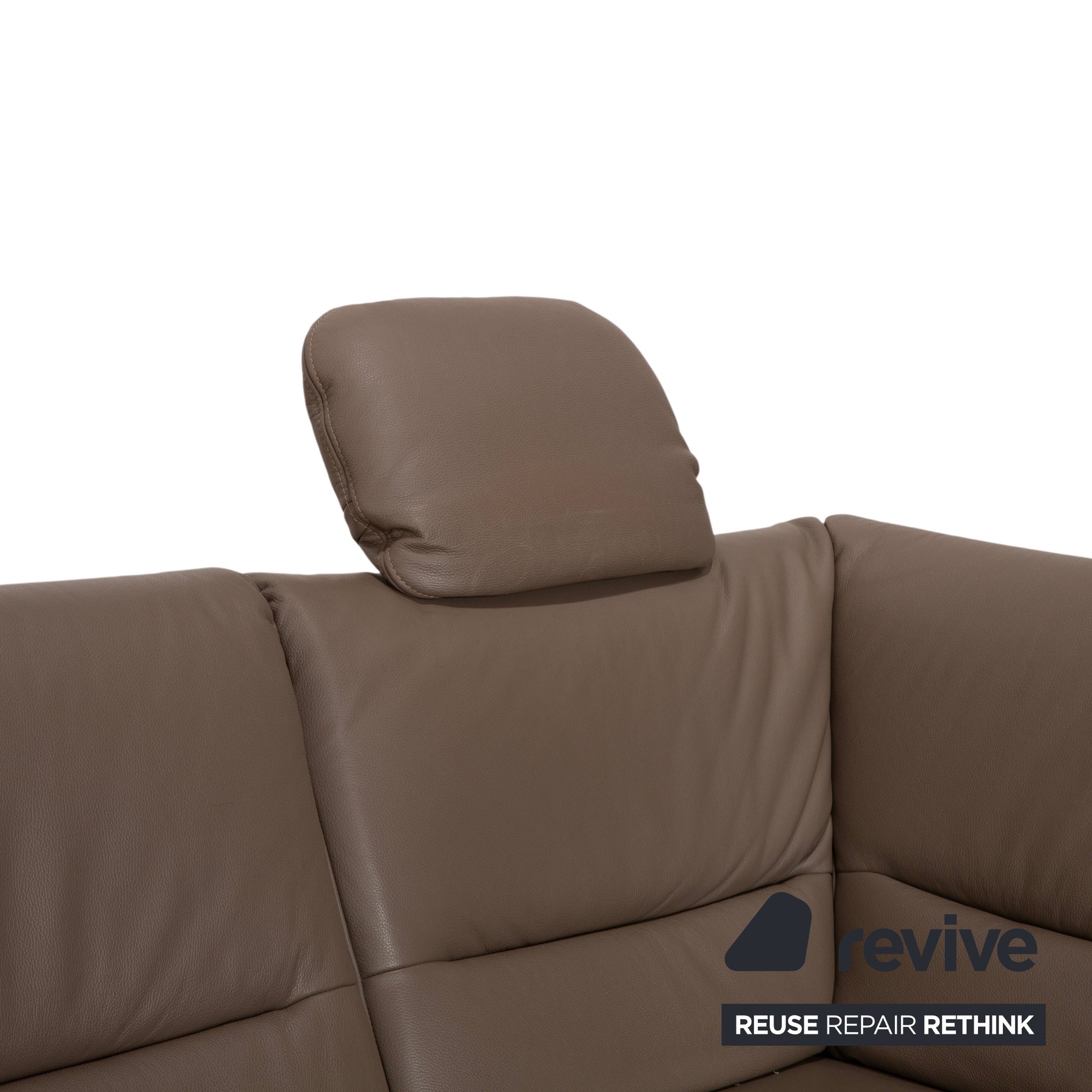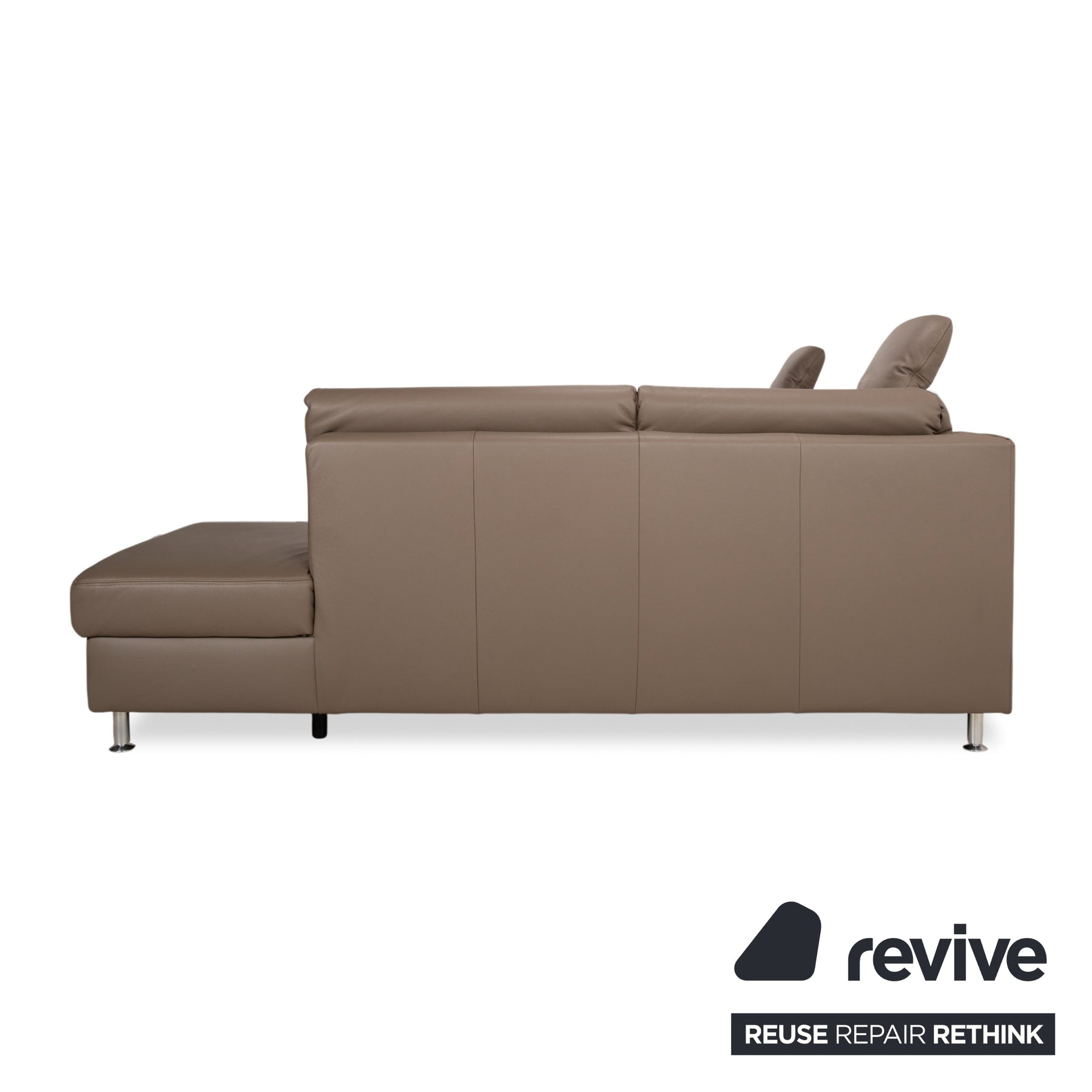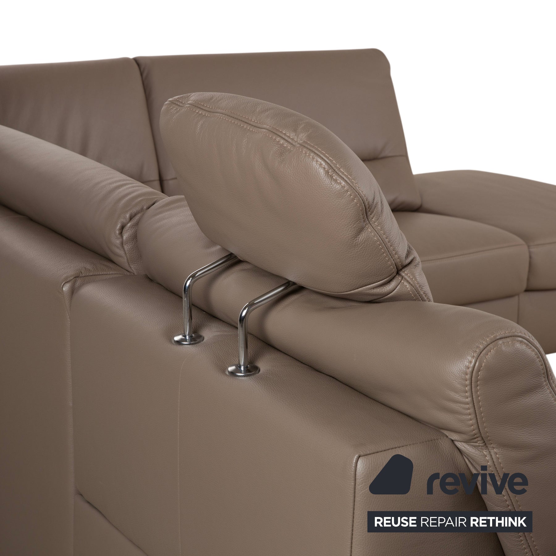 Polinova Leder Ecksofa Grau Braun Grau Taupe Couch elektrische Funktion Recamiere Rechts inkl. Kopfstützen