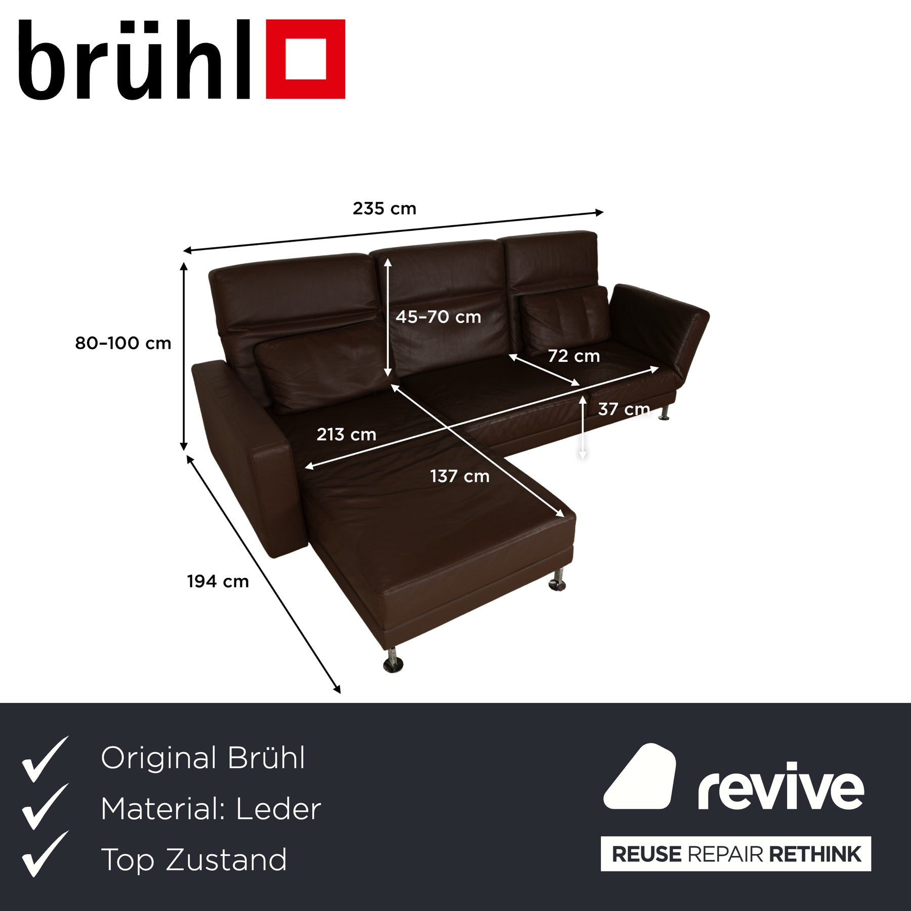 Canapé d'angle en cuir Brühl Moule marron méridienne gauche
