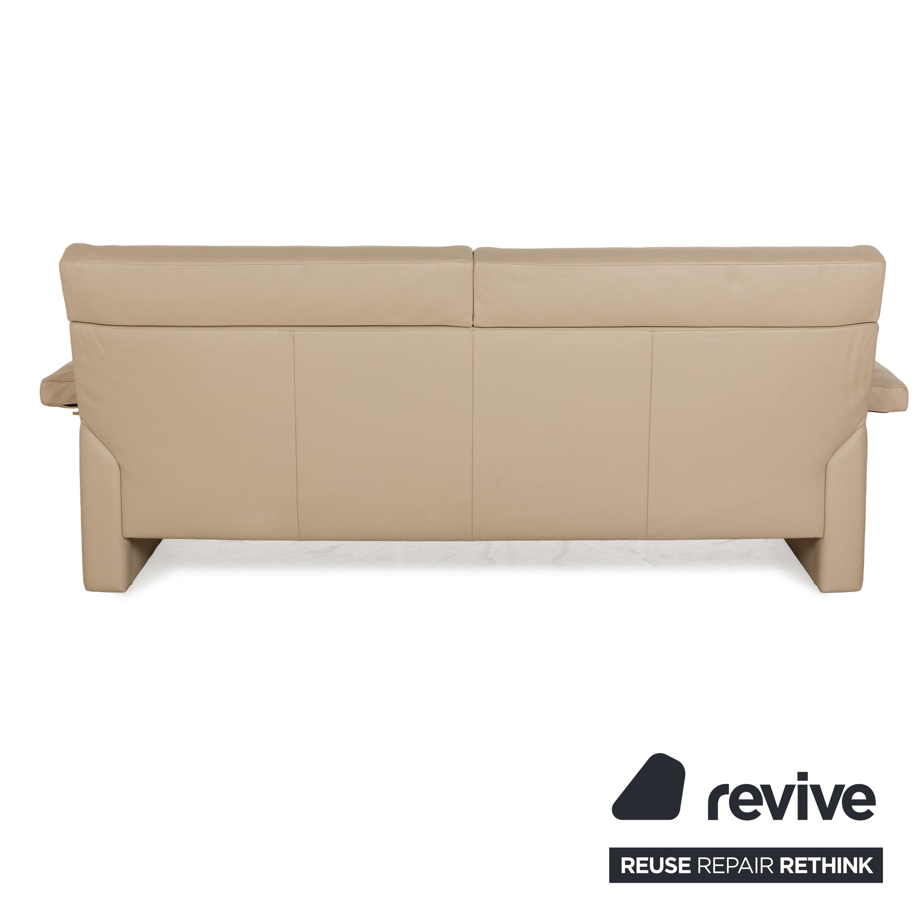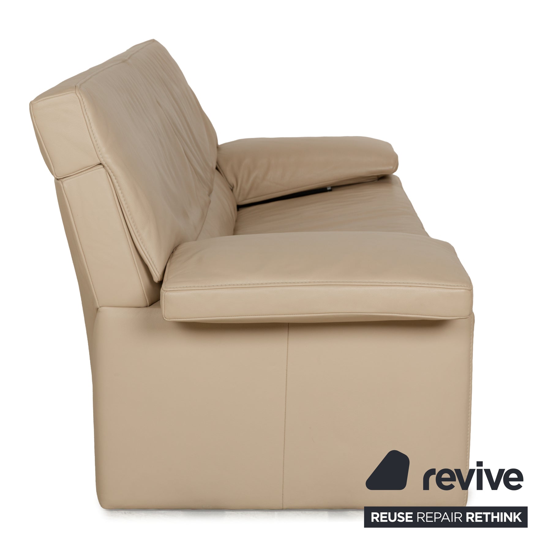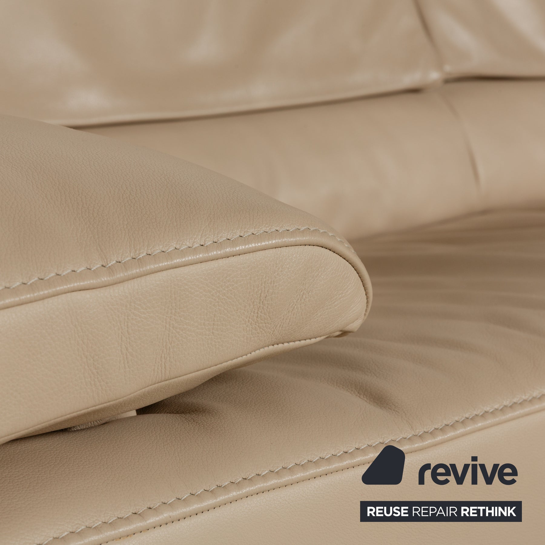 L'ensemble de canapés JR 8750 de Jori, composé d'un canapé trois places et d'un canapé deux places, est revêtu de cuir beige et s'étend jusqu'au sol. Il se caractérise par son design minimaliste et linéaire et, grâce à sa couleur neutre, s'harmonise facilement avec d'autres meubles. Les accoudoirs et les dossiers sont réglables en hauteur, garantissant un confort optimal.