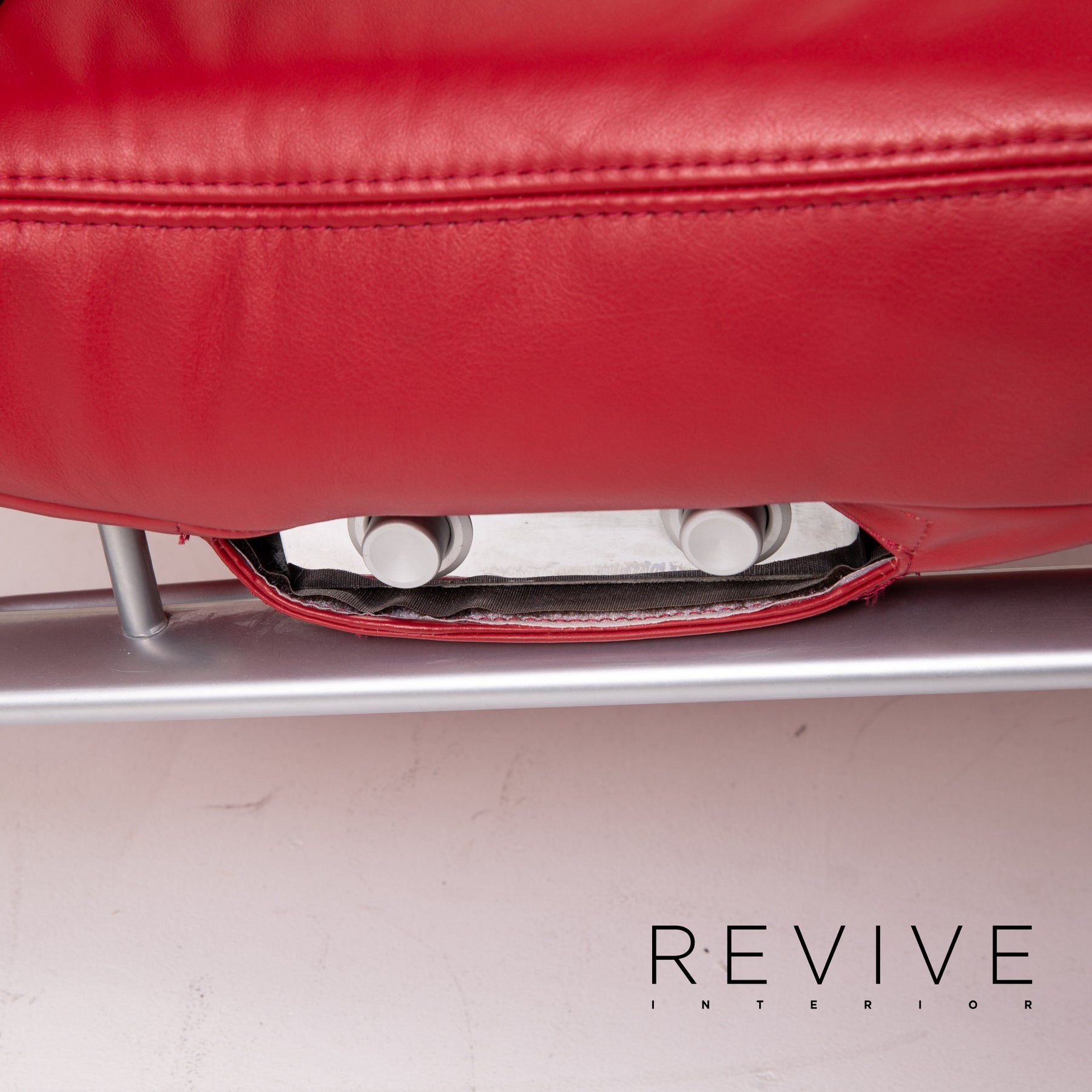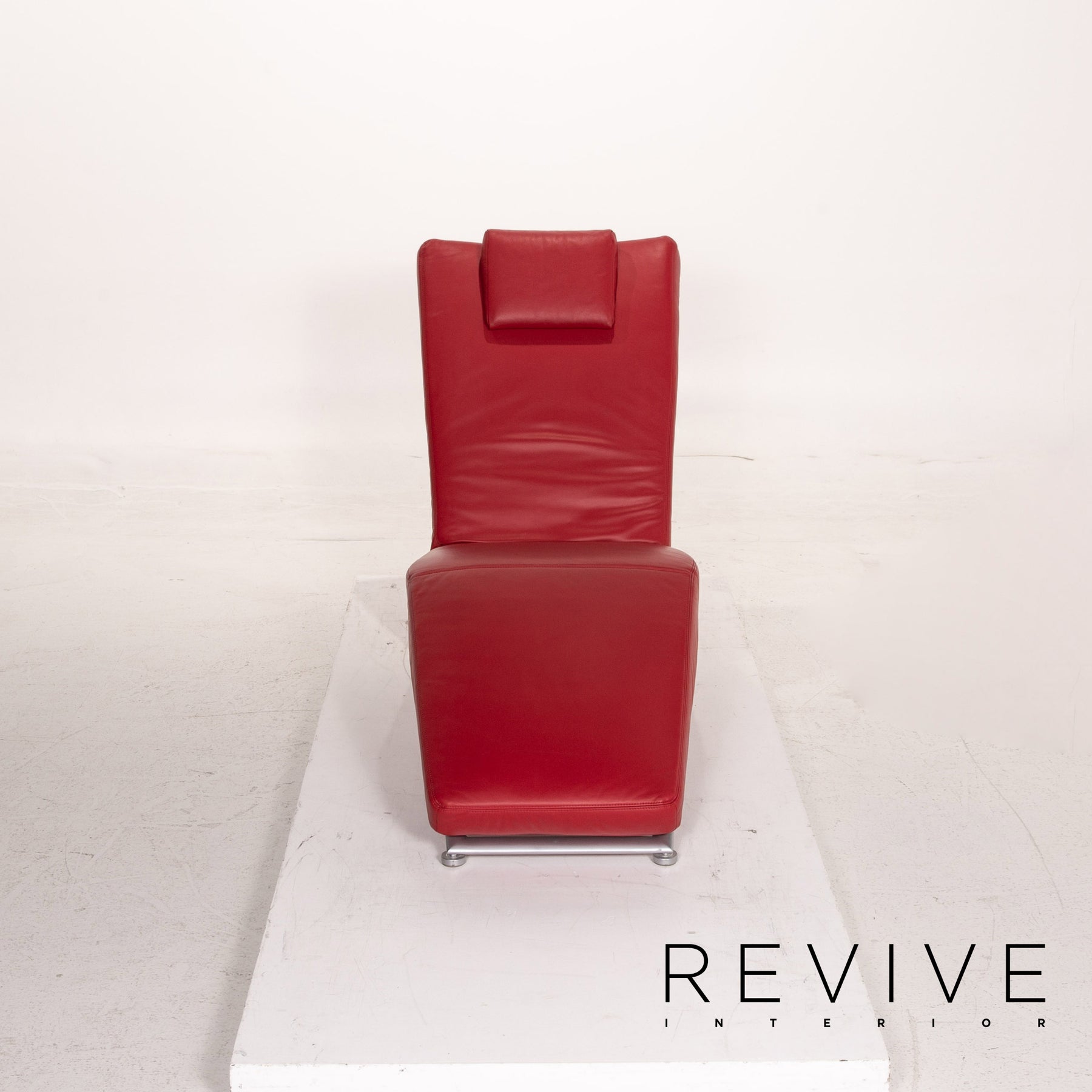 La chaise longue Jeremiah du fabricant allemand Koinor est recouverte de cuir véritable rouge et repose sur une délicate structure en métal. Le design se caractérise par un langage de conception ergonomique et un look mince. Pour plus de confort, le transat peut être placé en position relaxation.