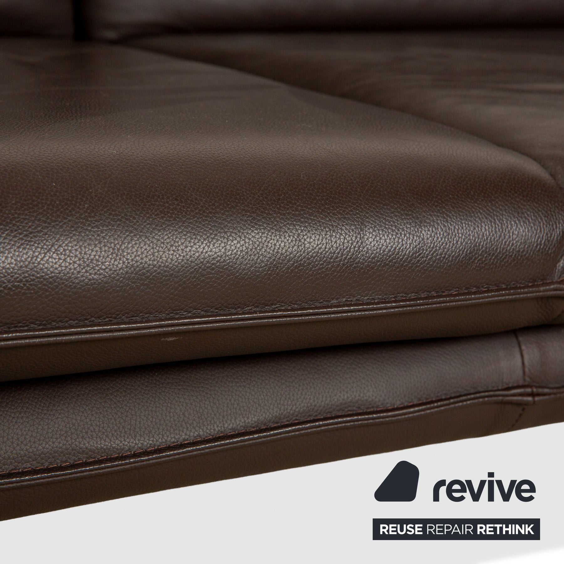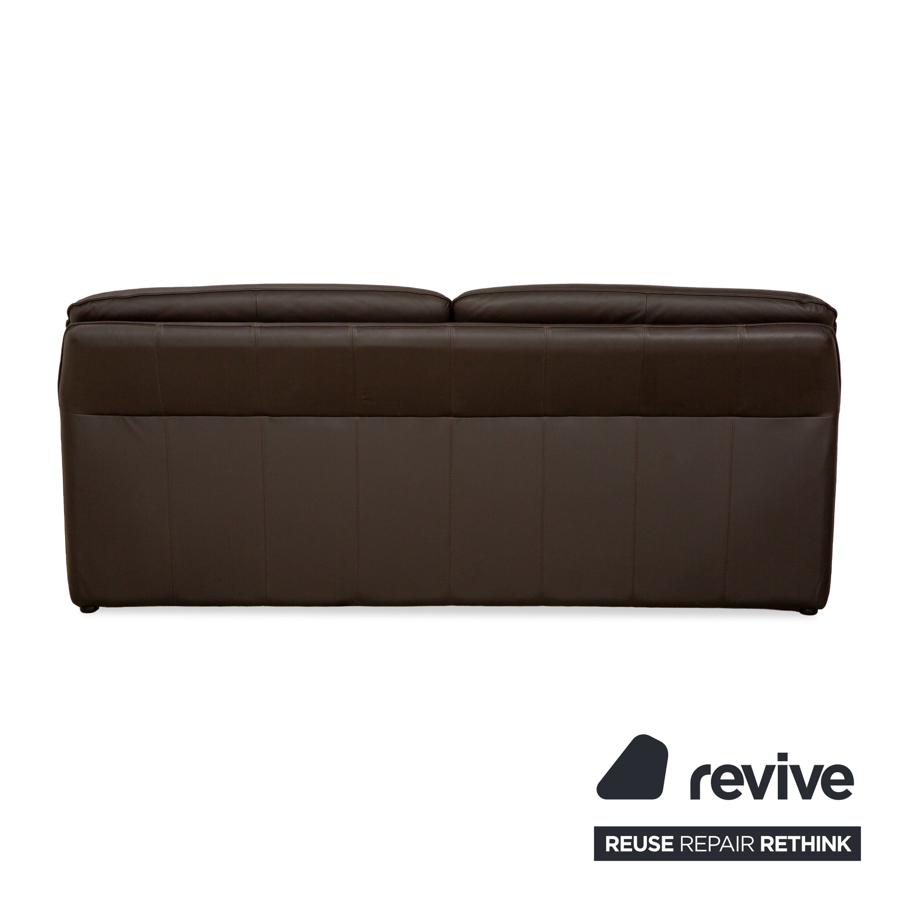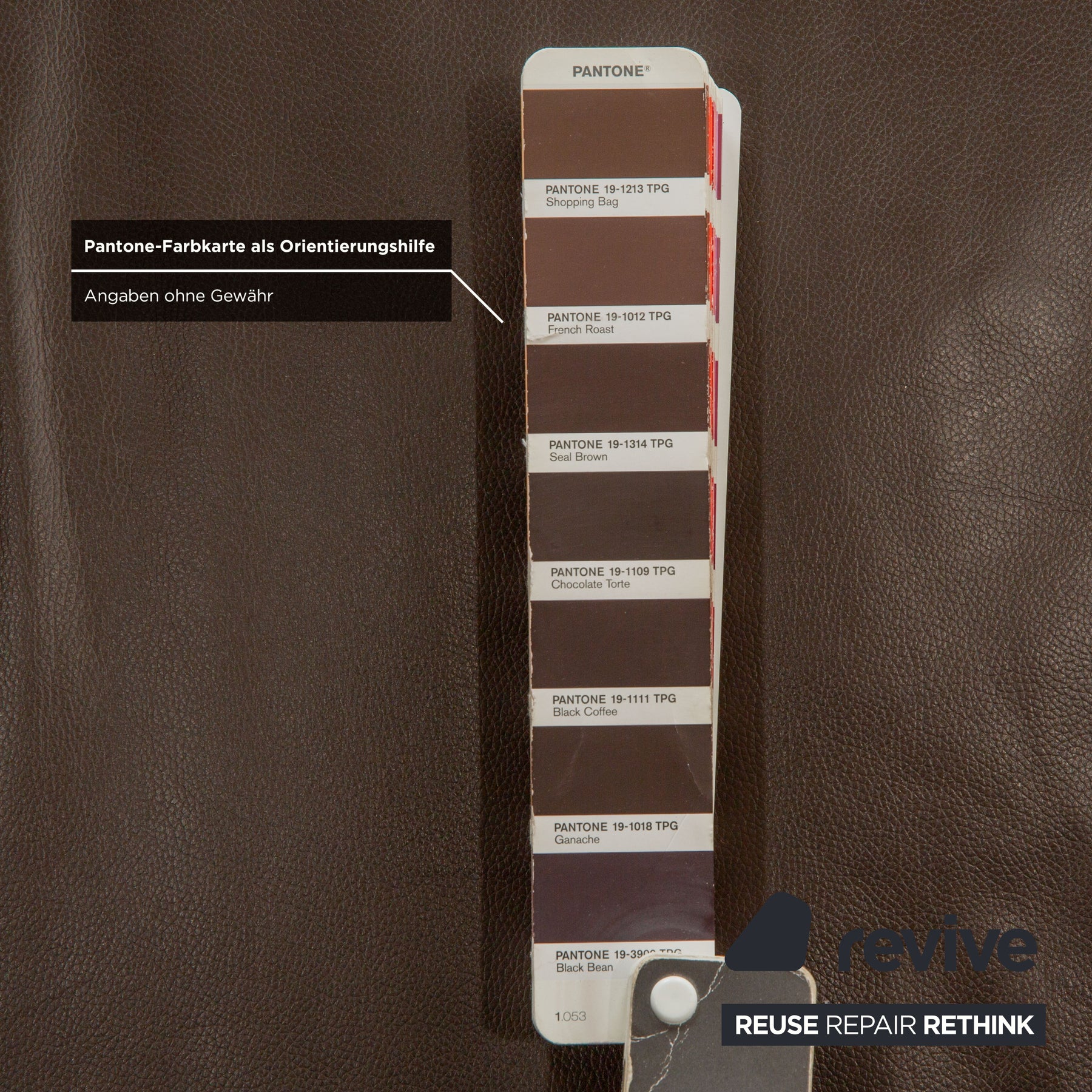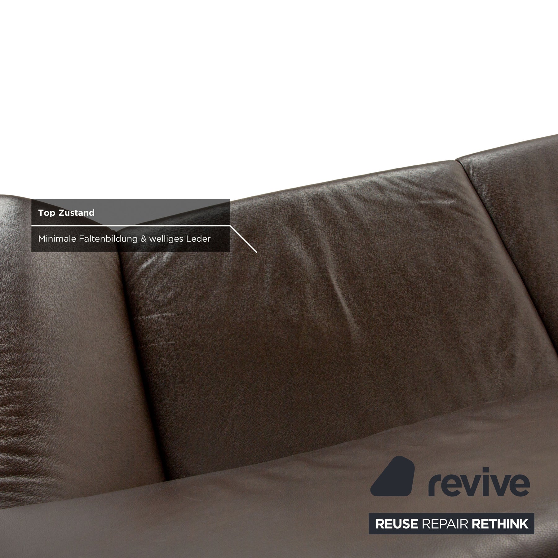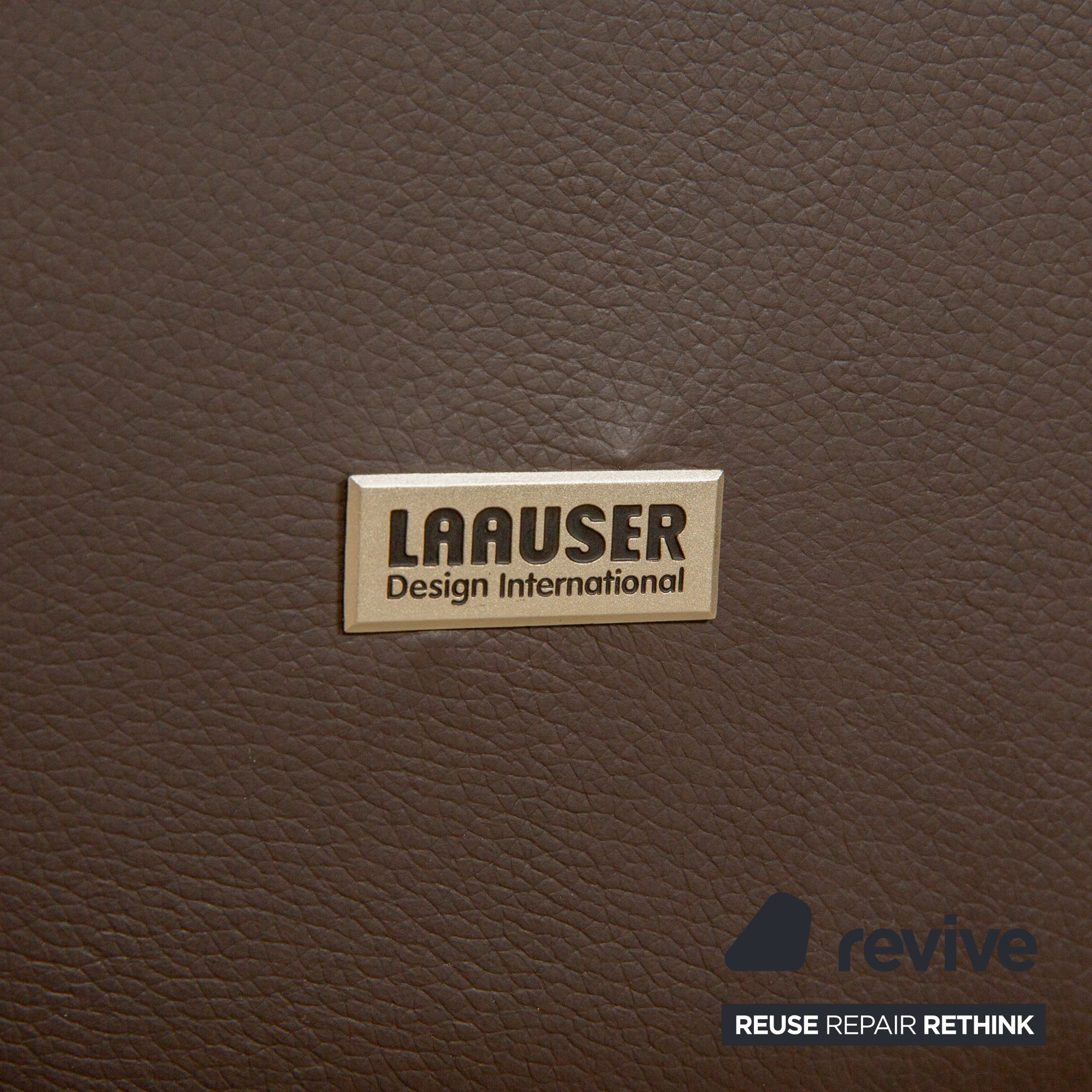 Le canapé Atlanta de Laauser est revêtu de cuir marron et repose sur des côtés qui s'étendent jusqu'au sol et se terminent par des embouts discrets. Ce canapé deux places se distingue par son design aérien et minimaliste et offre un confort optimal grâce à son dossier haut et ses larges accoudoirs.