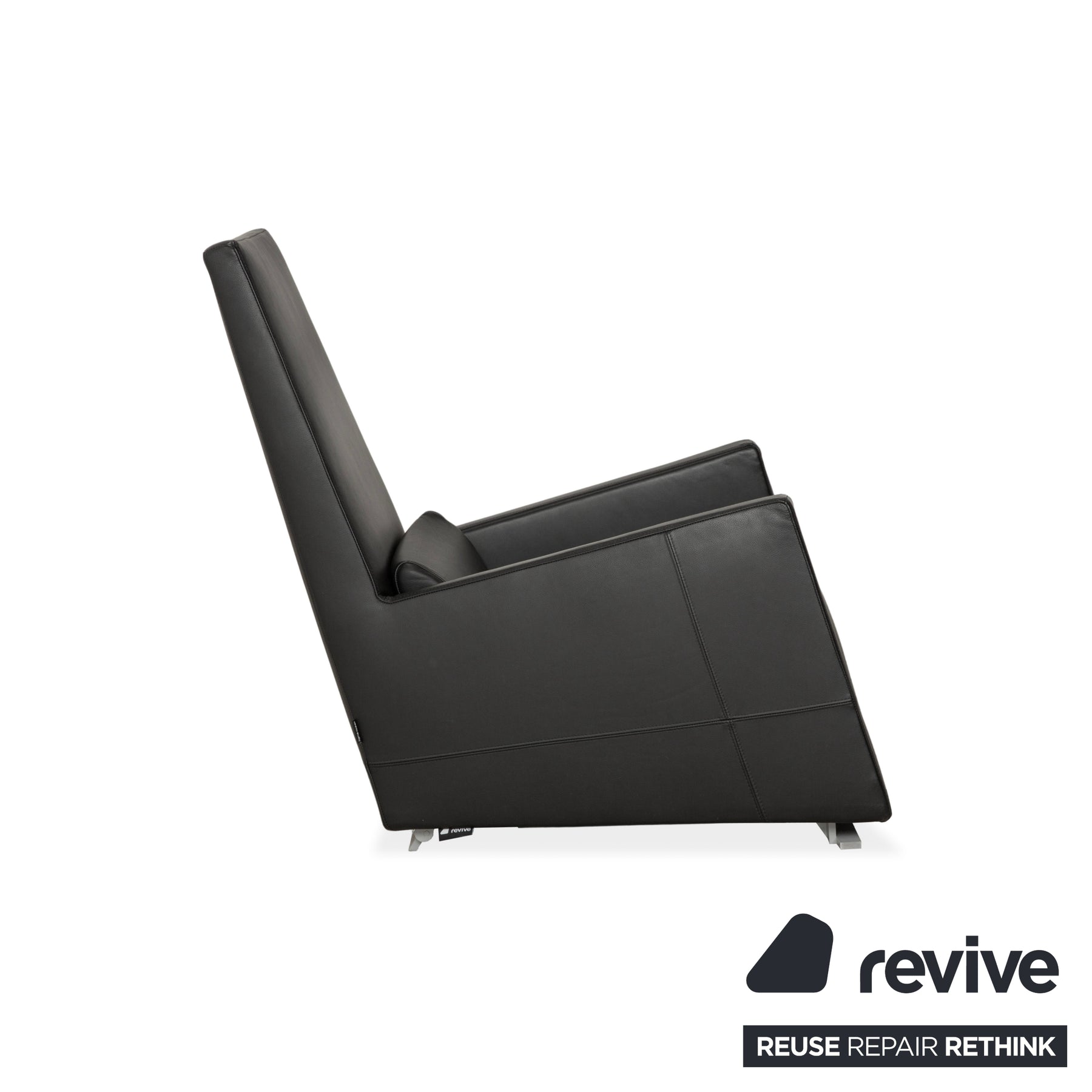 Le fauteuil Jul de Ligne Rose séduit par son design épuré et anguleux et son revêtement en cuir noir. Son dossier haut et droit lui confère une allure remarquable, tandis que ses accoudoirs étroits soulignent son design moderne. Reposant sur des pieds rectangulaires en métal, ce fauteuil allie robustesse et élégance.