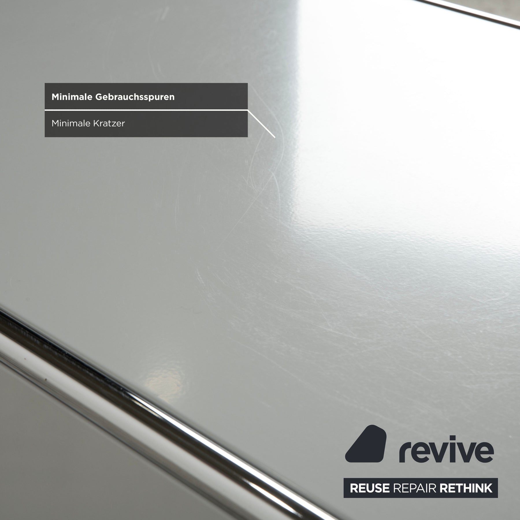 Le buffet USM Haller allie design intemporel et organisation fonctionnelle. Deux tiroirs offrent un espace de rangement, tandis qu'une étagère ouverte permet d'accéder rapidement aux objets fréquemment utilisés. Le grand tiroir inférieur offre un espace de rangement supplémentaire pour vos dossiers, documents ou autres objets. Fabriqué avec la structure en tube d'acier chromé emblématique et des étagères en métal bleu clair/gris clair, ce meuble séduit par ses lignes épurées et sa qualité durable.