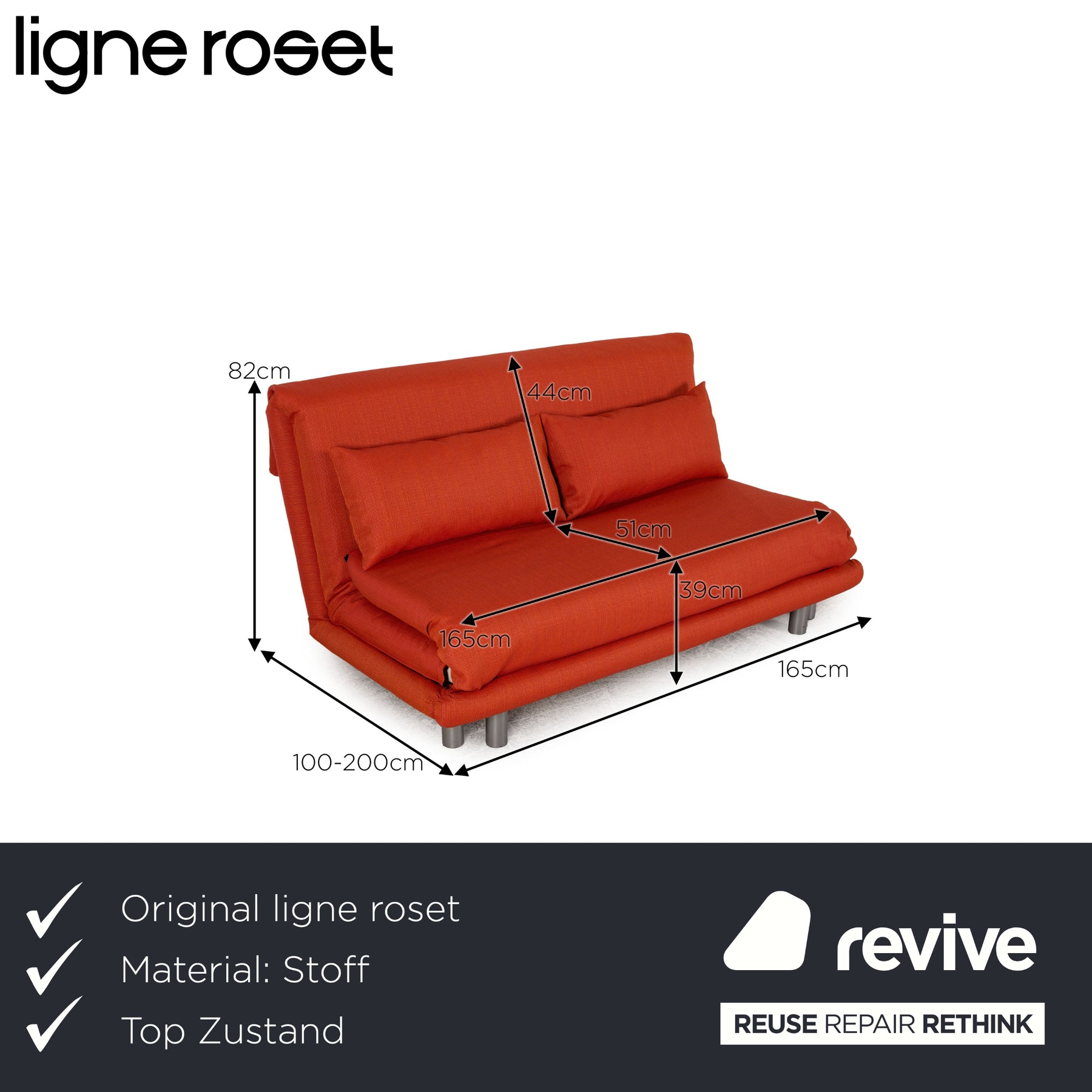 Ligne roset Canapé 3 places en tissu Multy orange fonction couchage housse neuve