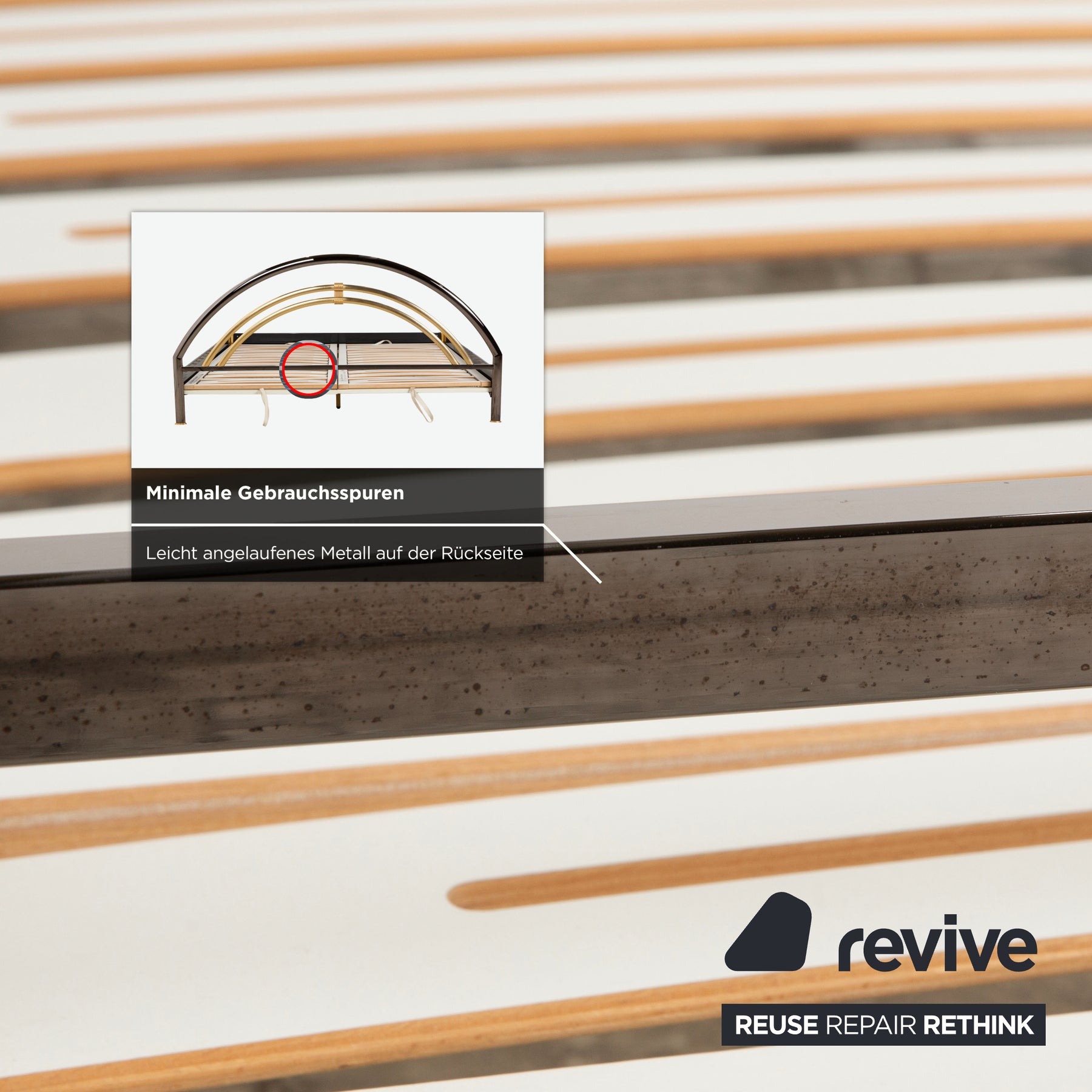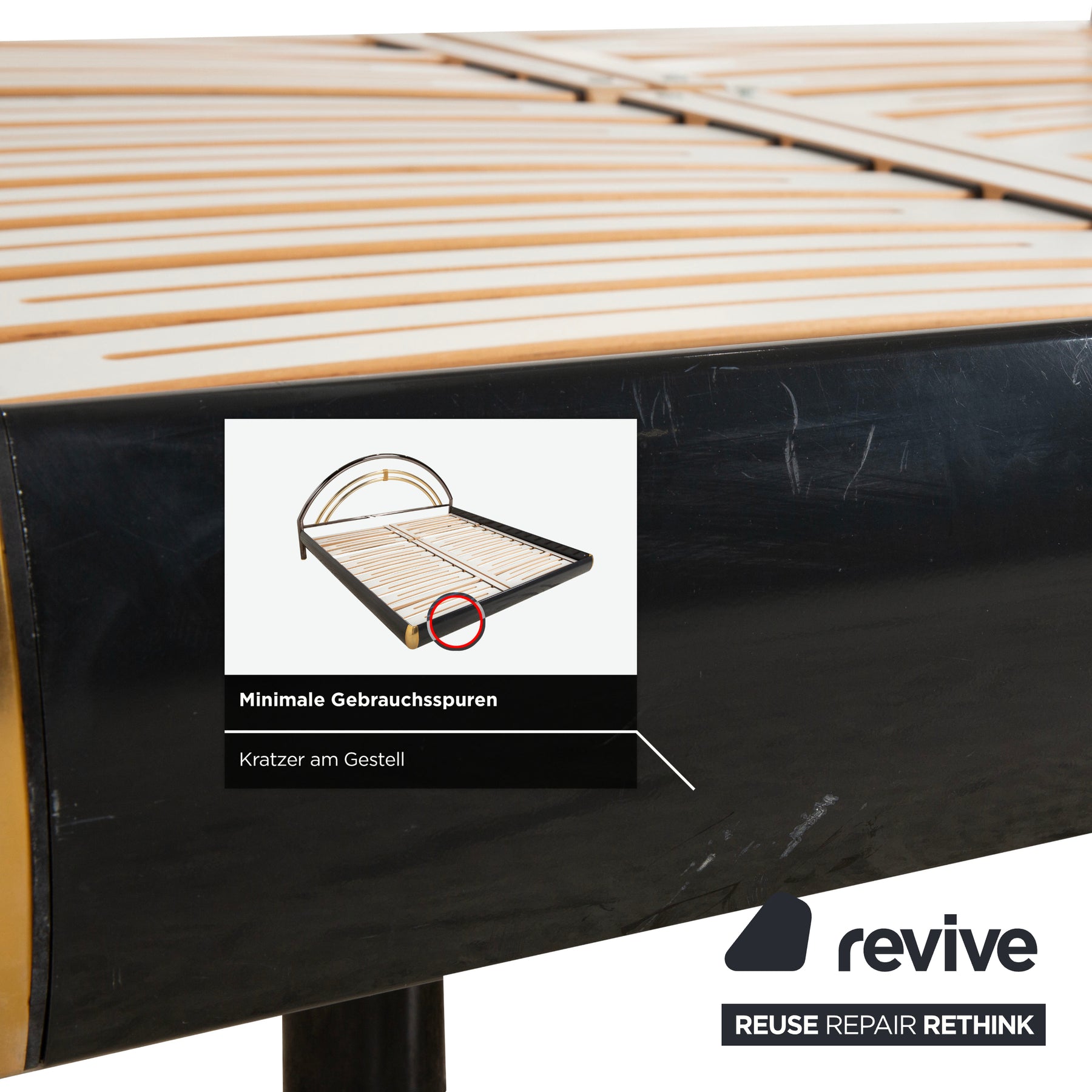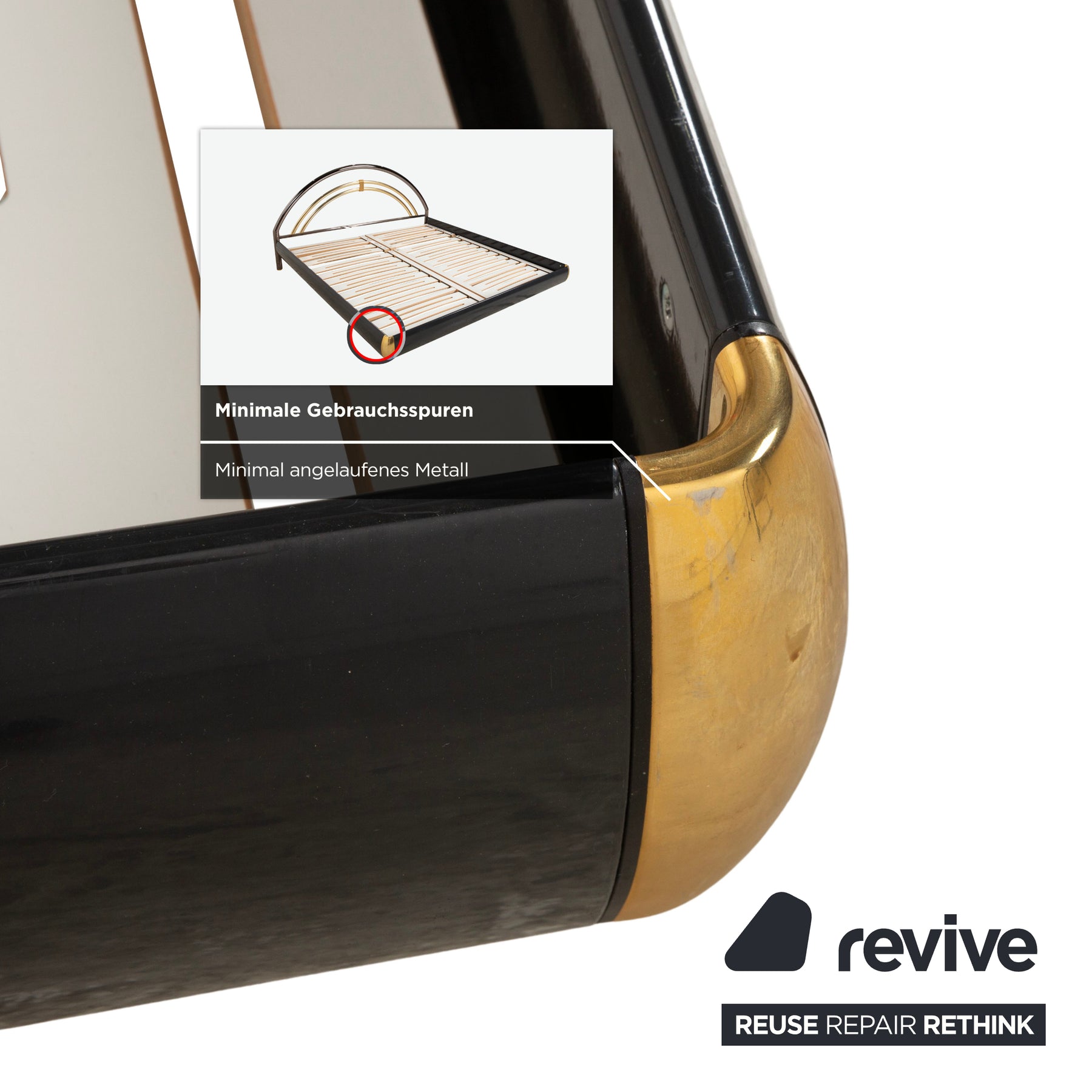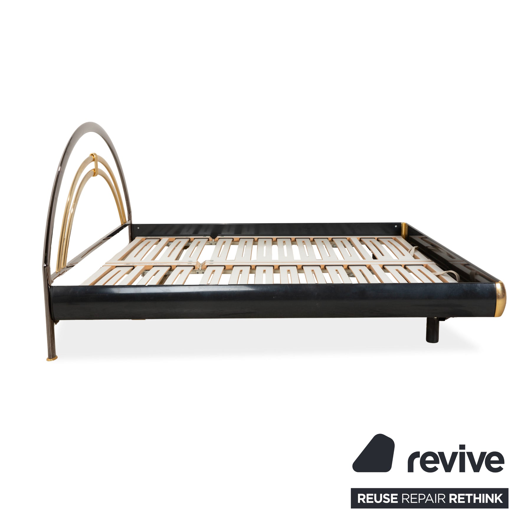 Lit double Musterring, en métal avec sommier à lattes, noir et or