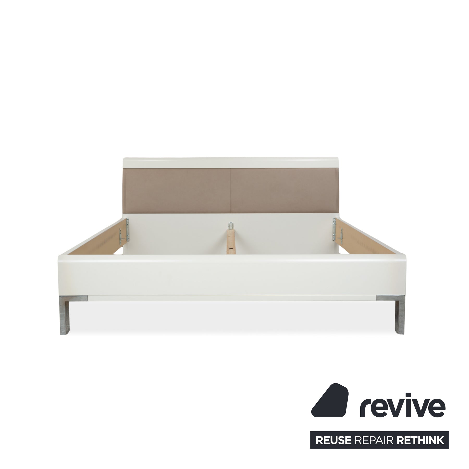 Lit en bois et cuir beige