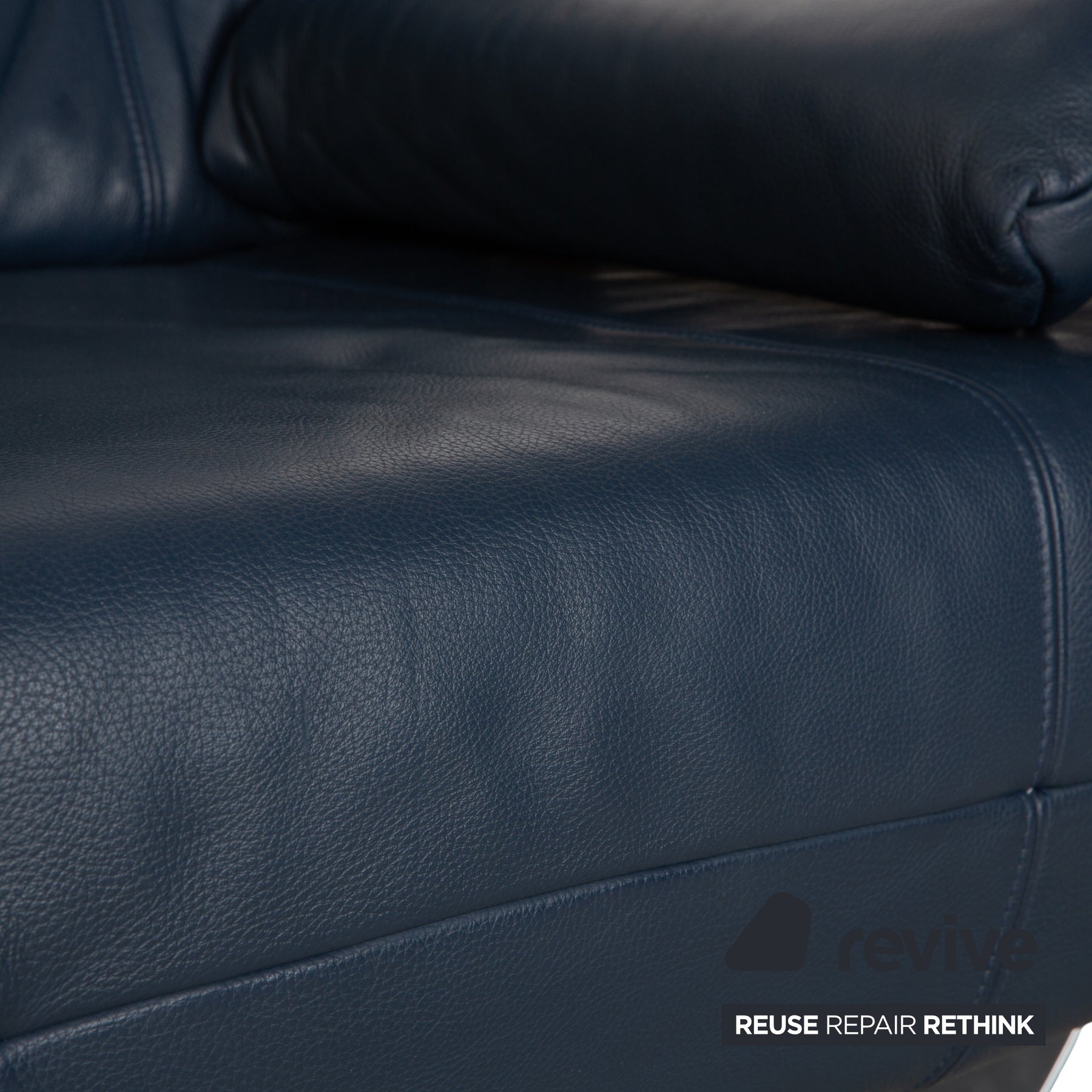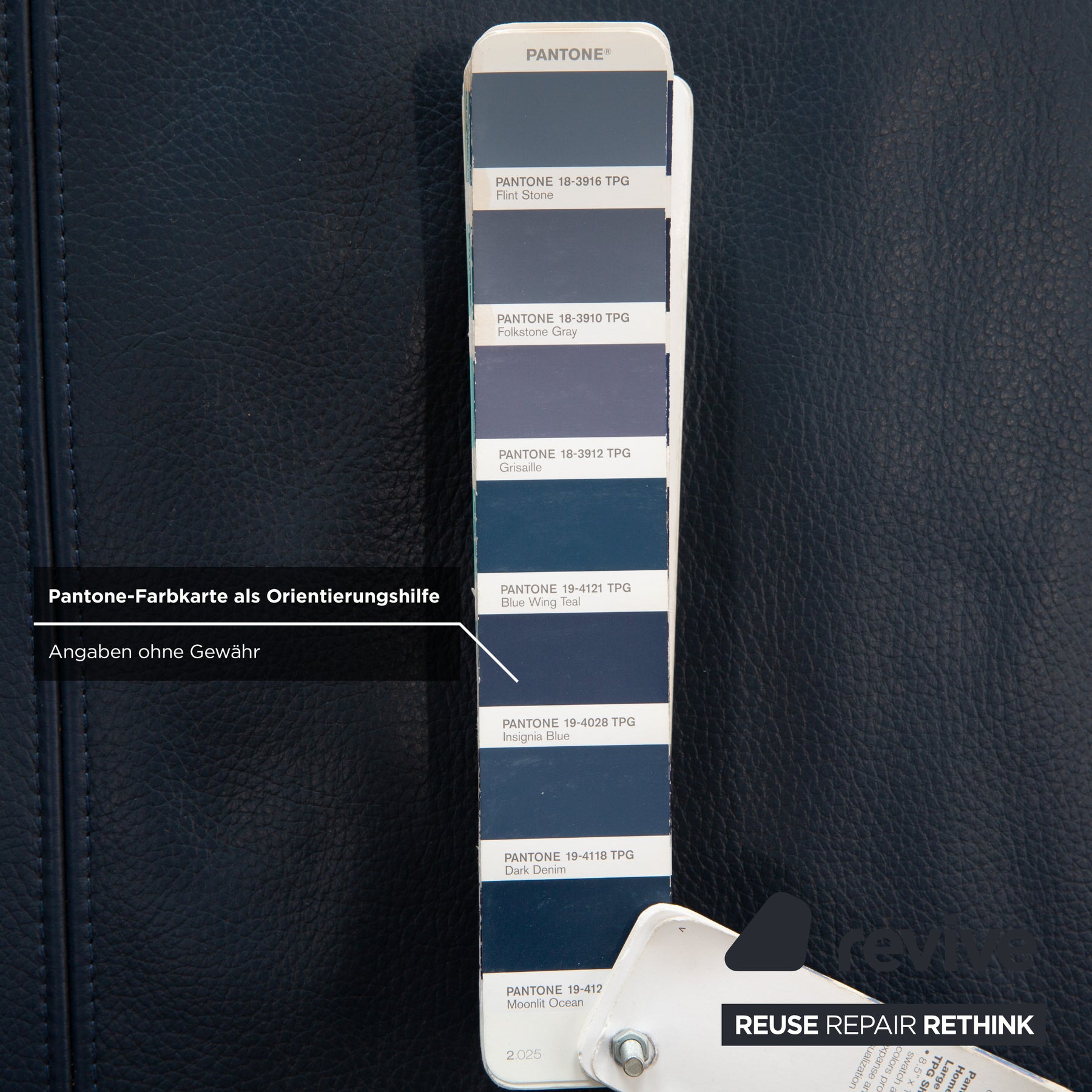 Ce canapé en cuir Musterring d'un bleu élégant allie un charme intemporel à des détails soigneusement choisis. La teinte bleue de haute qualité de son revêtement en cuir crée une ambiance à la fois moderne et chaleureuse, faisant de ce canapé une pièce maîtresse dans n'importe quelle pièce.
