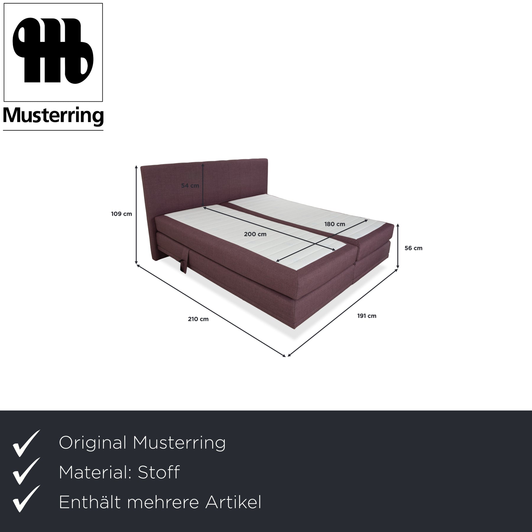 Lit en tissu, sommier à ressorts, tabouret, rose violette, fonction électrique