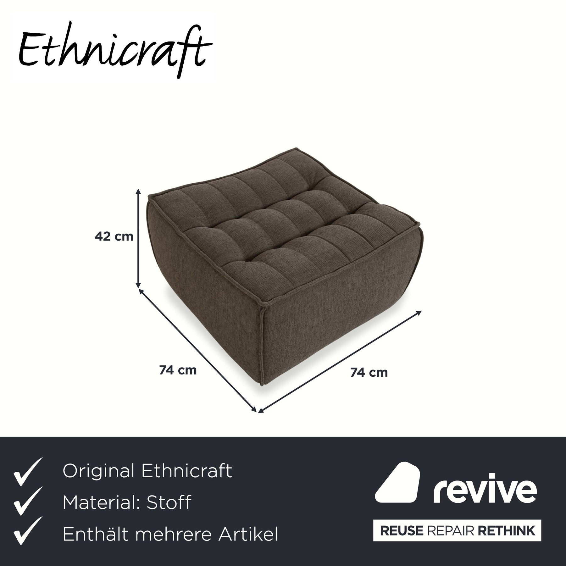Ethnicraft N701 Stoff Sessel Hocker Grau Grün