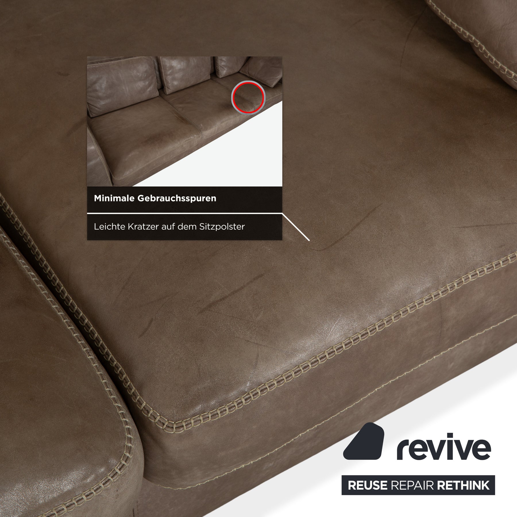 Canapé quatre places en cuir gris-brun Machalke Valentino