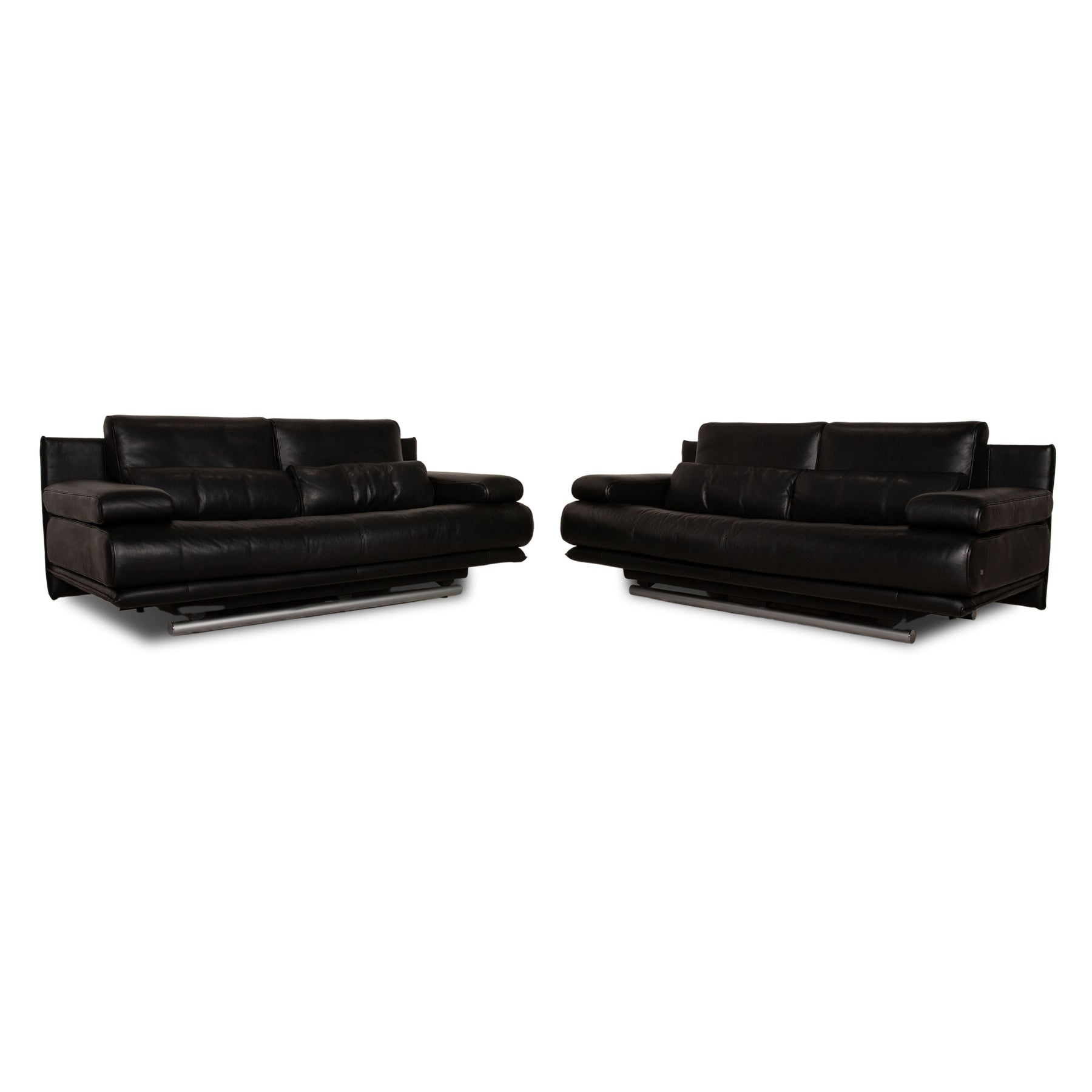 Ensemble de canapés en cuir Rolf Benz 6500, canapé deux places noir