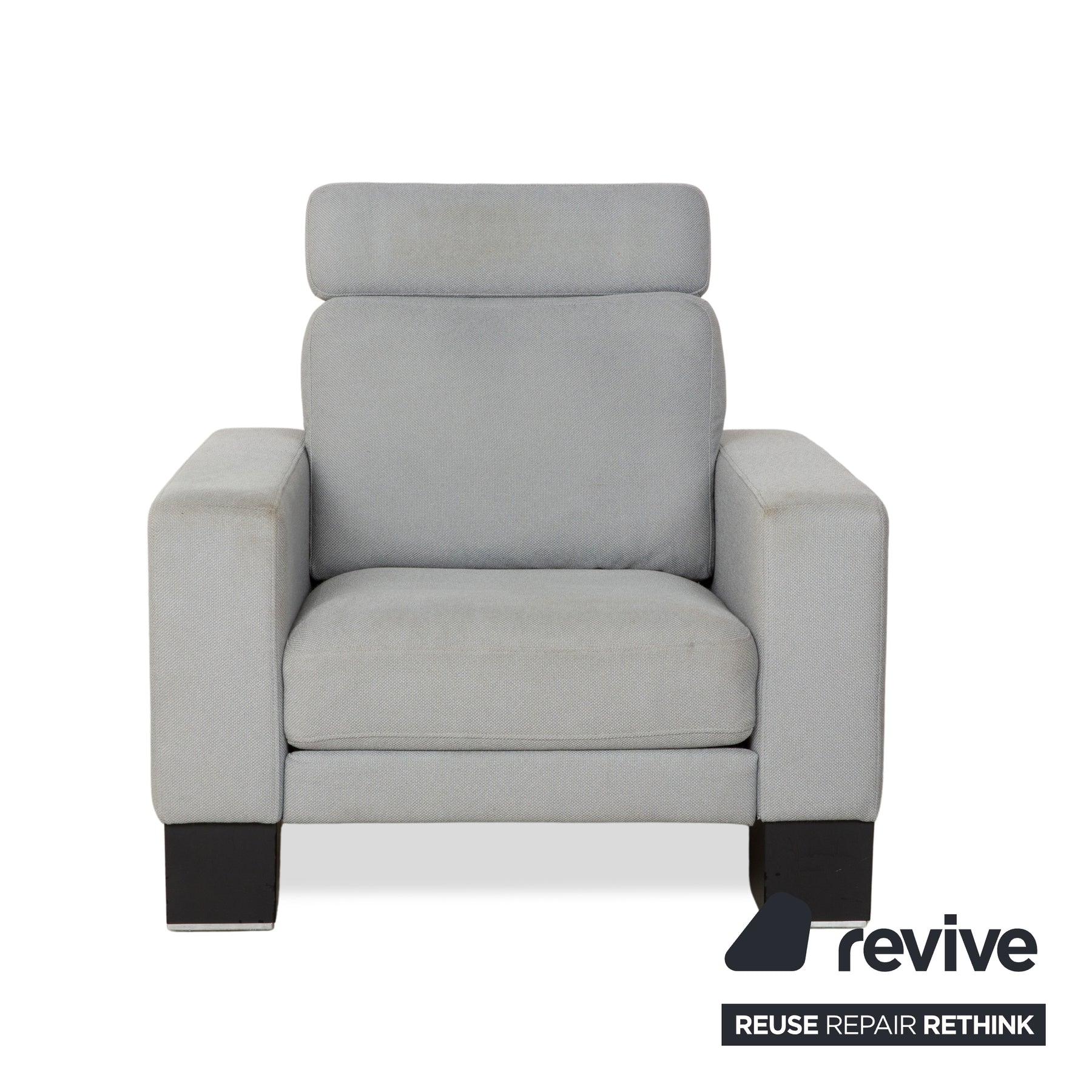 Fauteuils Rolf Benz EGO en tissu gris clair et appui-tête bleu