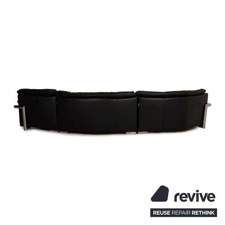 Le canapé Medea d'Artnova est recouvert de cuir véritable noir et repose sur des pieds en métal argenté. Le design classique et intemporel et les bords arrondis caractérisent le canapé d'angle.
