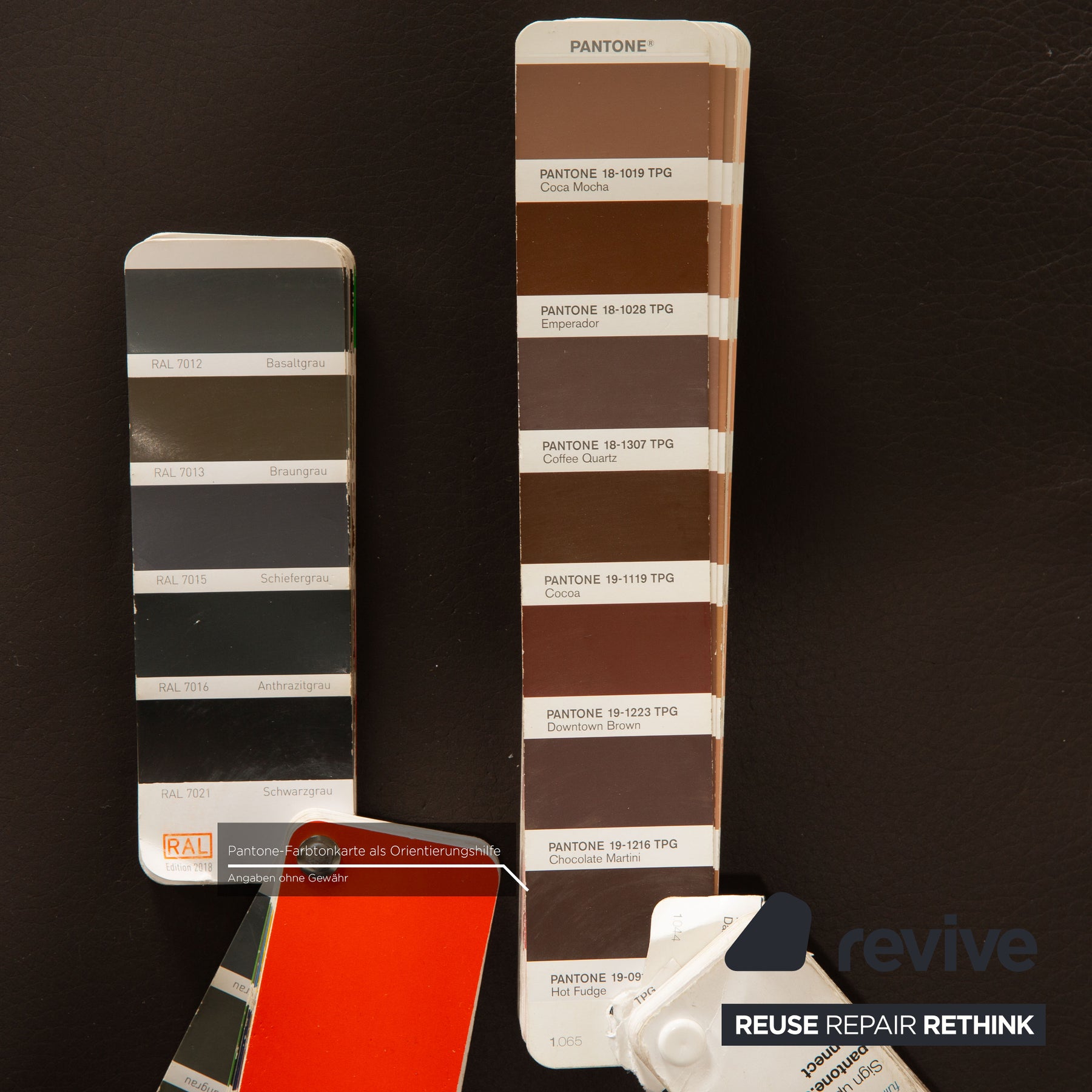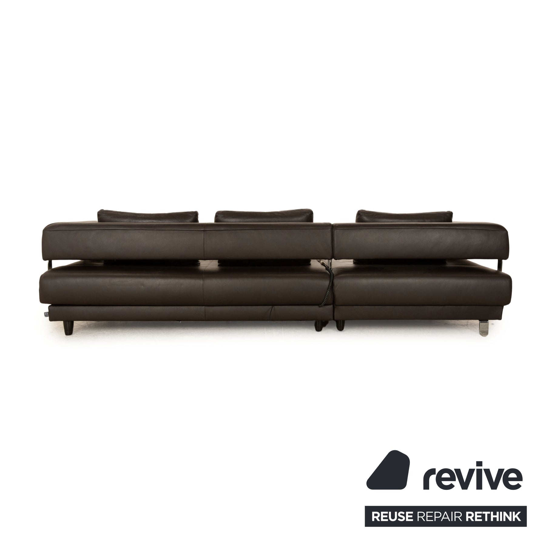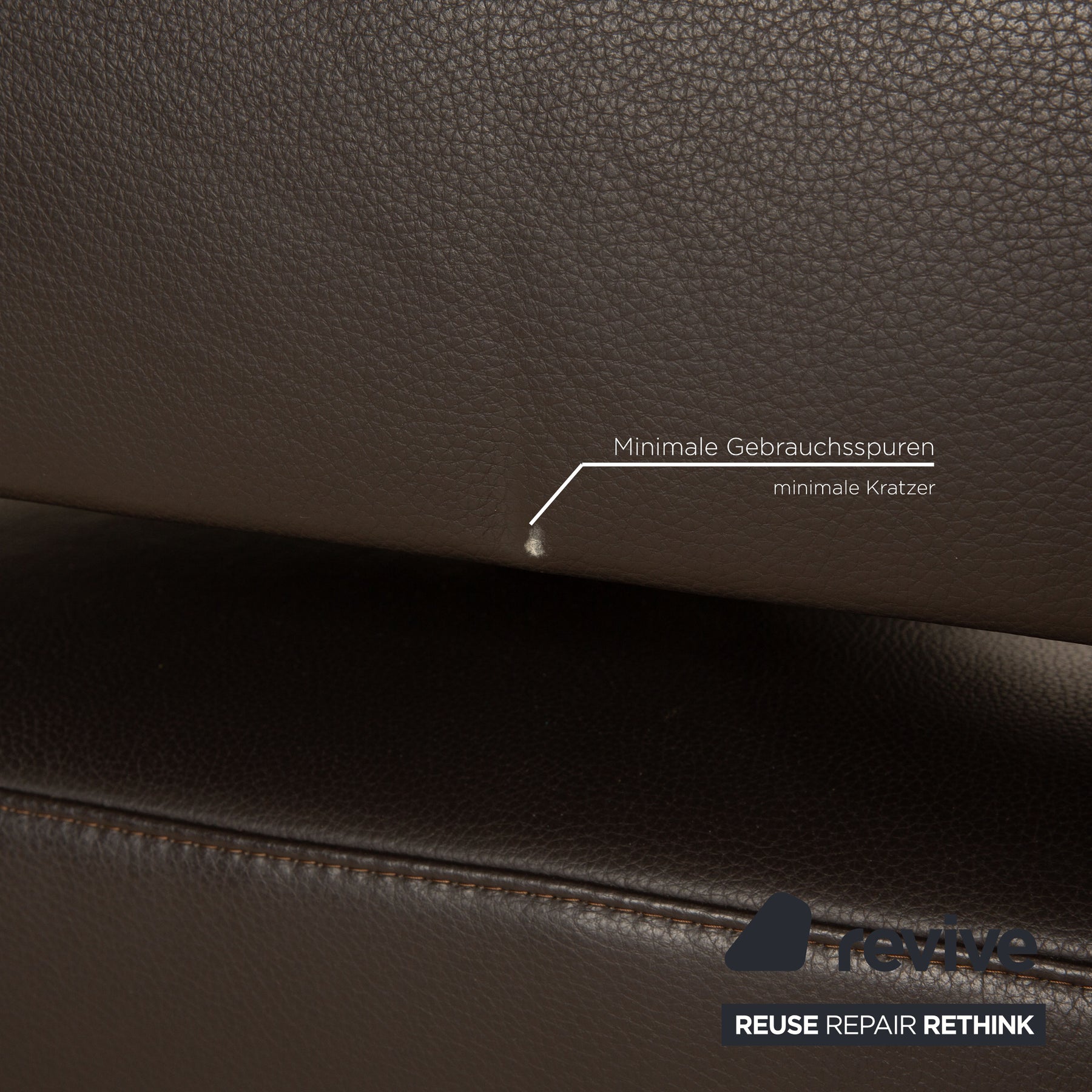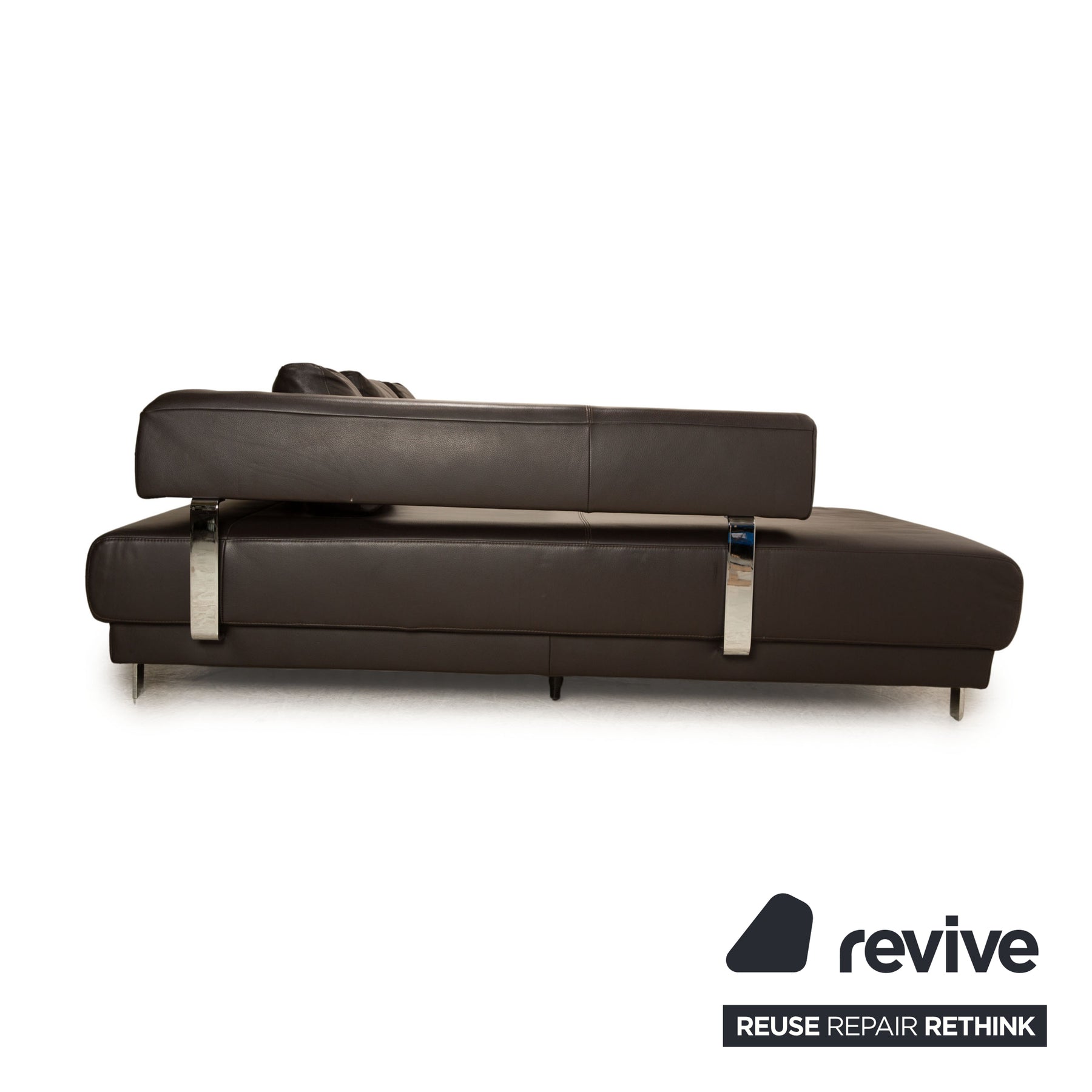 Le canapé Brand Face d'Ewald Schillig est recouvert de cuir véritable marron et repose sur des pieds en métal. Le design classique et le dossier confortable caractérisent le canapé d'angle.