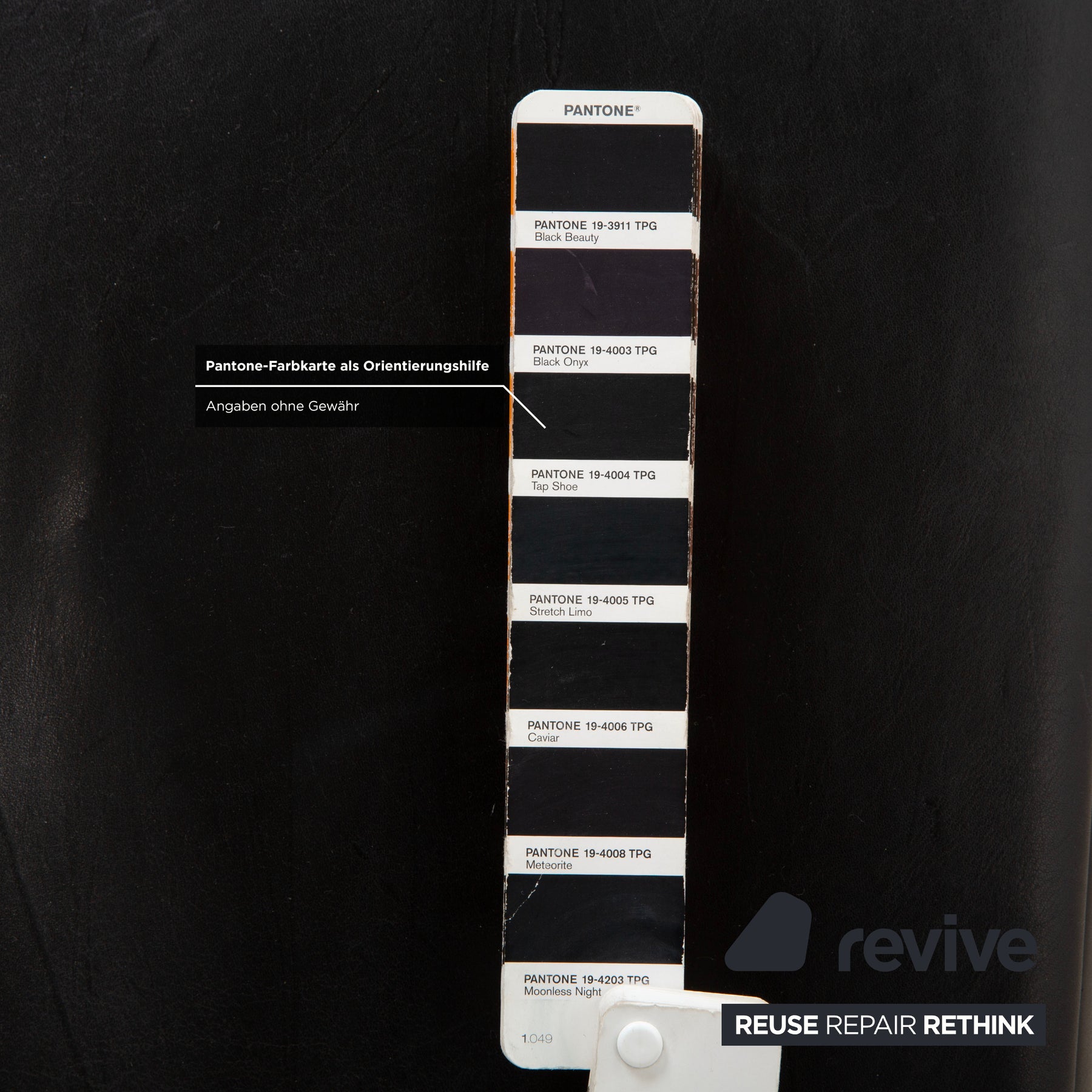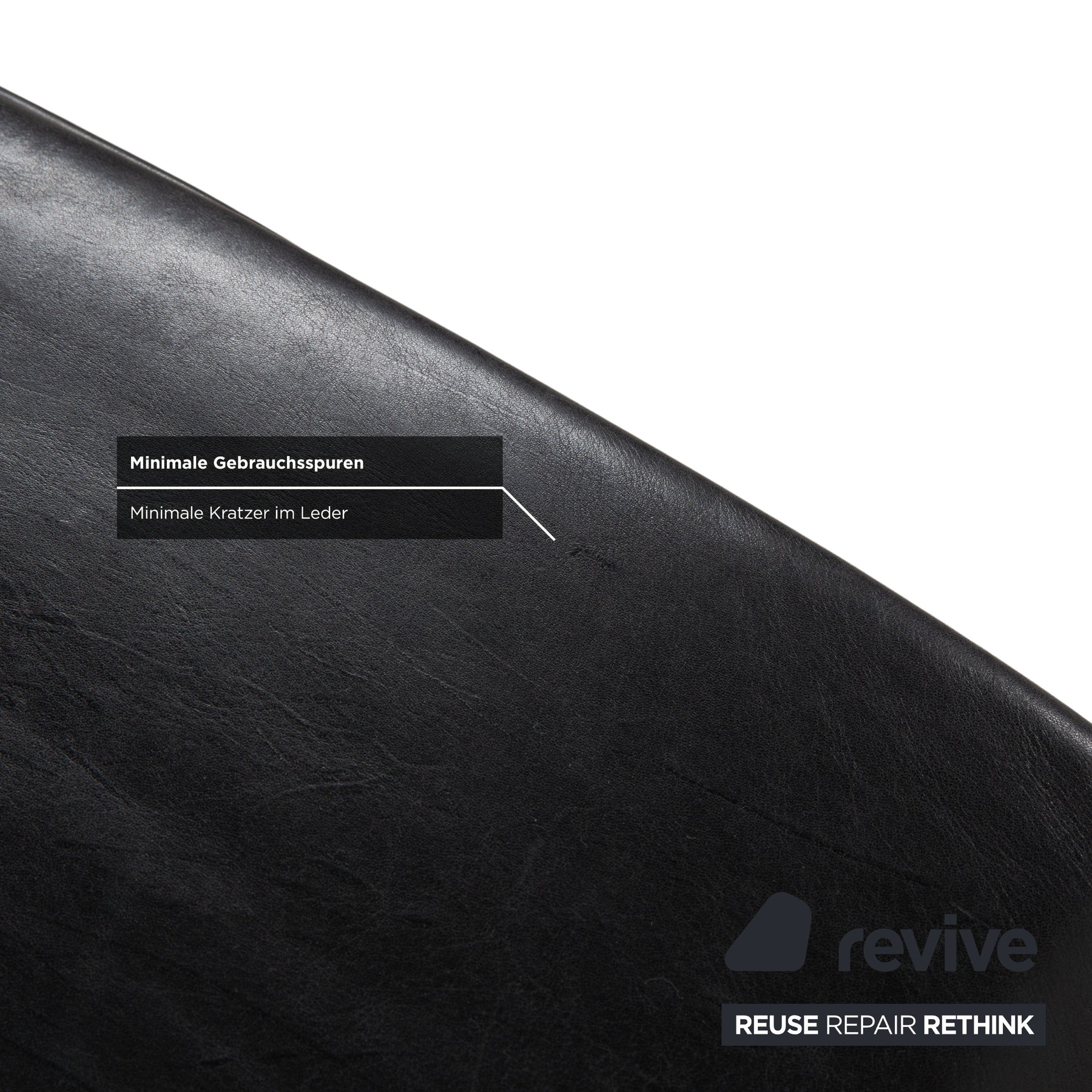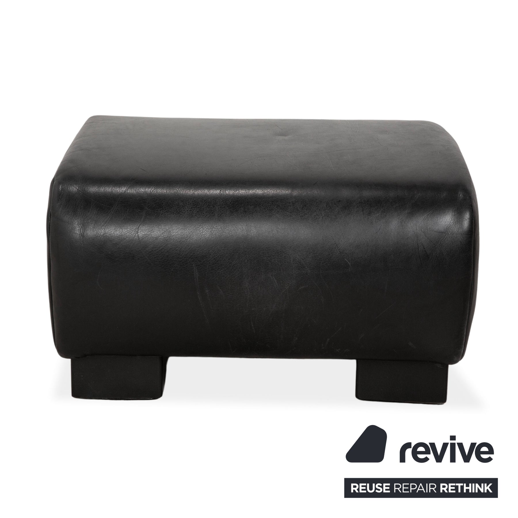 Der Lederhocker von Koinor ist mit einem schwarzen Echtleder bezogen und steht tief auf vier schwarzen Füßen. Er überzeugt durch das klassische, schlichte Design und die zeitlose Optik aus.