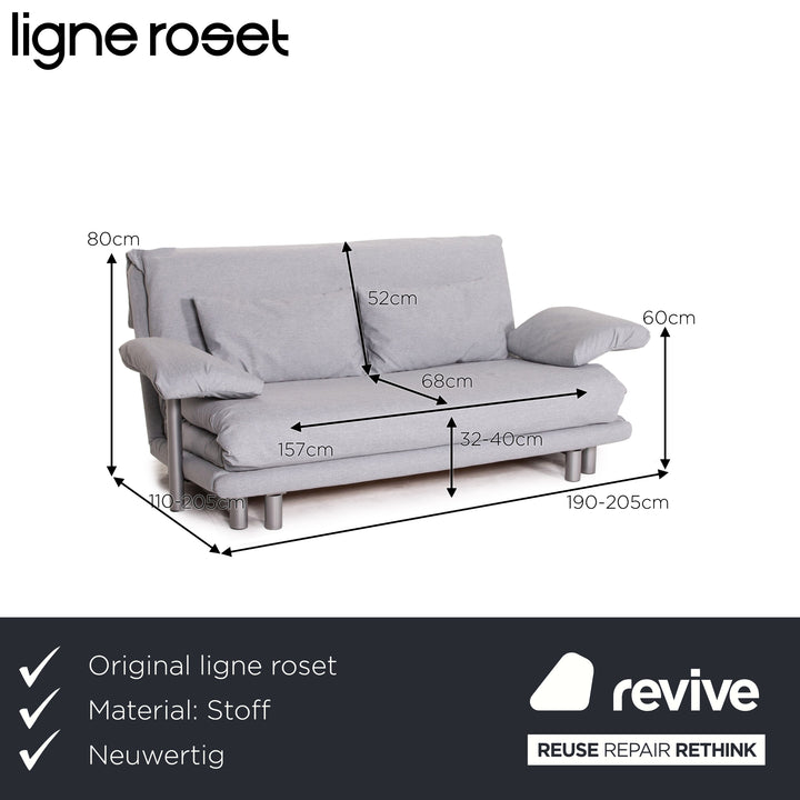 Le canapé Multy de ligne roset est retapissé en tissu gris et repose sur des pieds ronds en métal. Le design minimaliste et la fonction de couchage confortable caractérisent le canapé trois places.