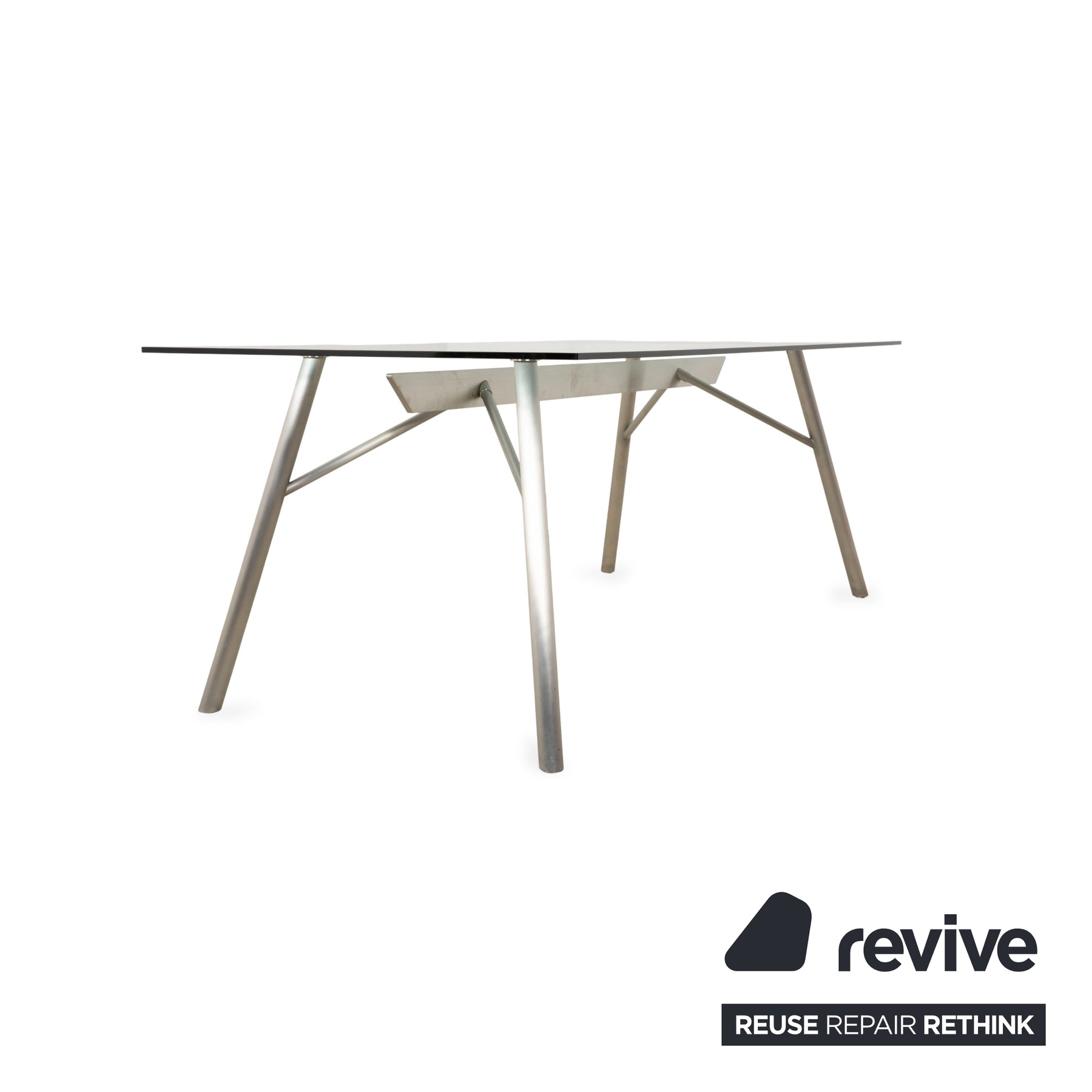 Table en verre Rolf Benz, métal, gris argenté, 200 x 75 x 96