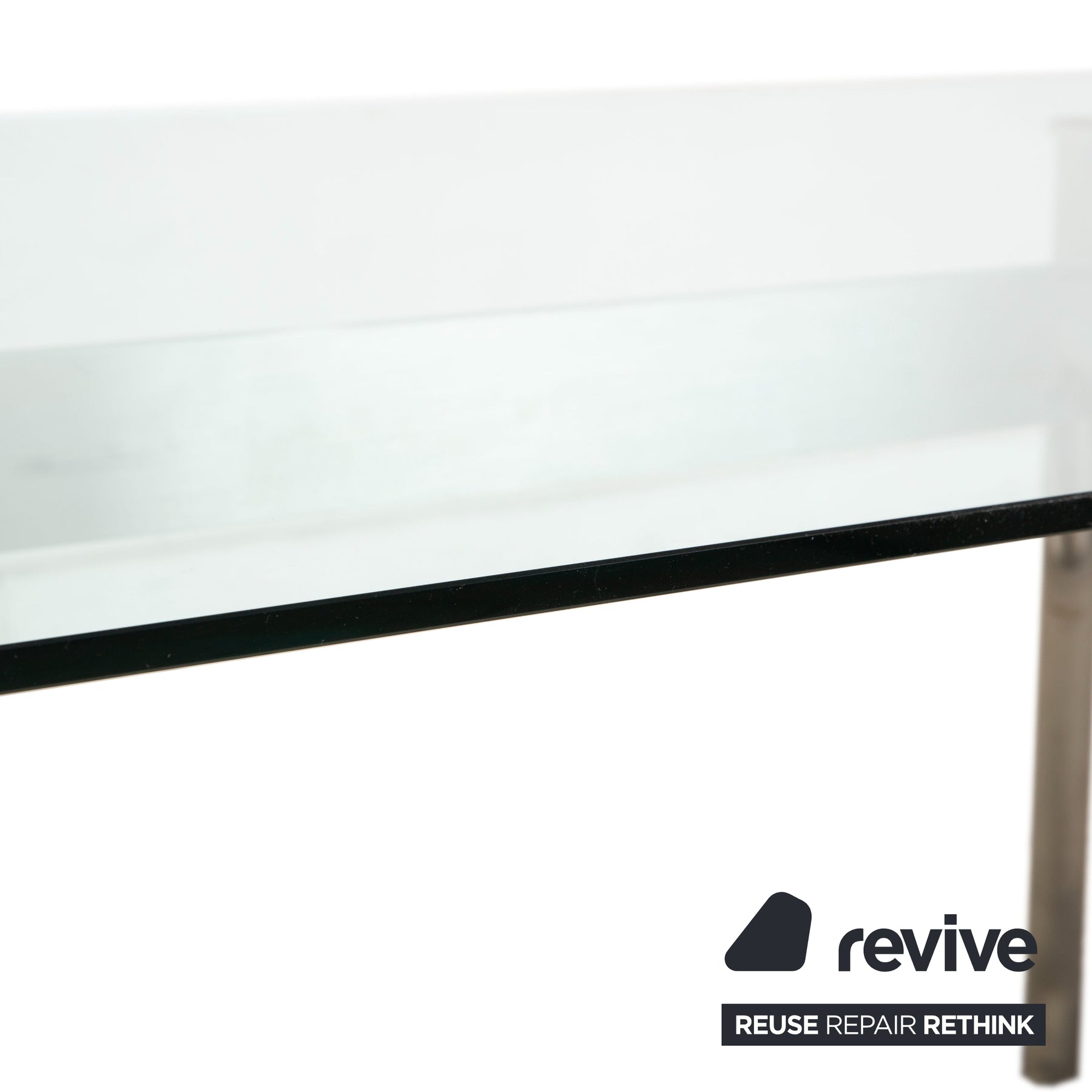 Le plateau, en verre transparent , offre une vue dégagée sur le sol et laisse circuler librement la lumière, idéal pour agrandir visuellement les petites pièces. La structure, finition argent mat (aspect gris/aluminium) , impressionne par sa sophistication technique : les quatre pieds tubulaires, légèrement évasés , confèrent à la table une allure à la fois dynamique et stable. Reliés sous le plateau en verre par une structure métallique apparente , évoquant la charpente d’un pont moderne, ils soulignent le caractère technique de la table.