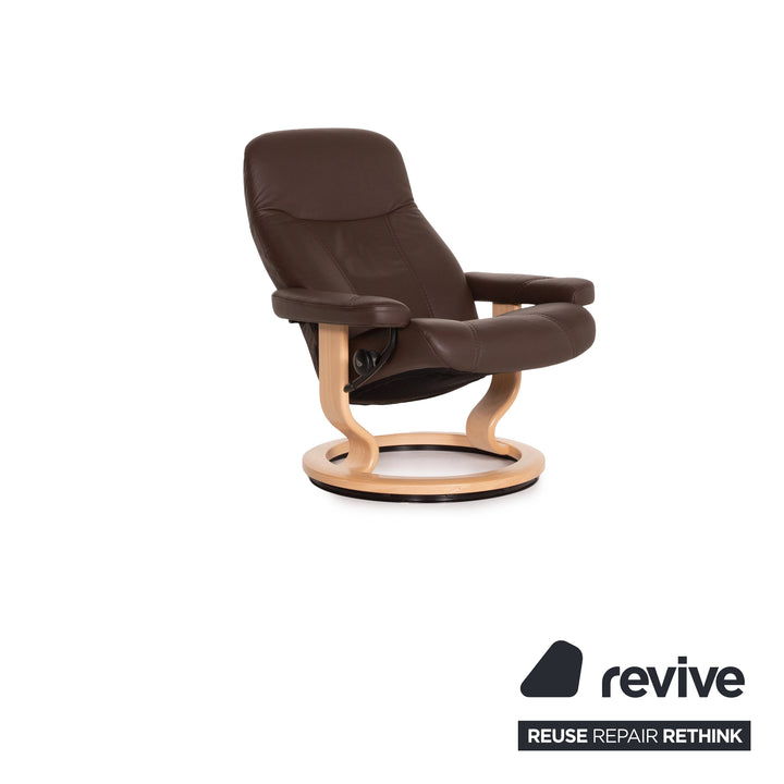 Fauteuil en cuir Stressless Consul marron taille M avec tabouret marron foncé Fonction de relaxation Fonction de relaxation
