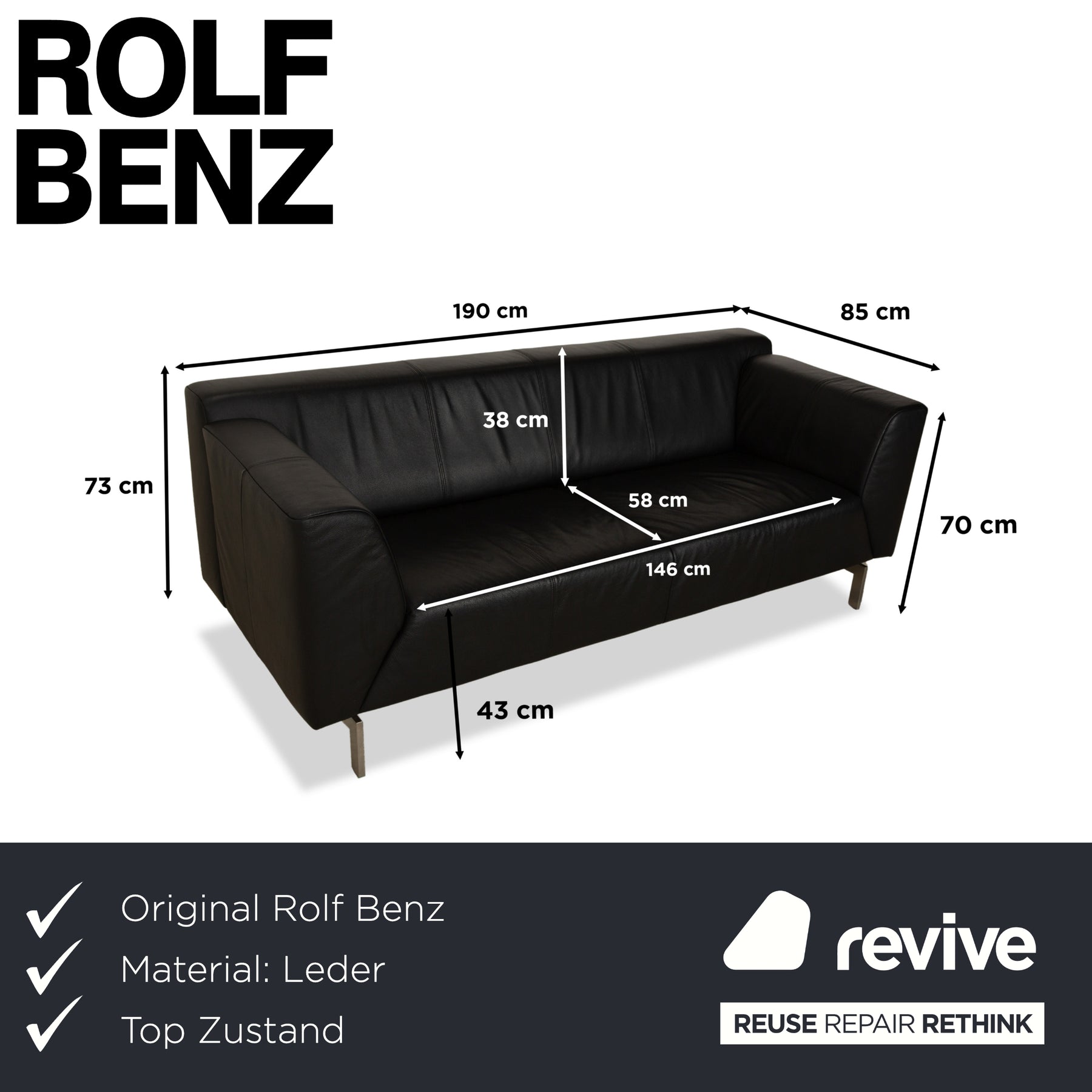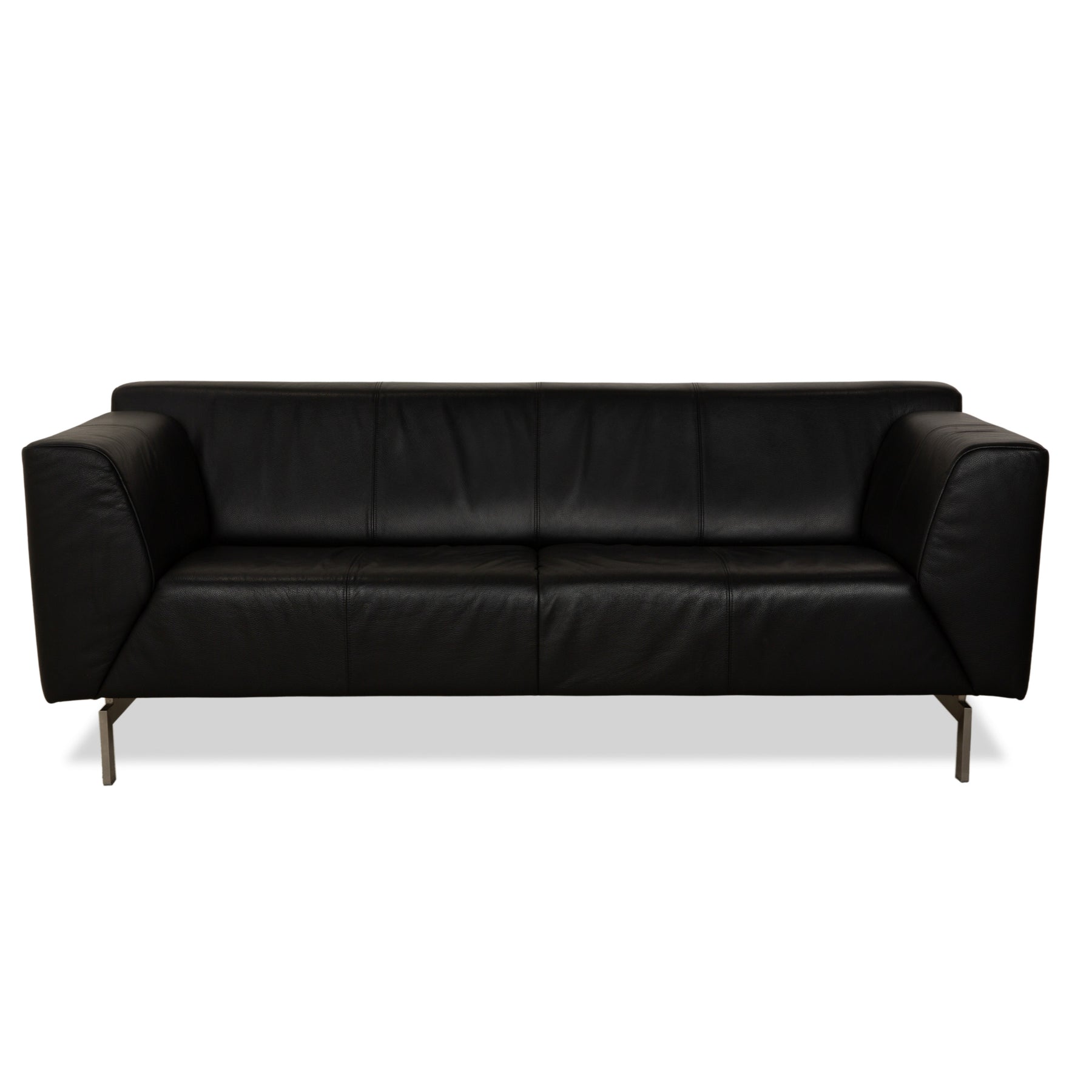 Le canapé trois places Rolf Benz 318 Linea arbore un style à la fois sophistiqué et sobre. Son cuir noir profond, associé à ses délicats pieds argentés, crée une atmosphère élégante. De plus, le cuir de haute qualité assure un confort maximal et la durabilité nécessaire.