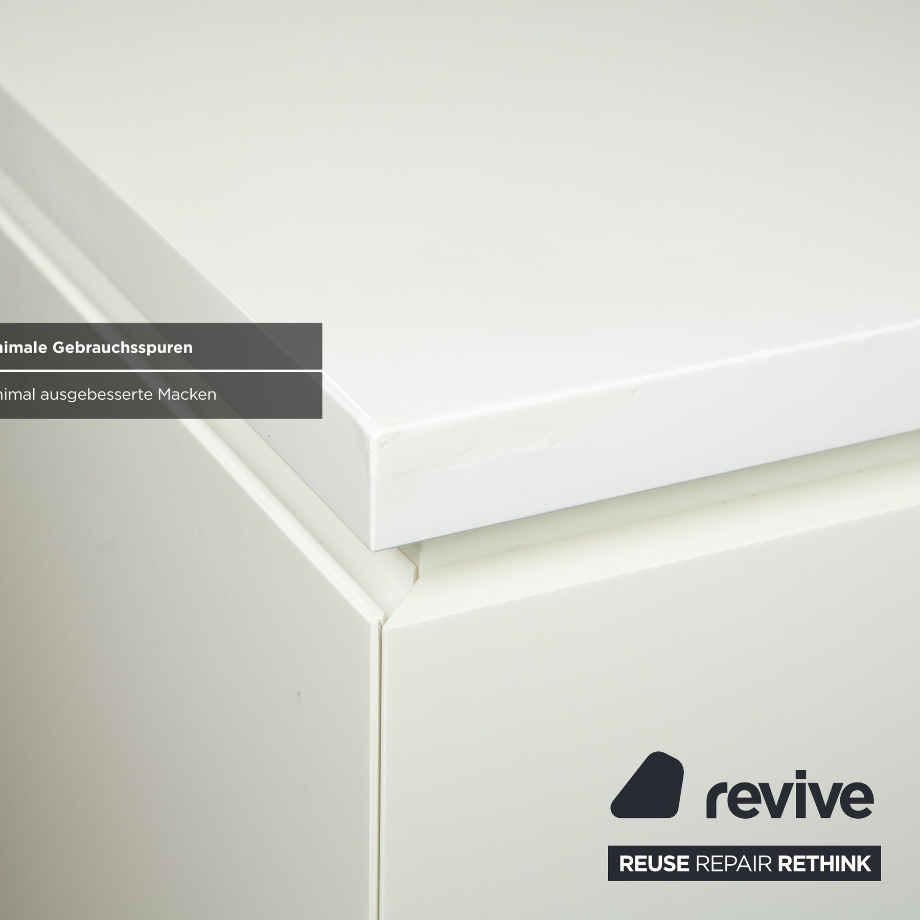 Das Interlübke Cube Sideboard ist ein kompaktes Stauraummöbel mit klarer, reduzierter Formensprache. Der Korpus ist in Weiß ausgeführt. Die obere Abdeckung besteht aus einer hochwertigen Platte, die eine stabile Oberfläche bietet.