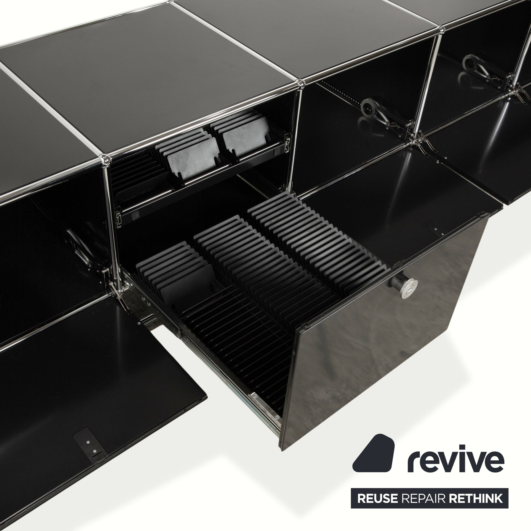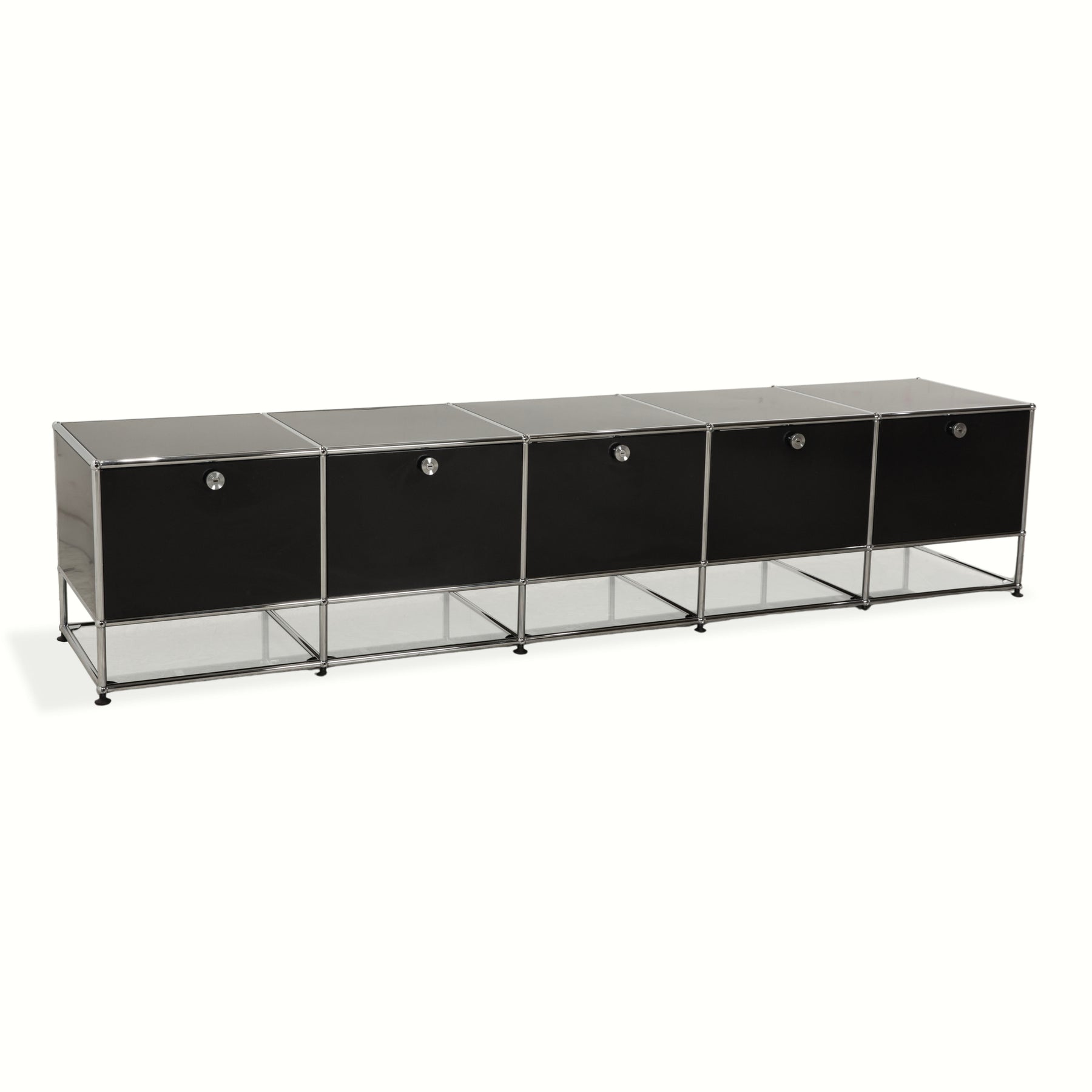 Buffet USM Haller en métal chromé et verre noir et gris anthracite