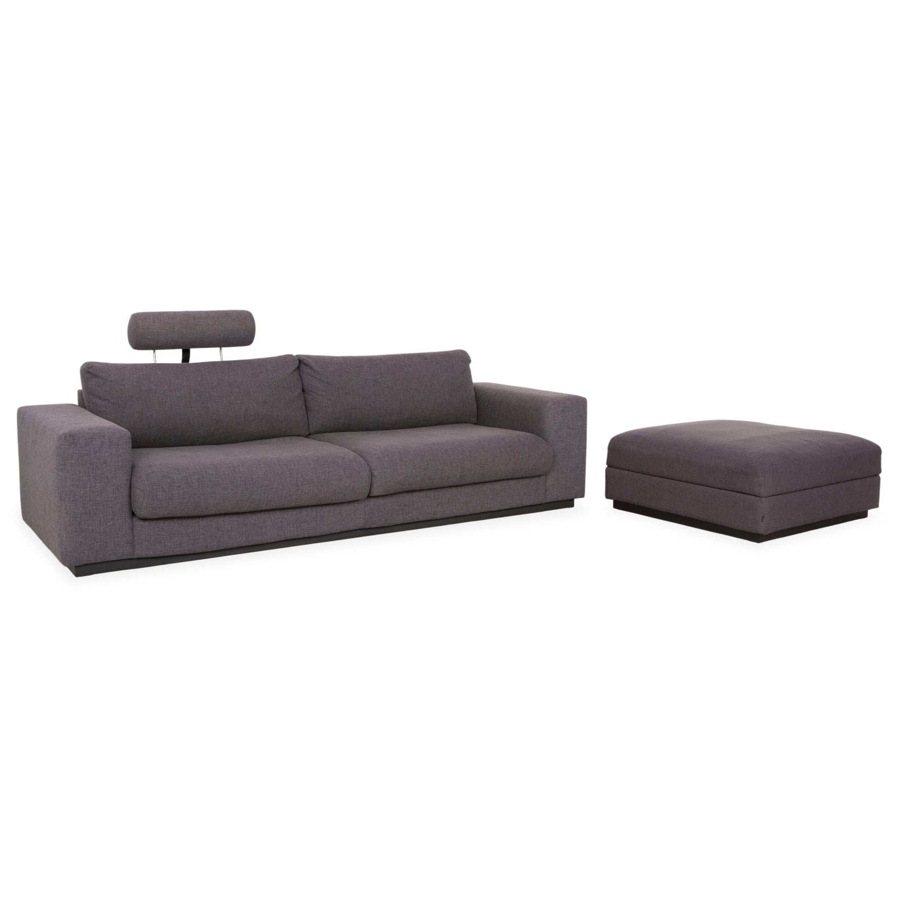 Cet ensemble se compose d'un canapé et d'un pouf assorti, modèles « Sepia » de la maison de design danoise Bolia. Sepia incarne à la perfection le confort nordique. Avec ses proportions généreuses et son design cubique épuré, ce canapé apporte instantanément sérénité et harmonie à votre salon. Il ne s'agit pas d'un meuble ostentatoire, mais plutôt d'un havre de paix élégant.