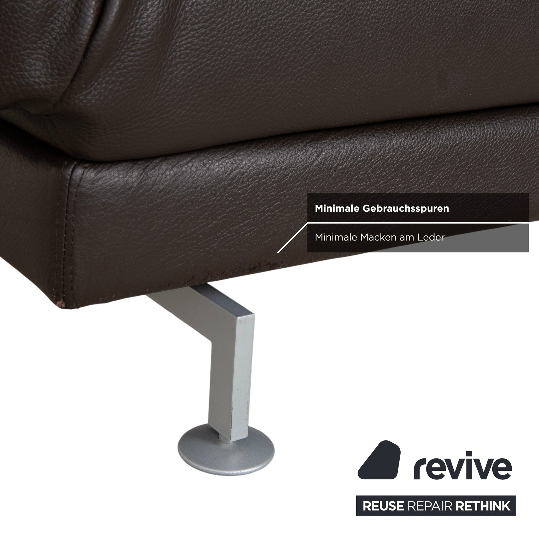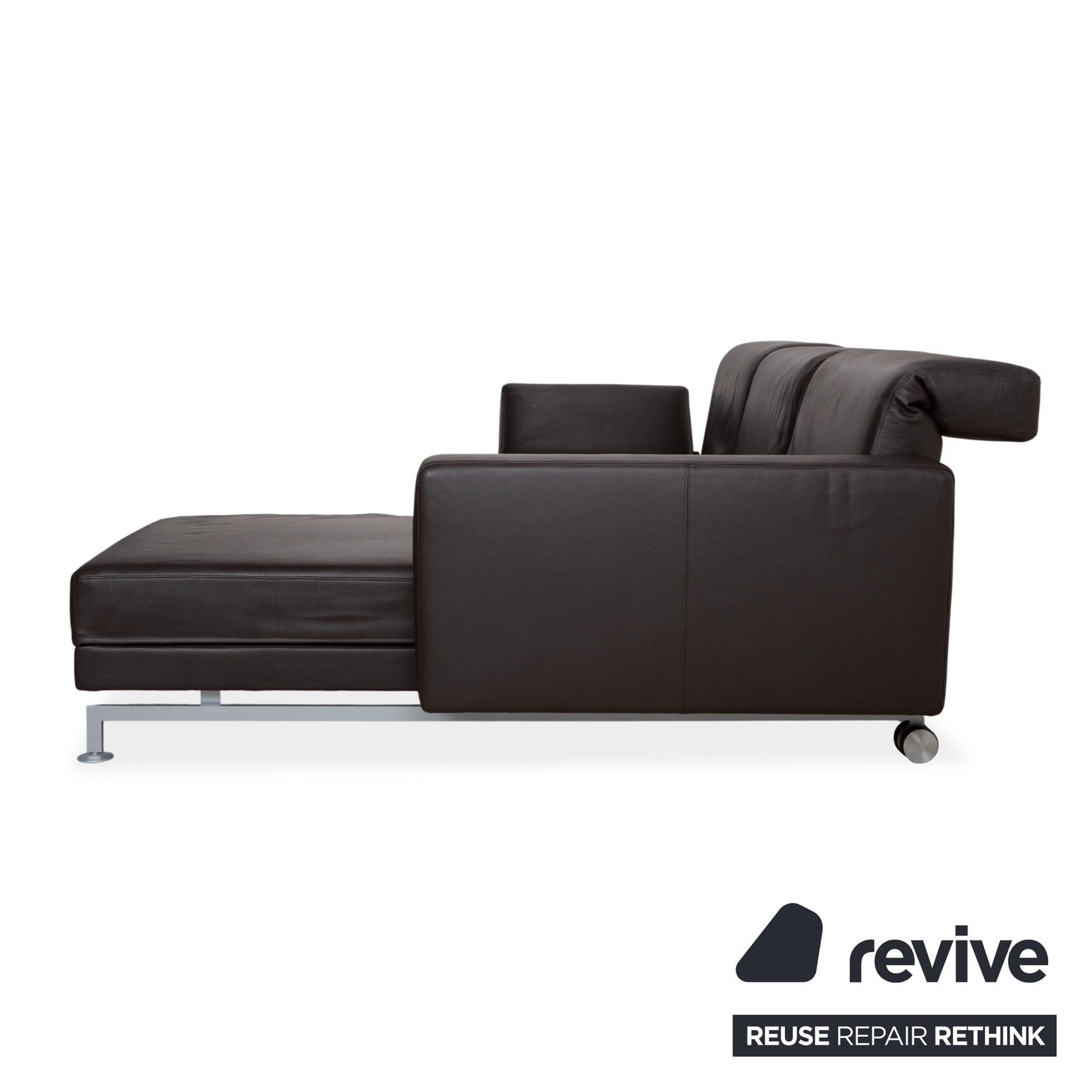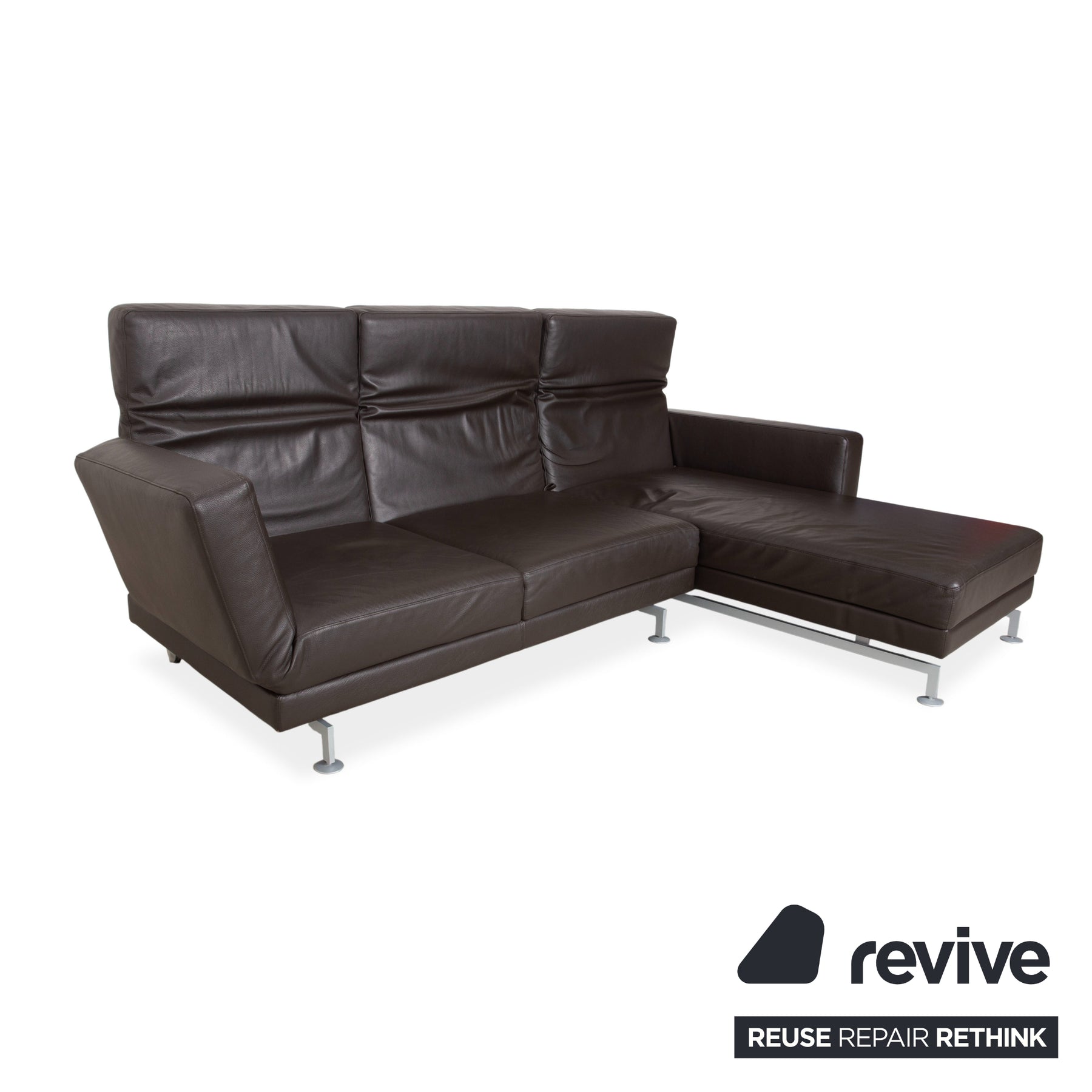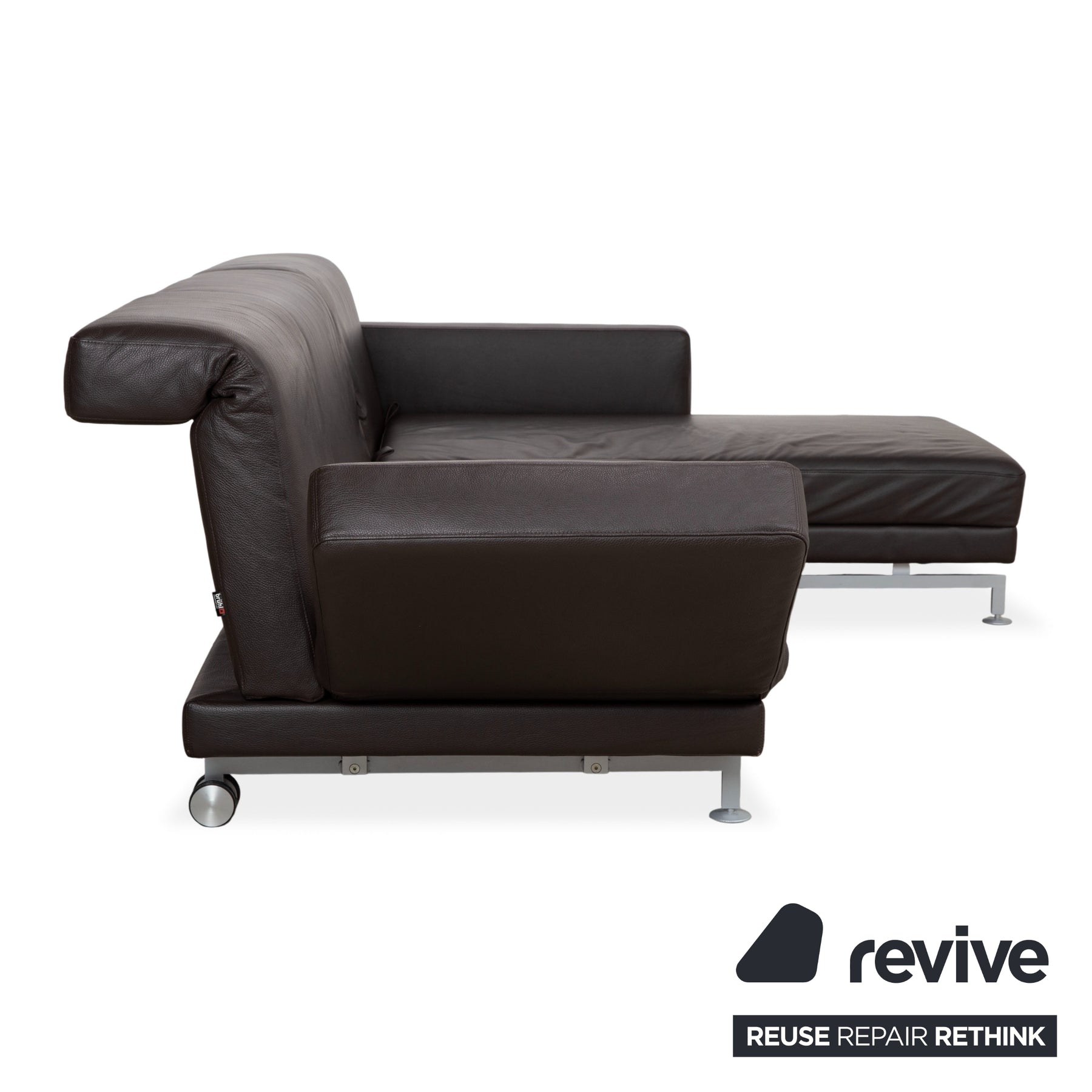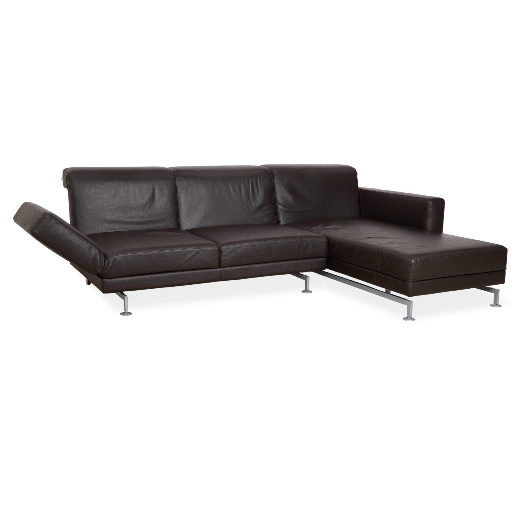 Le modèle Moule de la manufacture Brühl est depuis longtemps considéré comme un classique moderne pour un intérieur modulable. Revêtu d'un cuir brun foncé de haute qualité, il dégage une élégance sophistiquée et intemporelle, et paraît léger et aérien grâce à ses fins pieds en métal – un havre de paix raffiné pour tout salon.