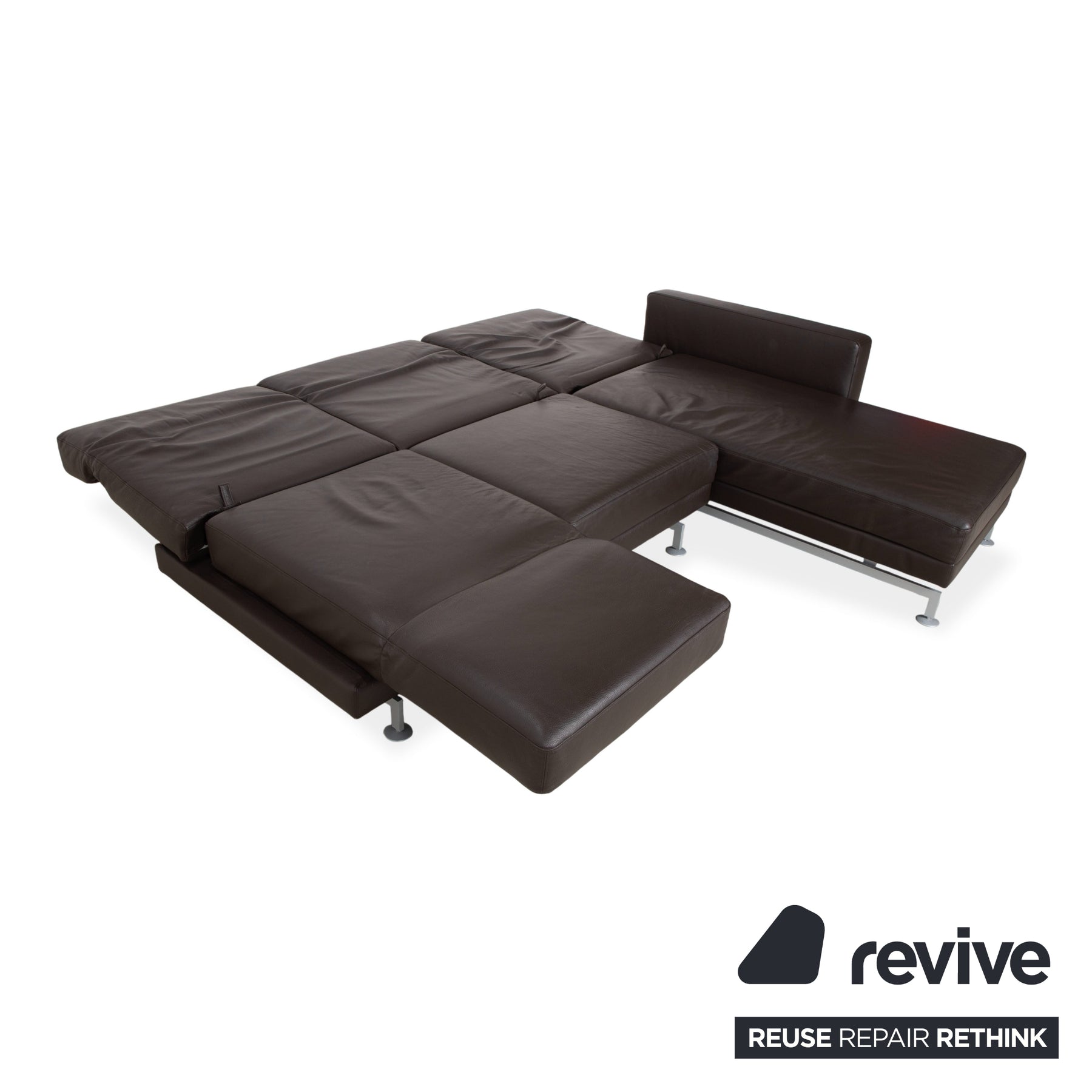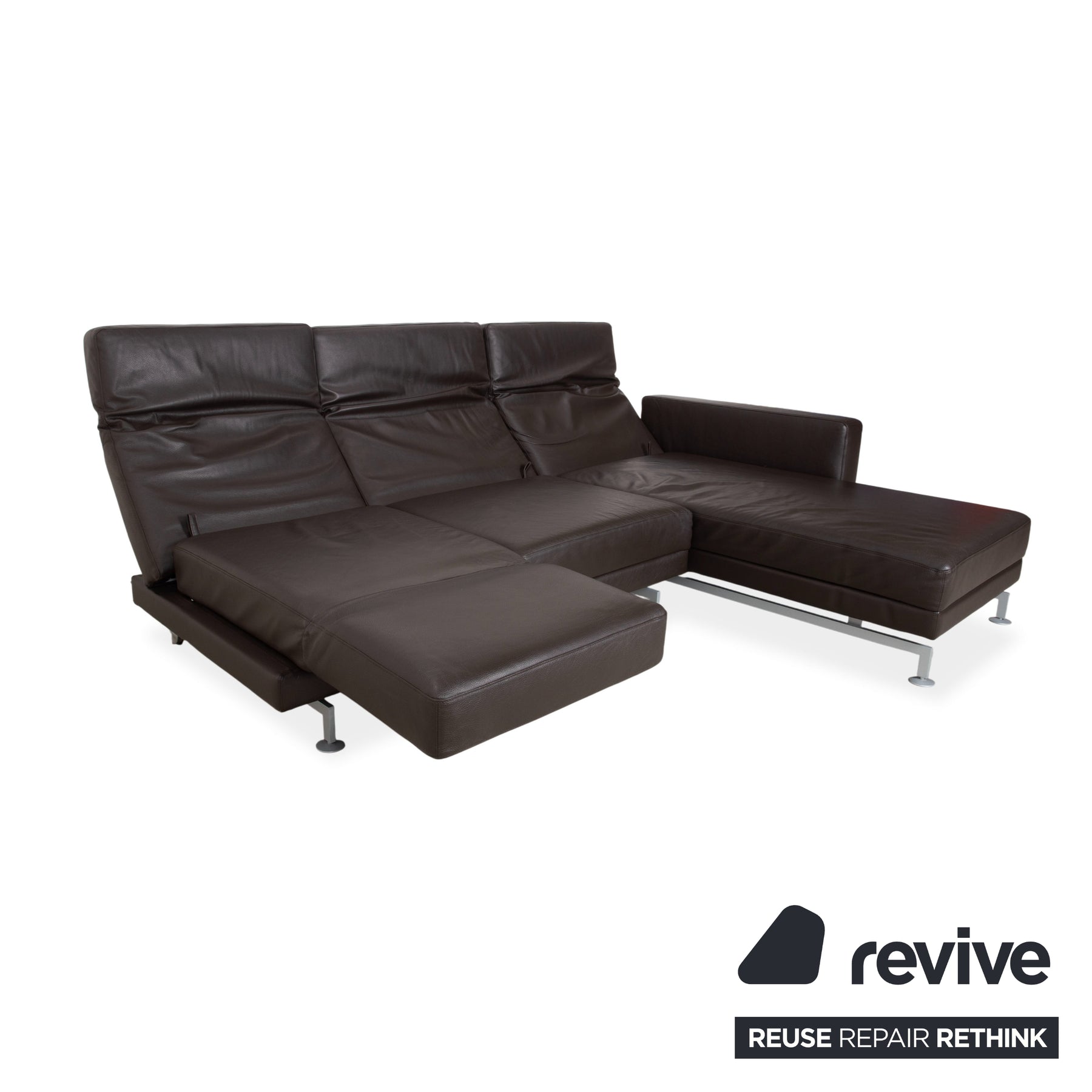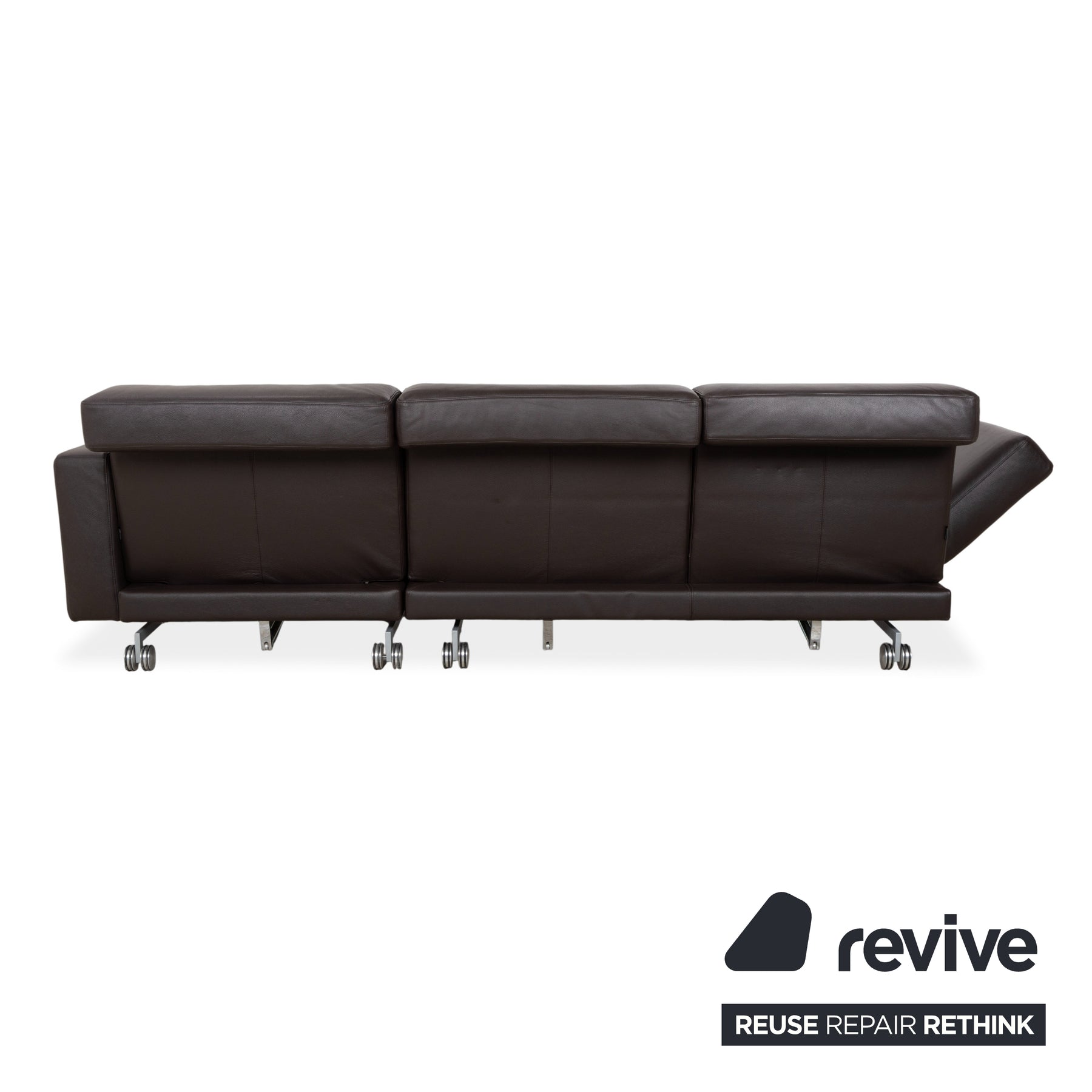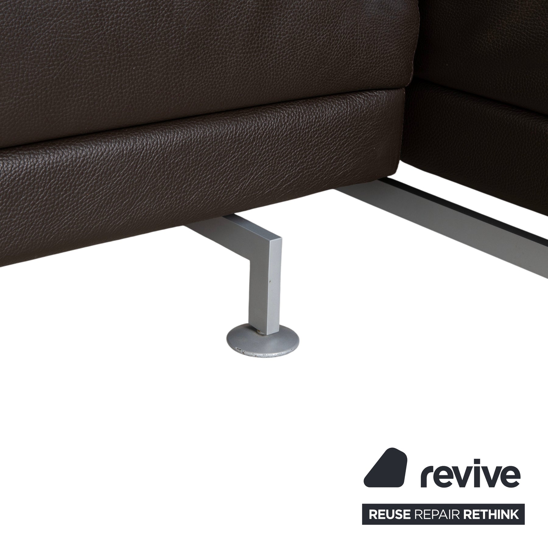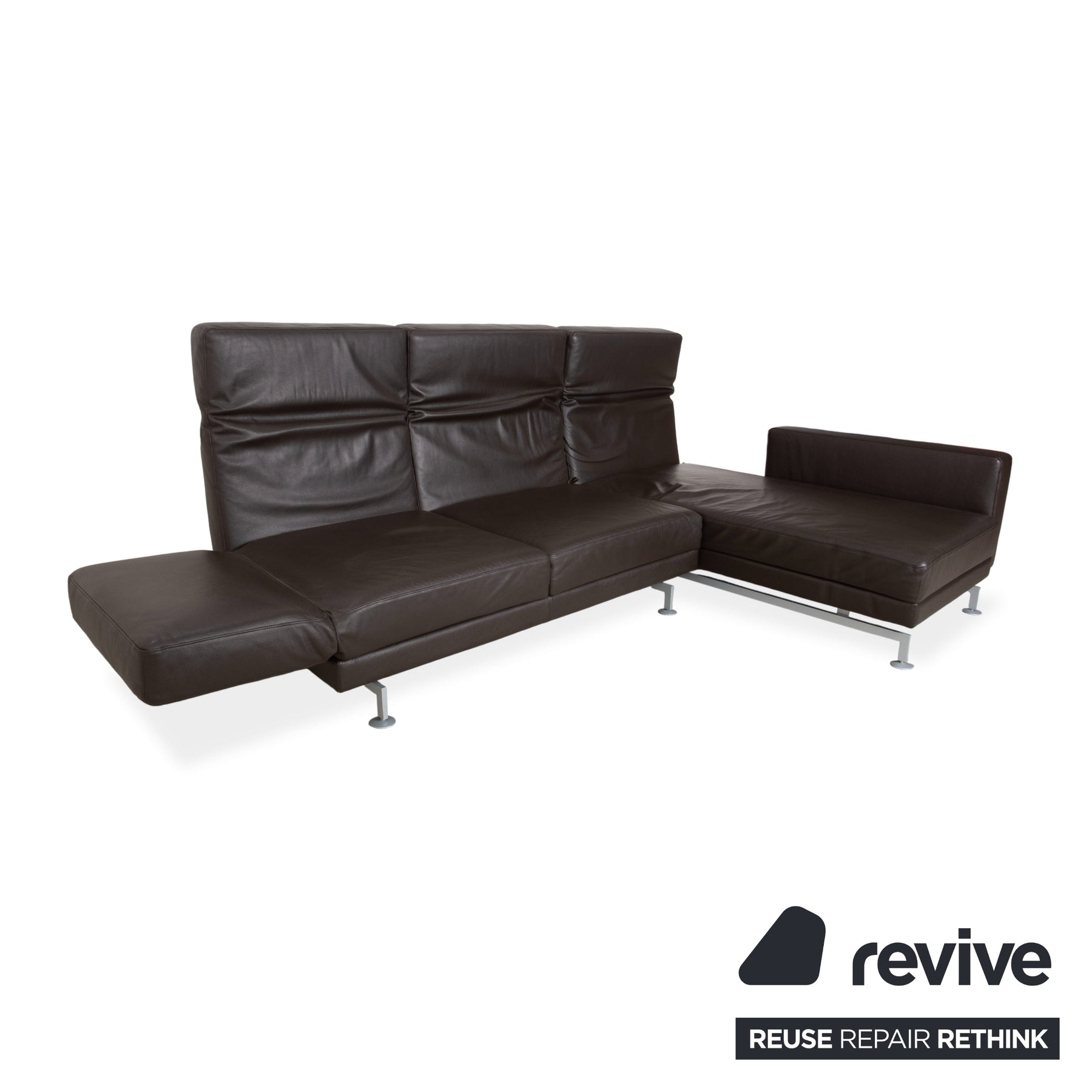 Le modèle Moule de la manufacture Brühl est depuis longtemps considéré comme un classique moderne pour un intérieur modulable. Revêtu d'un cuir brun foncé de haute qualité, il dégage une élégance sophistiquée et intemporelle, et paraît léger et aérien grâce à ses fins pieds en métal – un havre de paix raffiné pour tout salon.