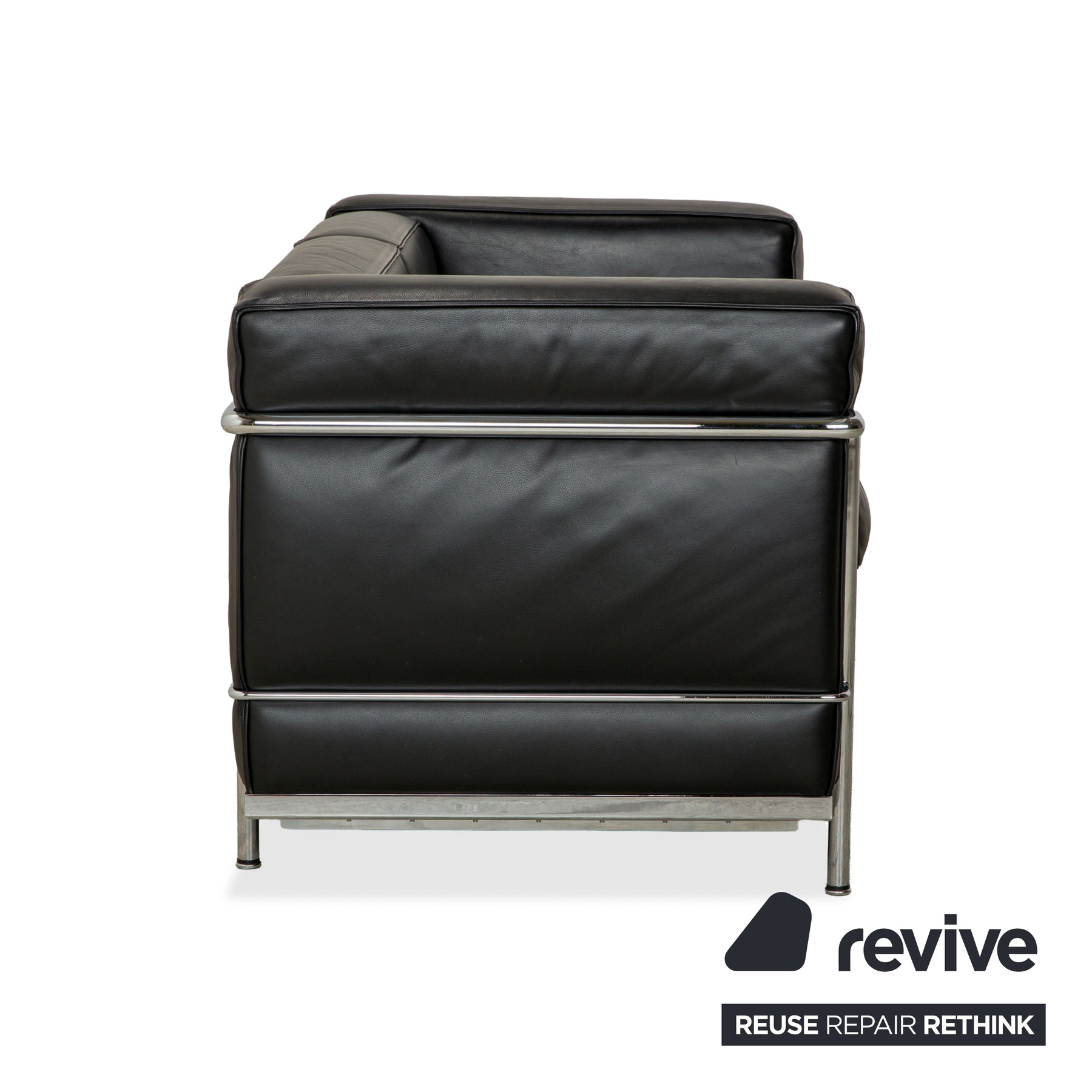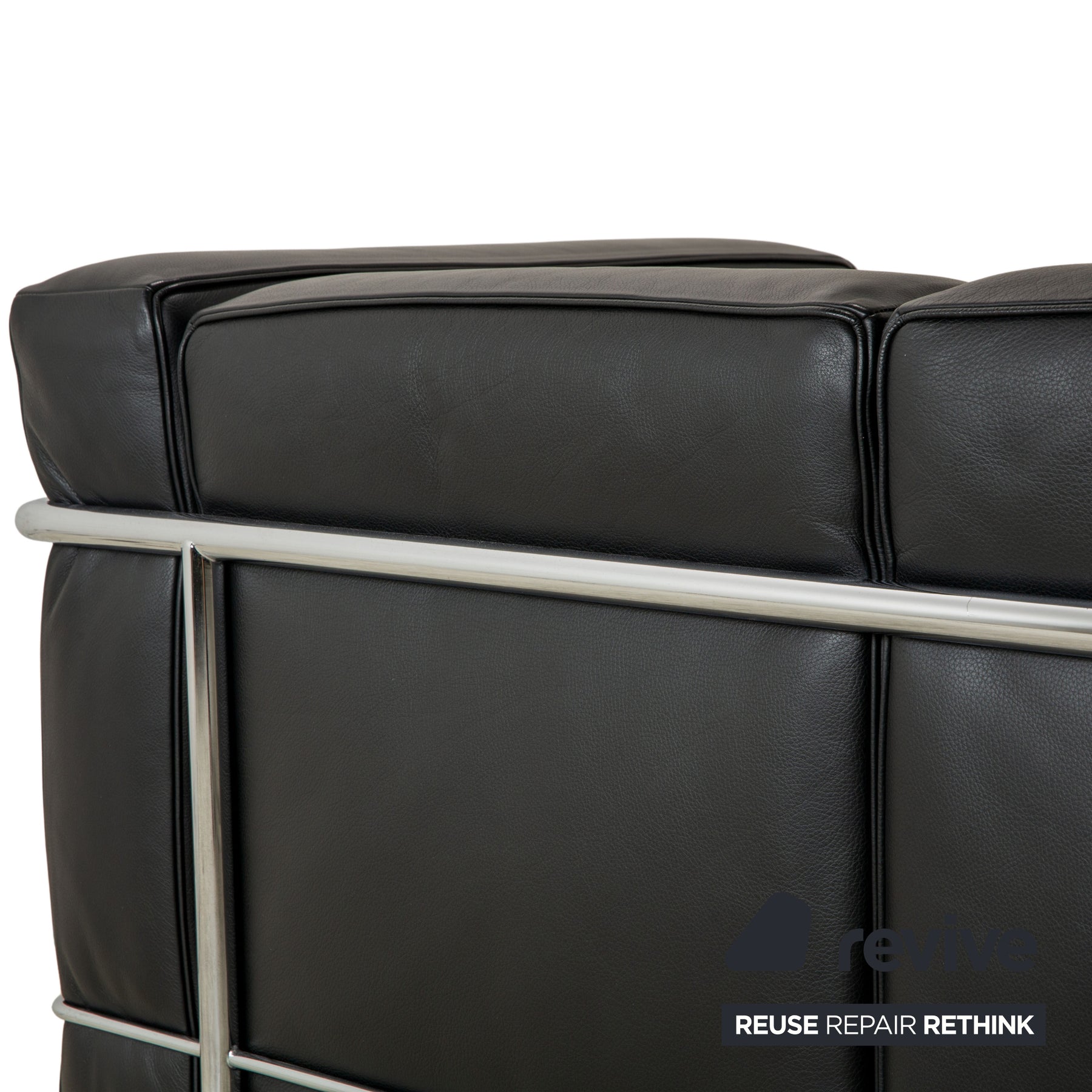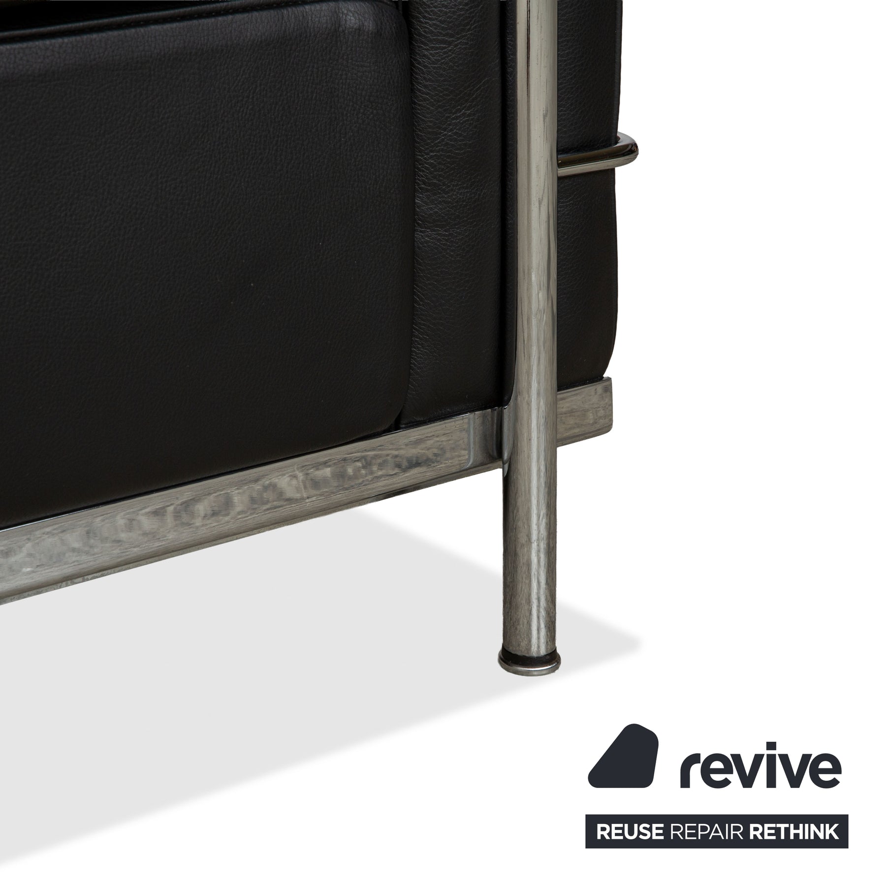Canapé deux places en cuir noir Cassina LC 2, style Le Corbusier chromé