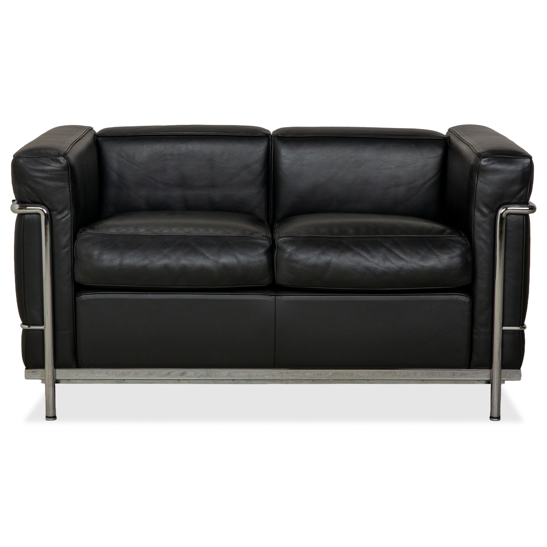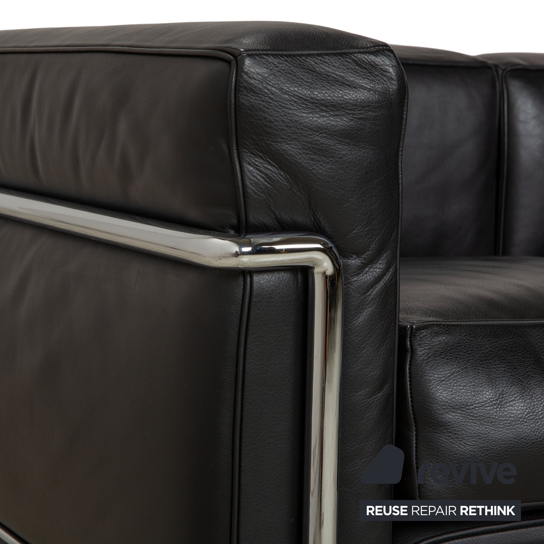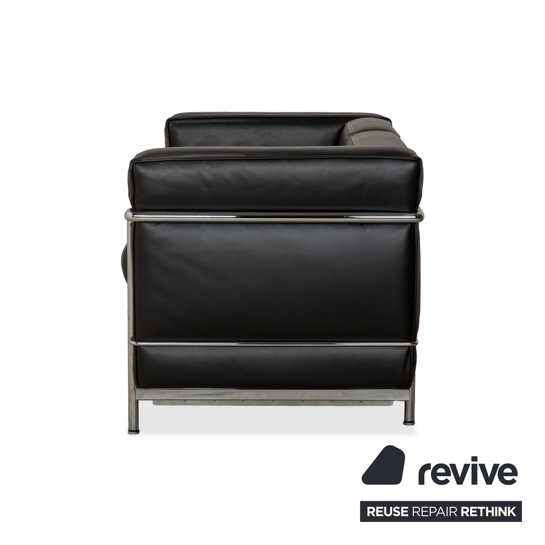 Canapé deux places en cuir noir Cassina LC 2, style Le Corbusier chromé