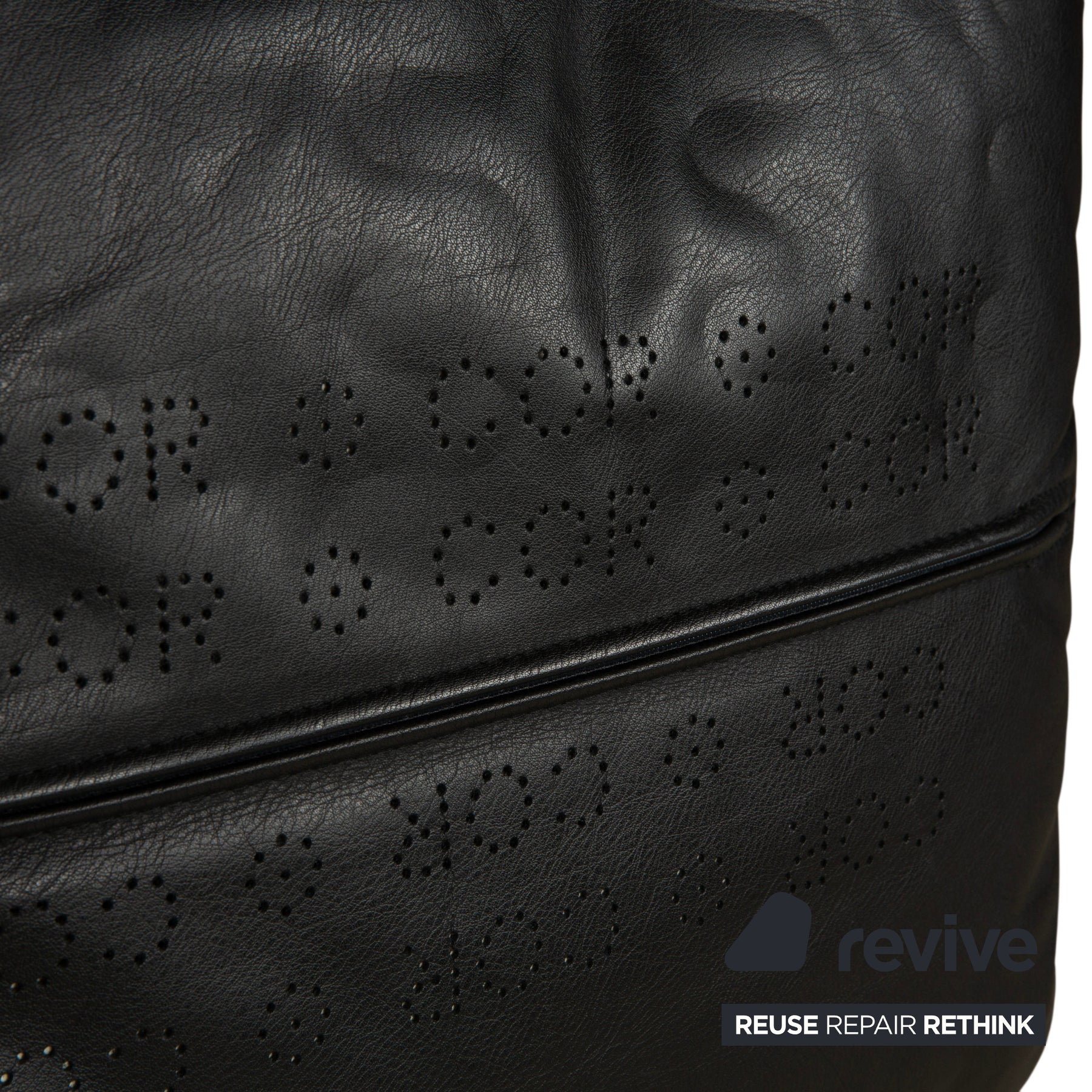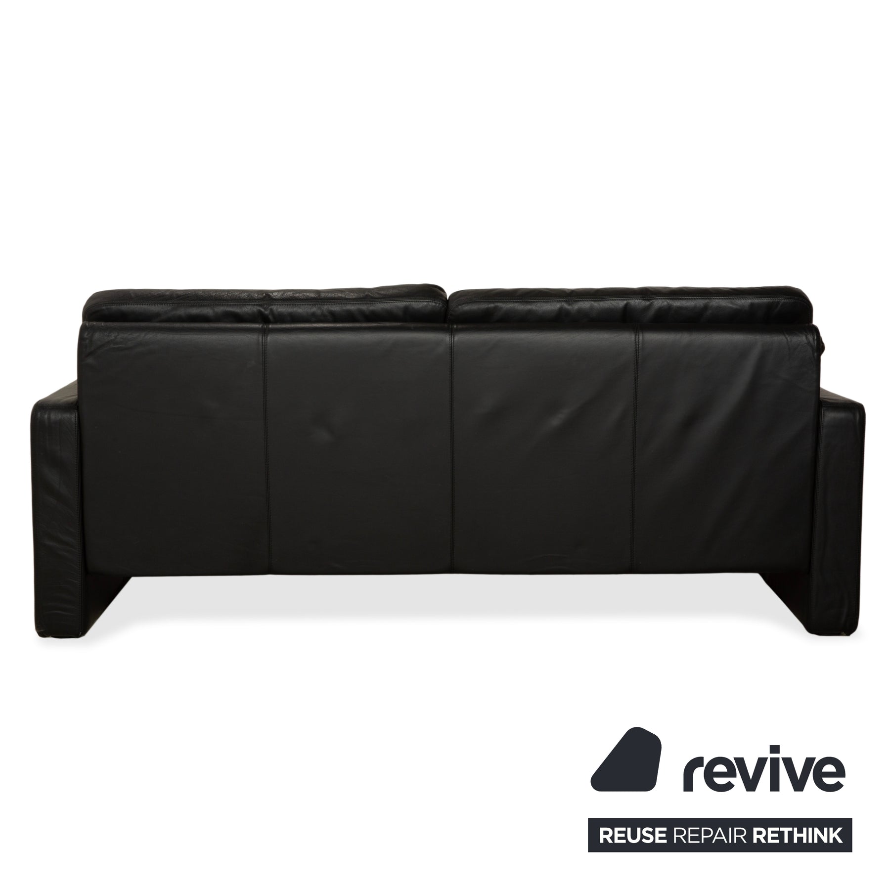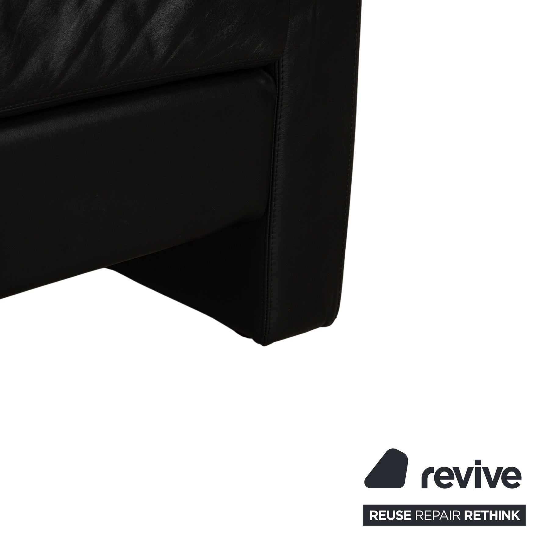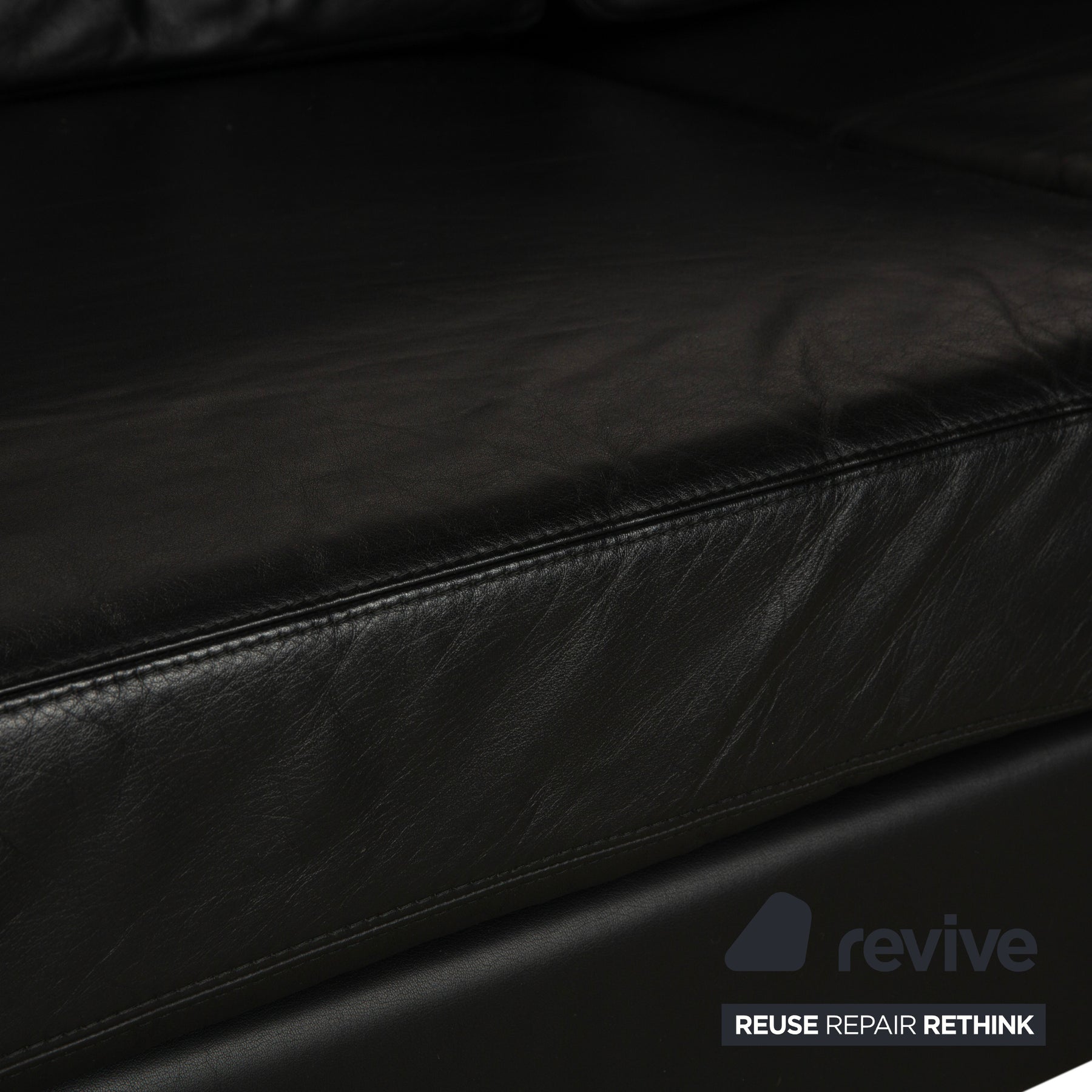 Ce canapé compact deux places est présenté ici en cuir noir, lui conférant une allure élégante et résolument sophistiquée. Malgré sa forme épurée, presque cubique, il n'a rien d'austère : les coussins de dossier amovibles et surtout les coussins d'accoudoirs moelleux adoucissent ses lignes géométriques. Ils créent une allure décontractée qui inspire immédiatement le confort et adoucit la structure par ailleurs stricte.