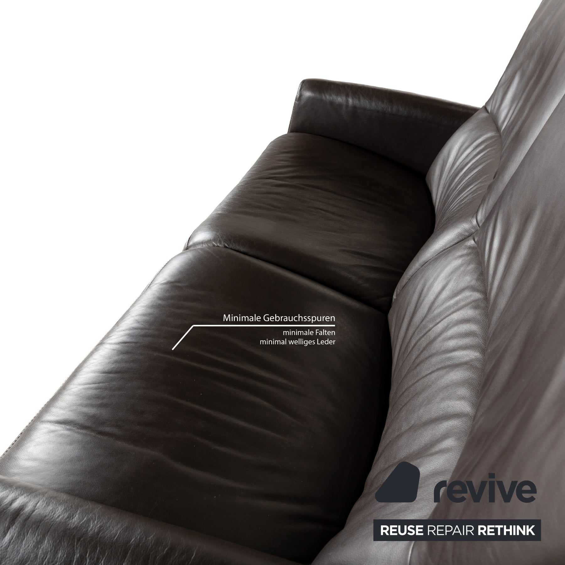 Le canapé 4562 de Himolla est recouvert de cuir marron-gris et repose sur d'élégants pieds en métal noir légèrement inclinés. Il se caractérise par son design classique et axé sur le confort. Des dossiers hauts et un rembourrage confortable font de ce canapé deux places le nouvel endroit préféré du salon moderne.
