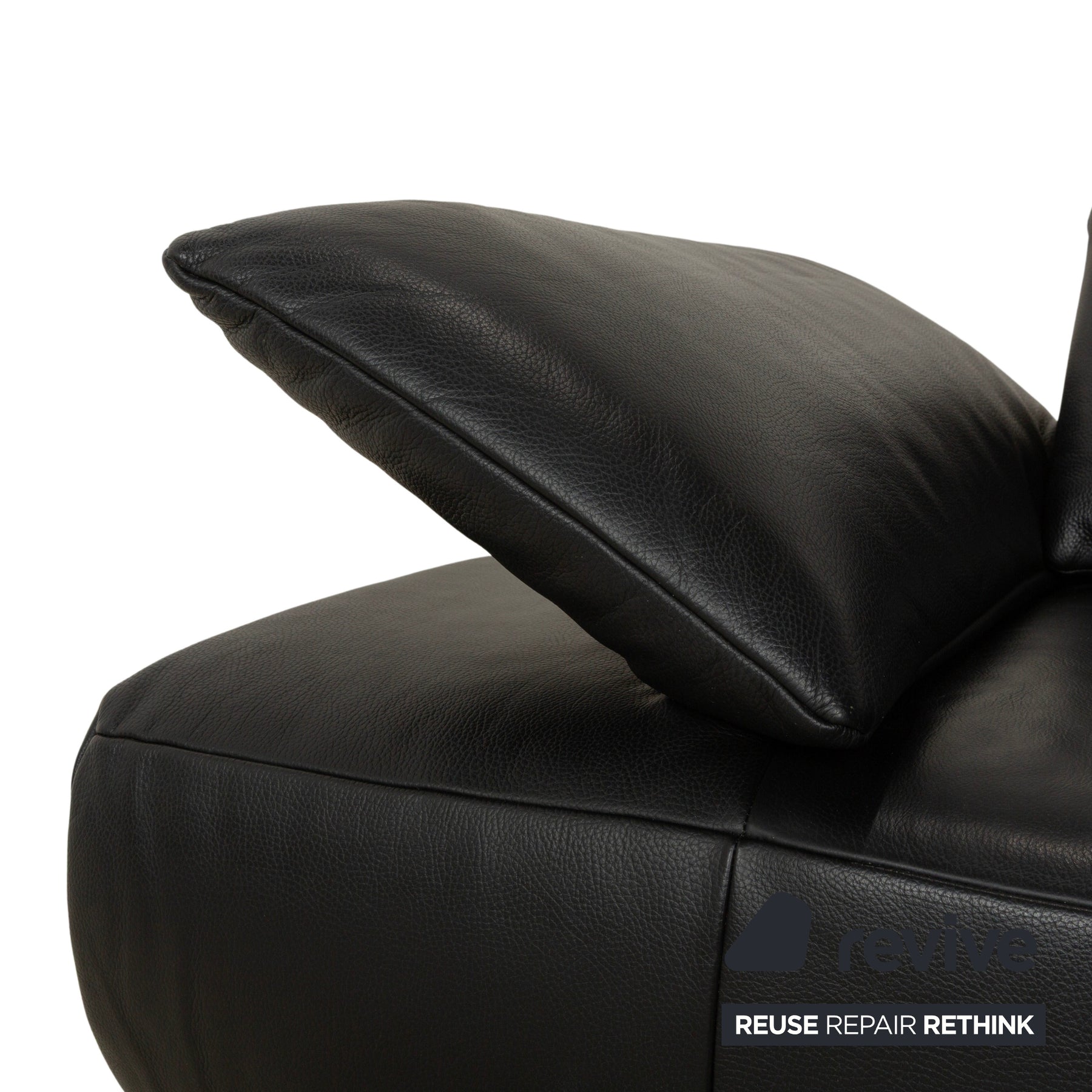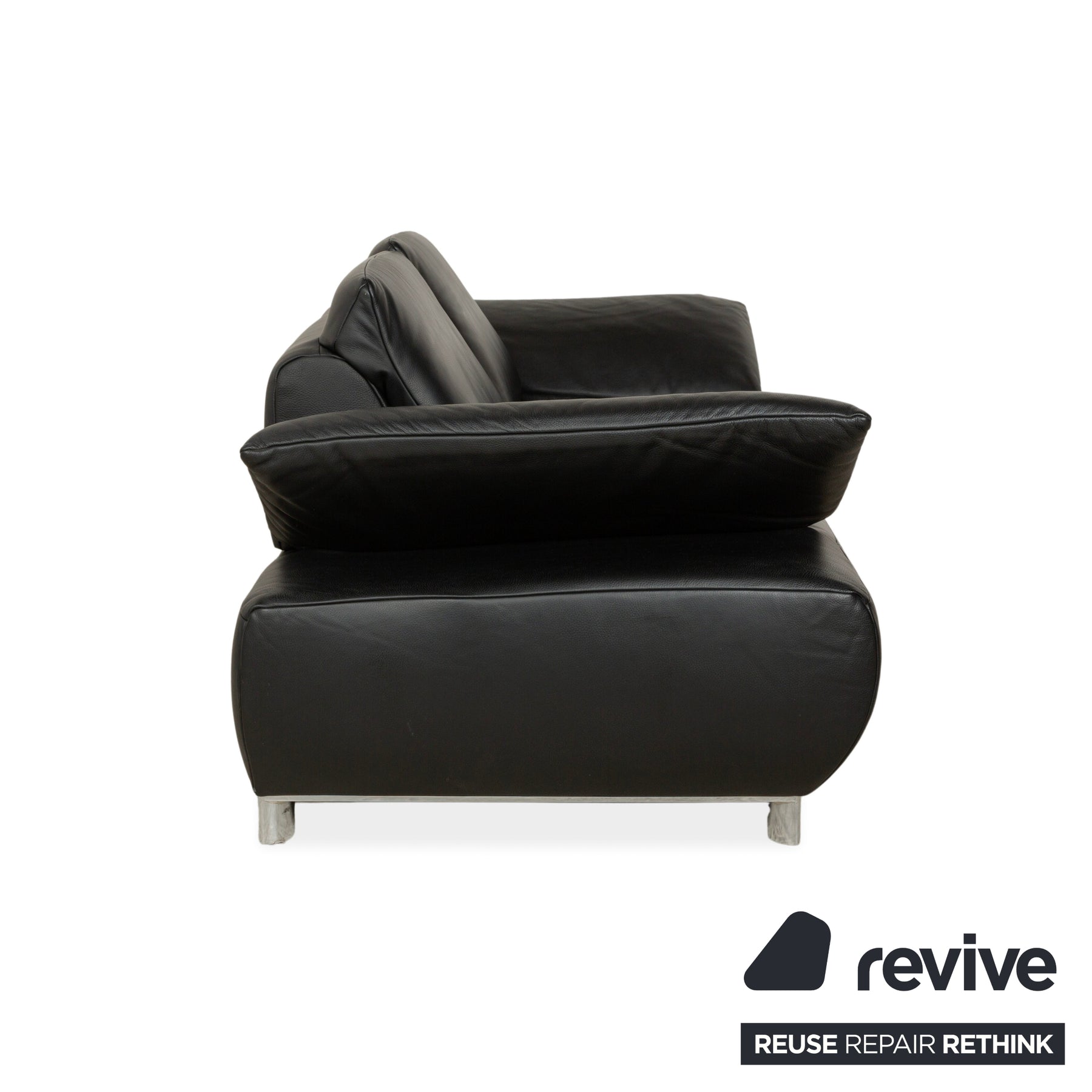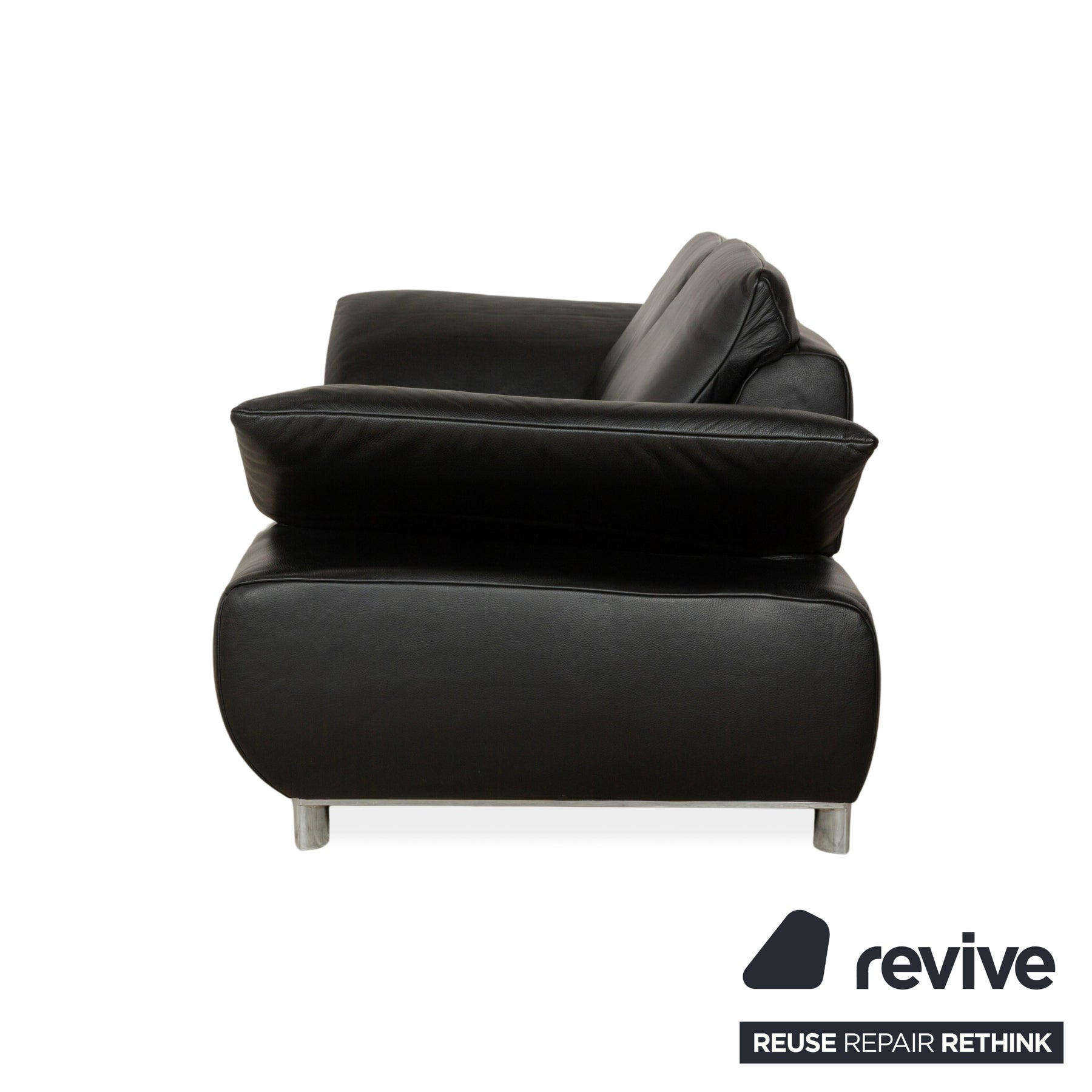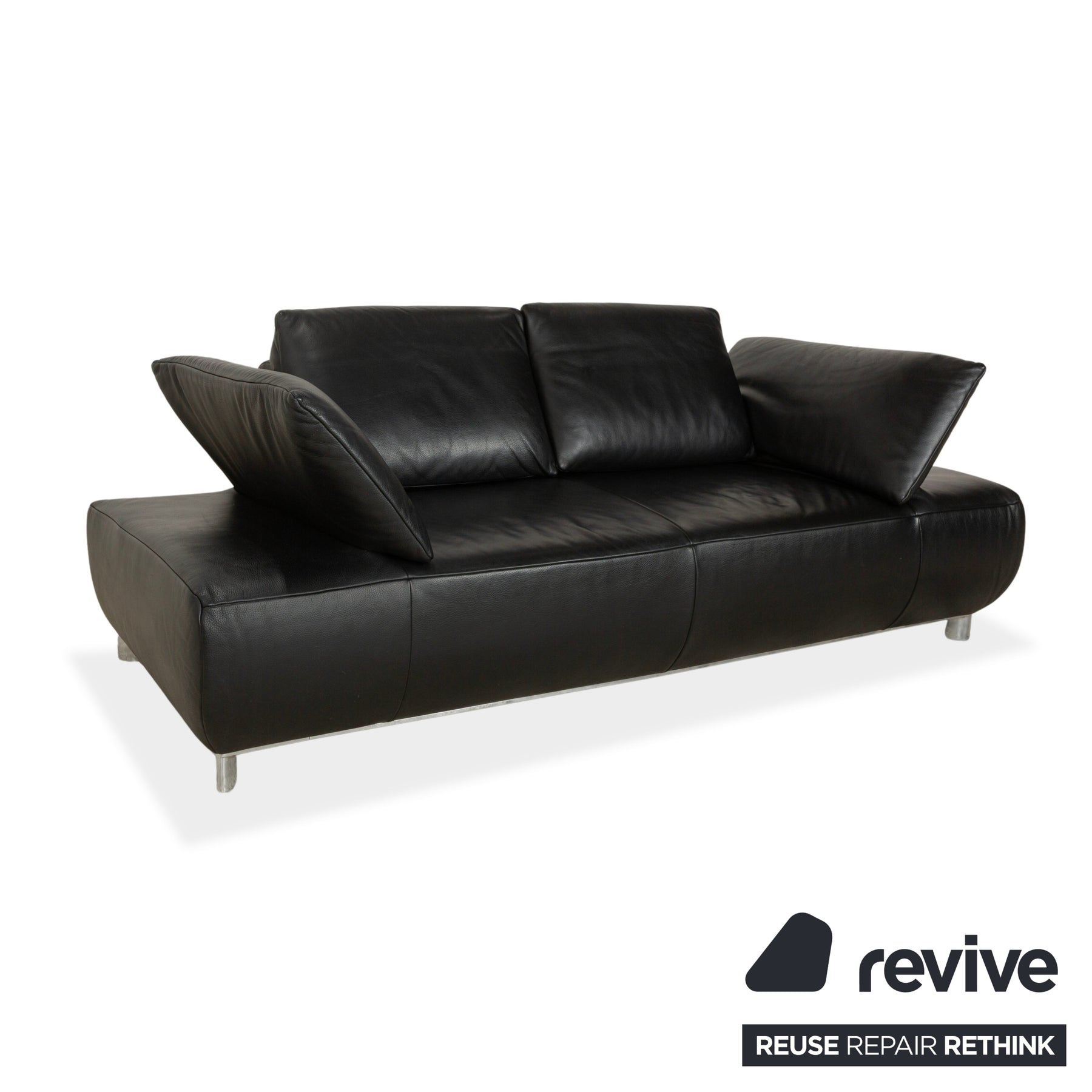 Le modèle Volare du fabricant allemand Koinor est revêtu de cuir véritable noir et repose sur des pieds ronds en métal. Le design remarquable de ce canapé deux places se distingue par sa forme. Les dossiers et les accoudoirs sont rabattables.