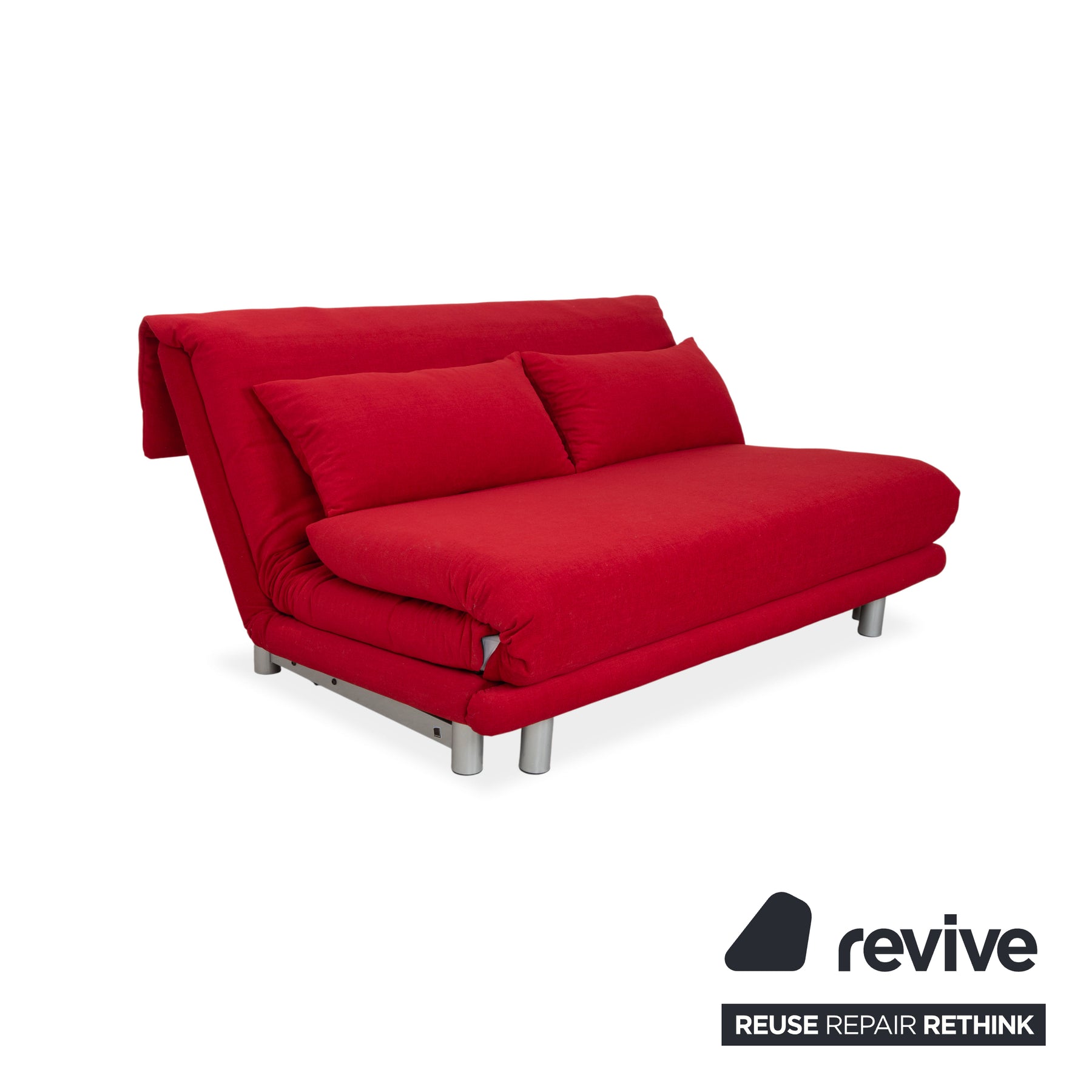 Canapé-lit manuel trois places Ligne Roset Multy en tissu rouge, réfection de canapé