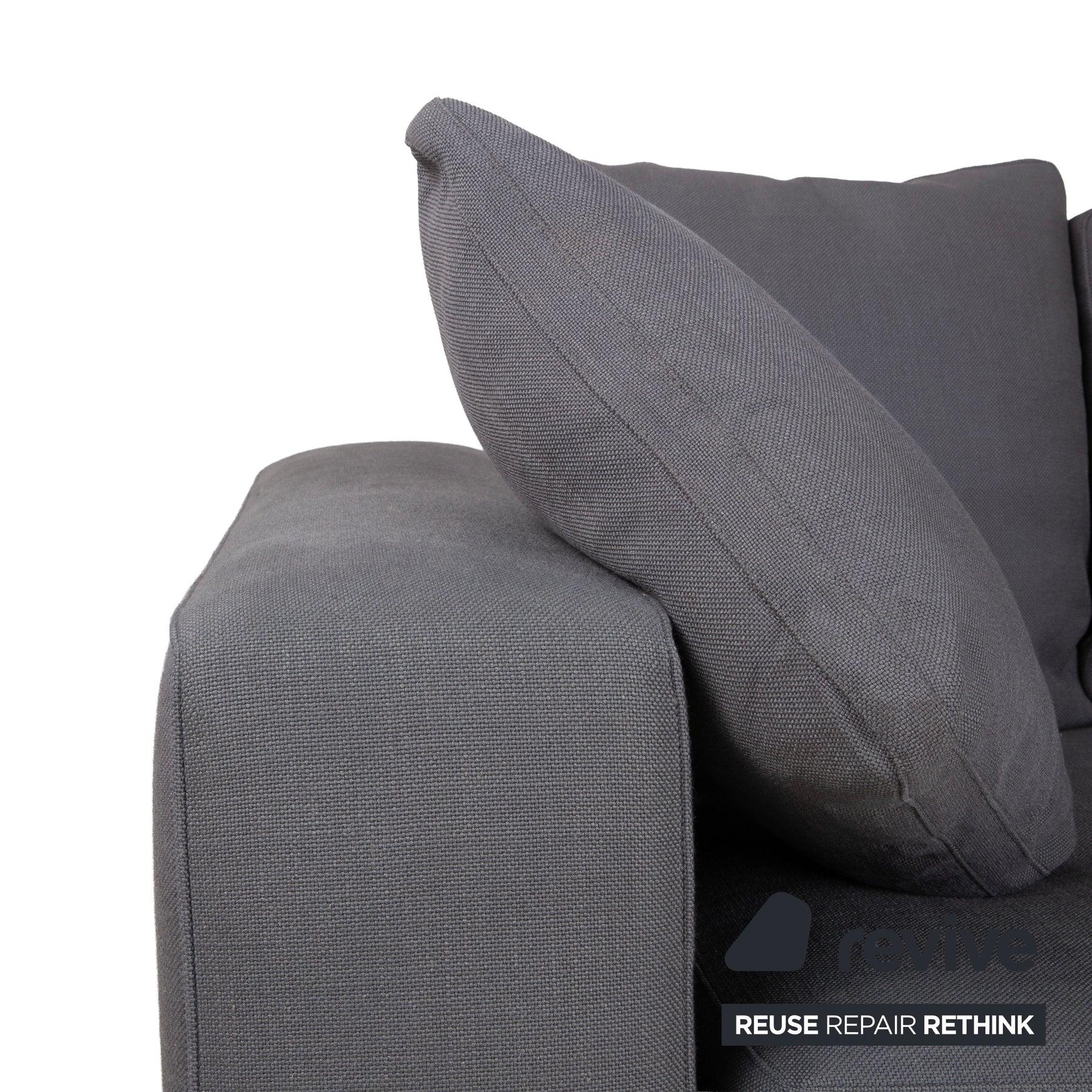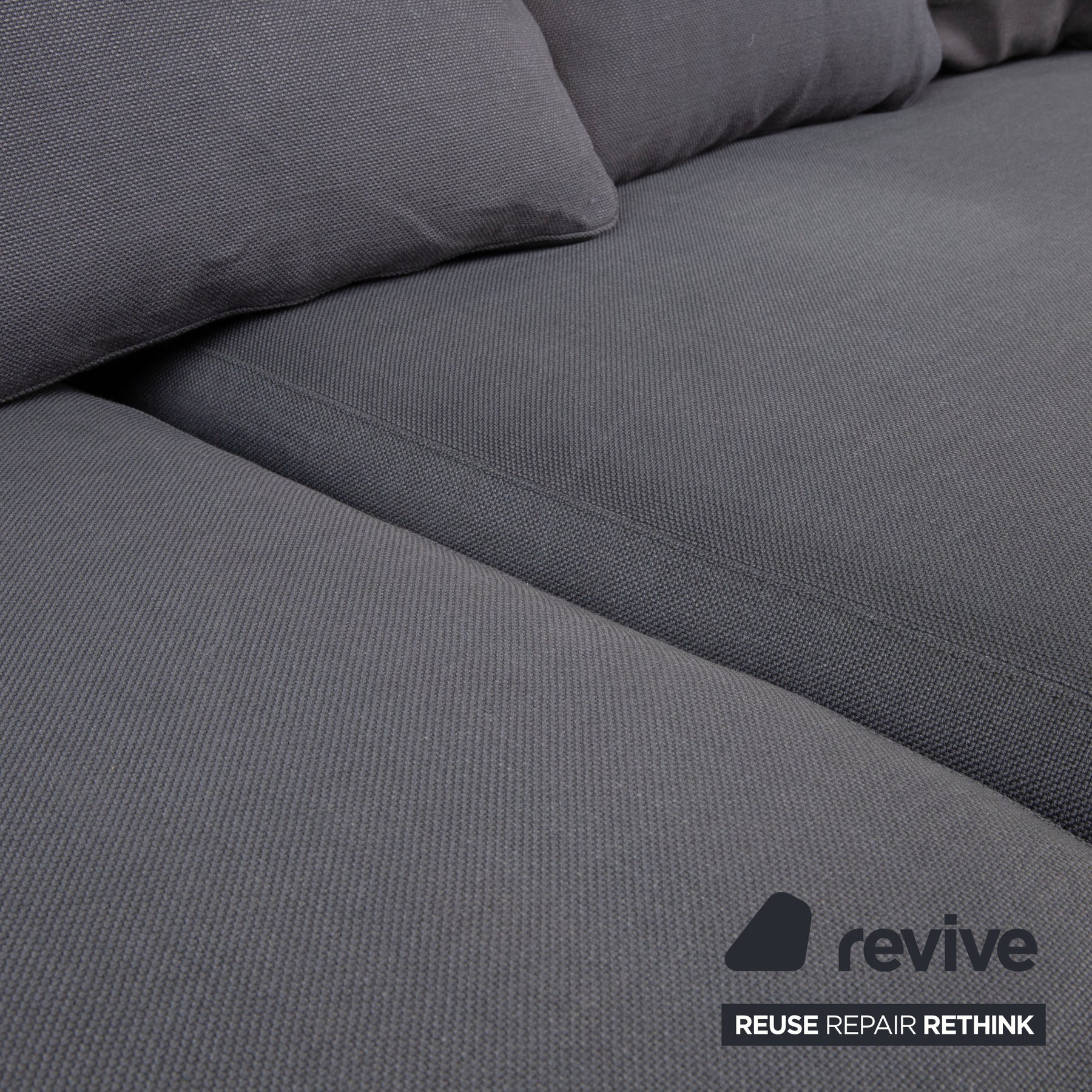 Le tissu haut de gamme, d'un gris foncé intemporel, est élégant et s'harmonise facilement avec d'autres meubles. Avec ses assises profondes et généreuses et ses coussins de dossier souples et moelleux, ce canapé invite à la détente et au farniente.