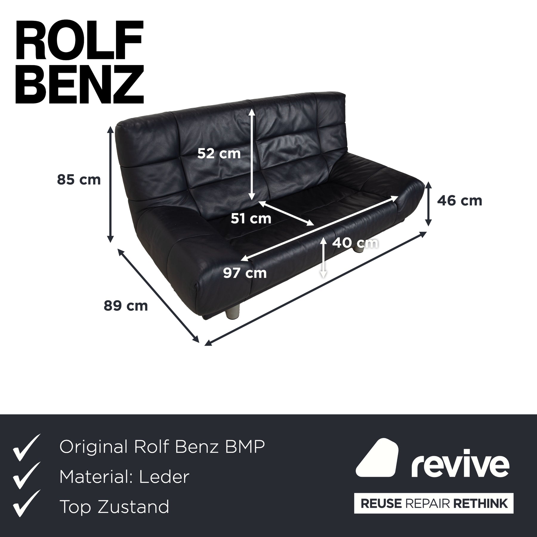 Canapé deux places en cuir bleu foncé Rolf Benz BMP 418