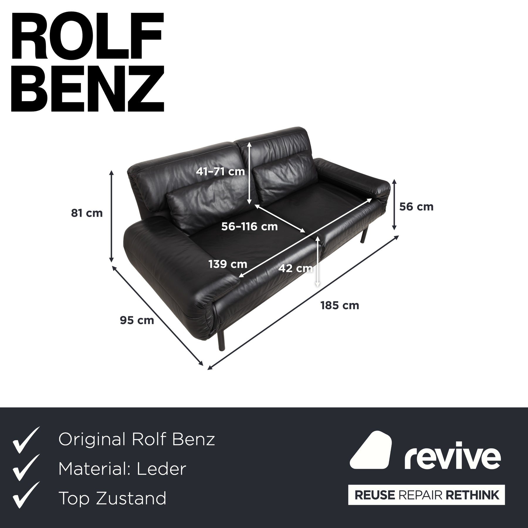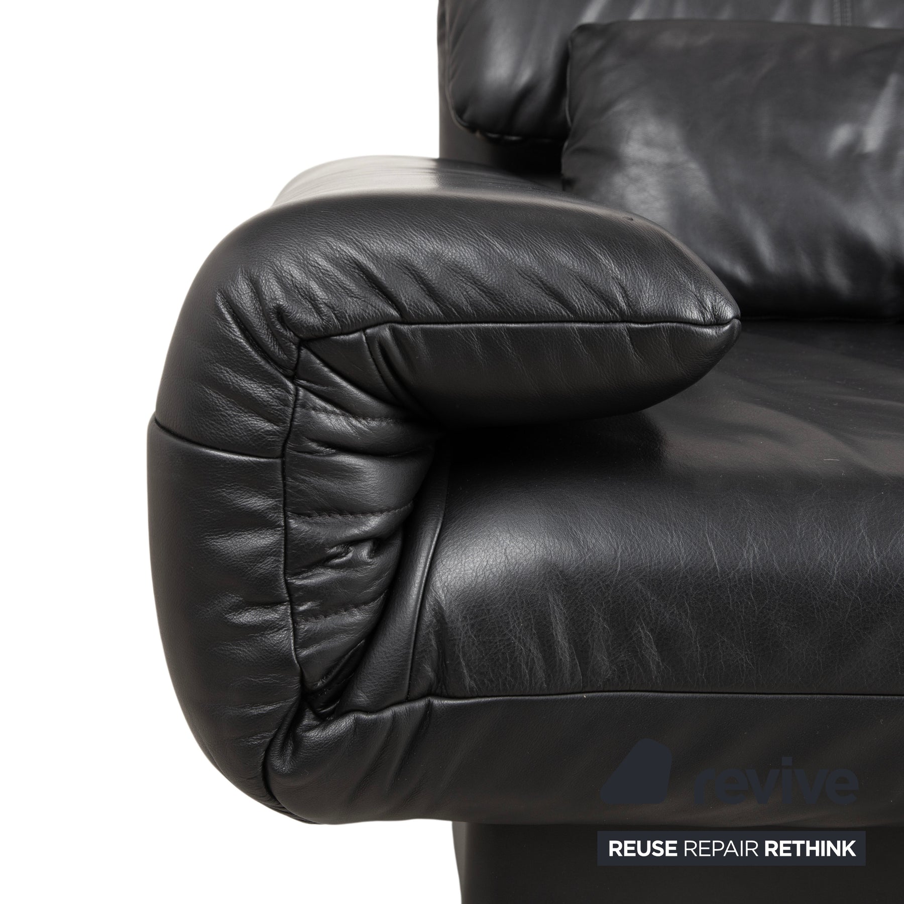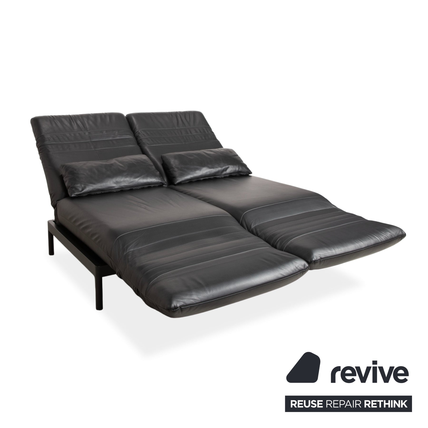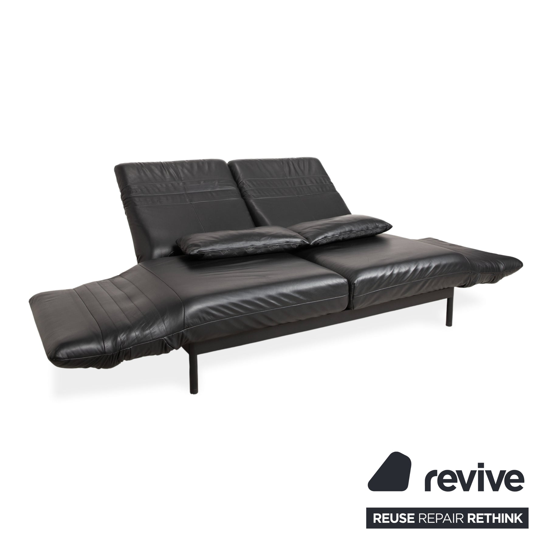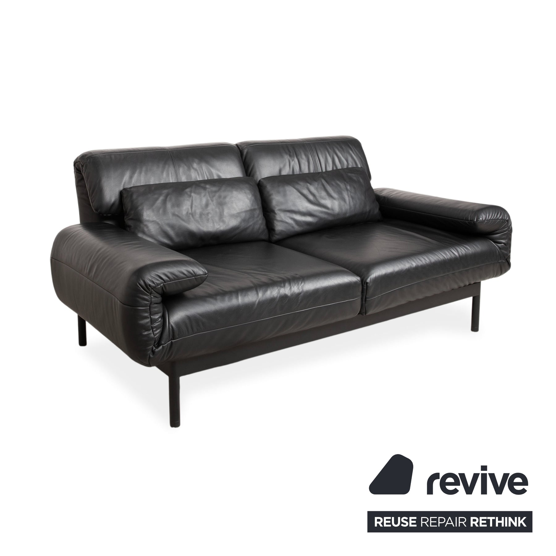 Canapé deux places Rolf Benz Plura en cuir noir à commande manuelle