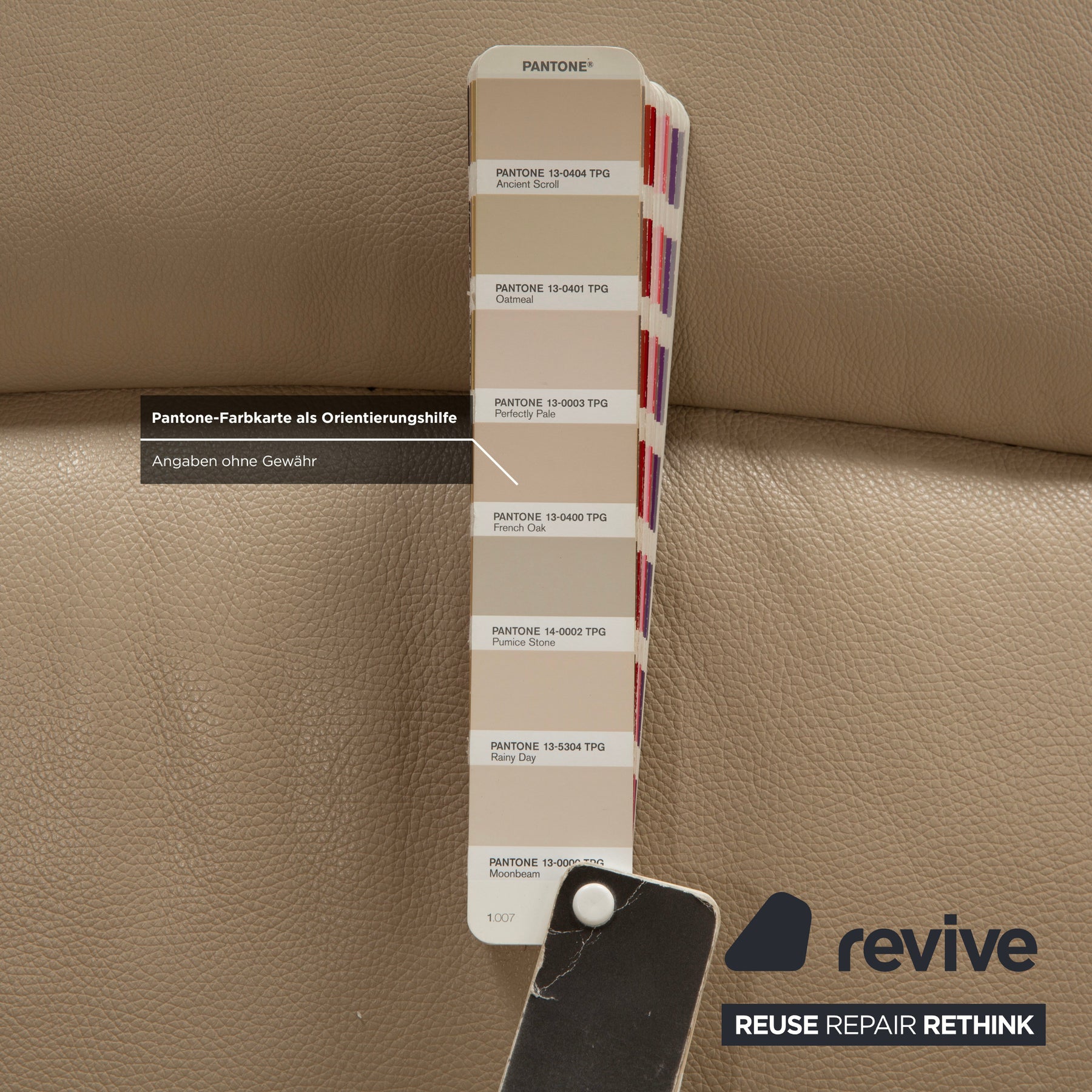 Le canapé deux places Panorama de Stressless est revêtu de cuir crème et repose sur des côtés allant du sol au plafond, reposant sur de robustes pieds noirs. L'assise et le dossier forment une seule coque continue qui s'adapte facilement aux mouvements du corps et permet un léger balancement en position assise. Cela crée une assise particulièrement confortable. Ce canapé allie style moderne et confort exceptionnel. Le revêtement en cuir véritable beige clair/crème lui confère une allure sophistiquée.