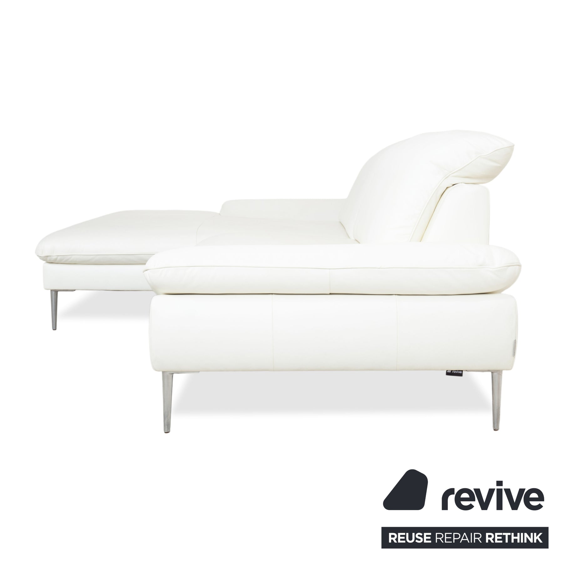 Canapé d'angle en cuir blanc Willi Schillig, méridienne à réglage manuel, côté gauche
