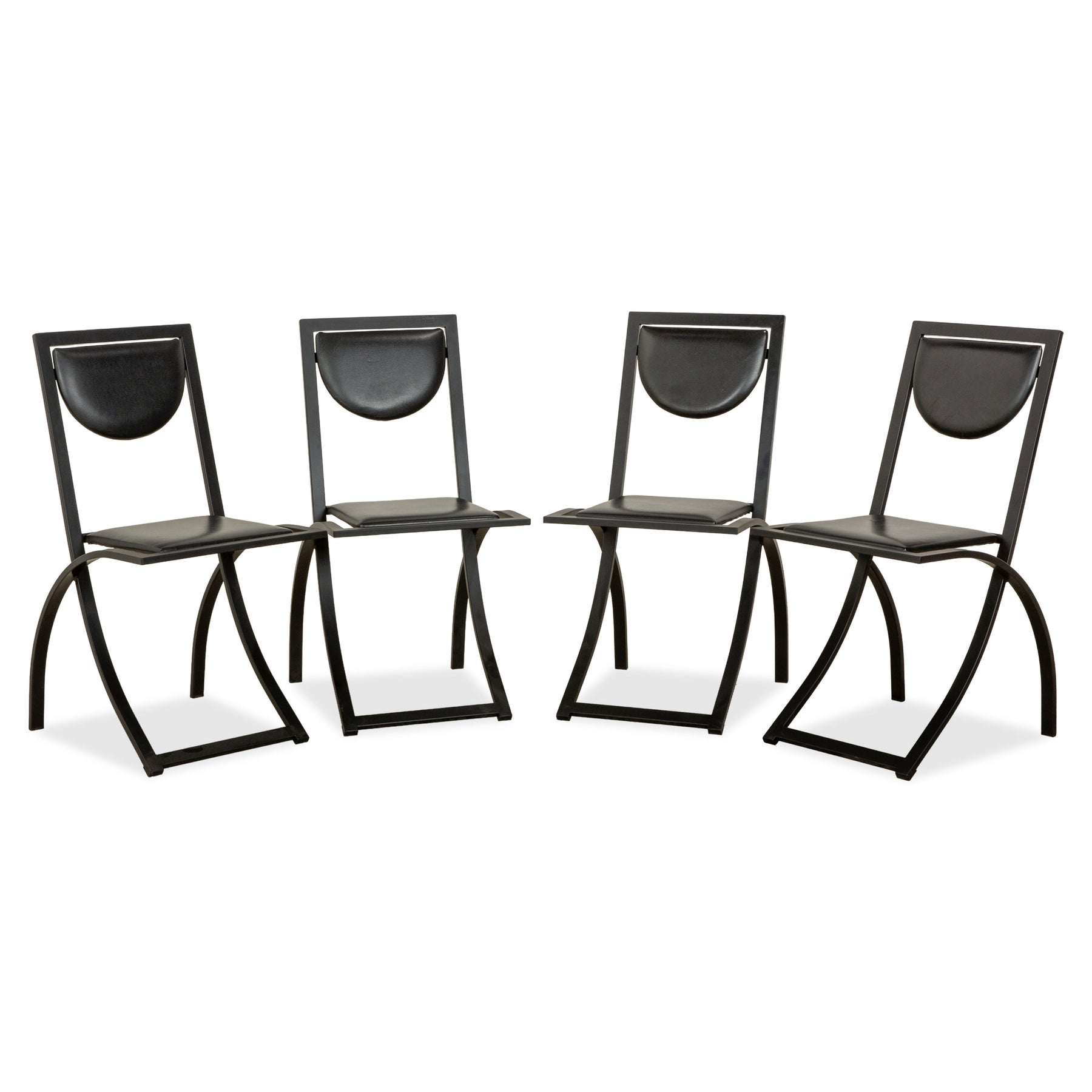 L'ensemble de chaises Sinus de KFF se compose d'un total de quatre chaises avec une structure en métal et une assise recouverte de cuir véritable noir. Le nom de cette chaise dit tout, car elle se caractérise par son design tout en courbes.