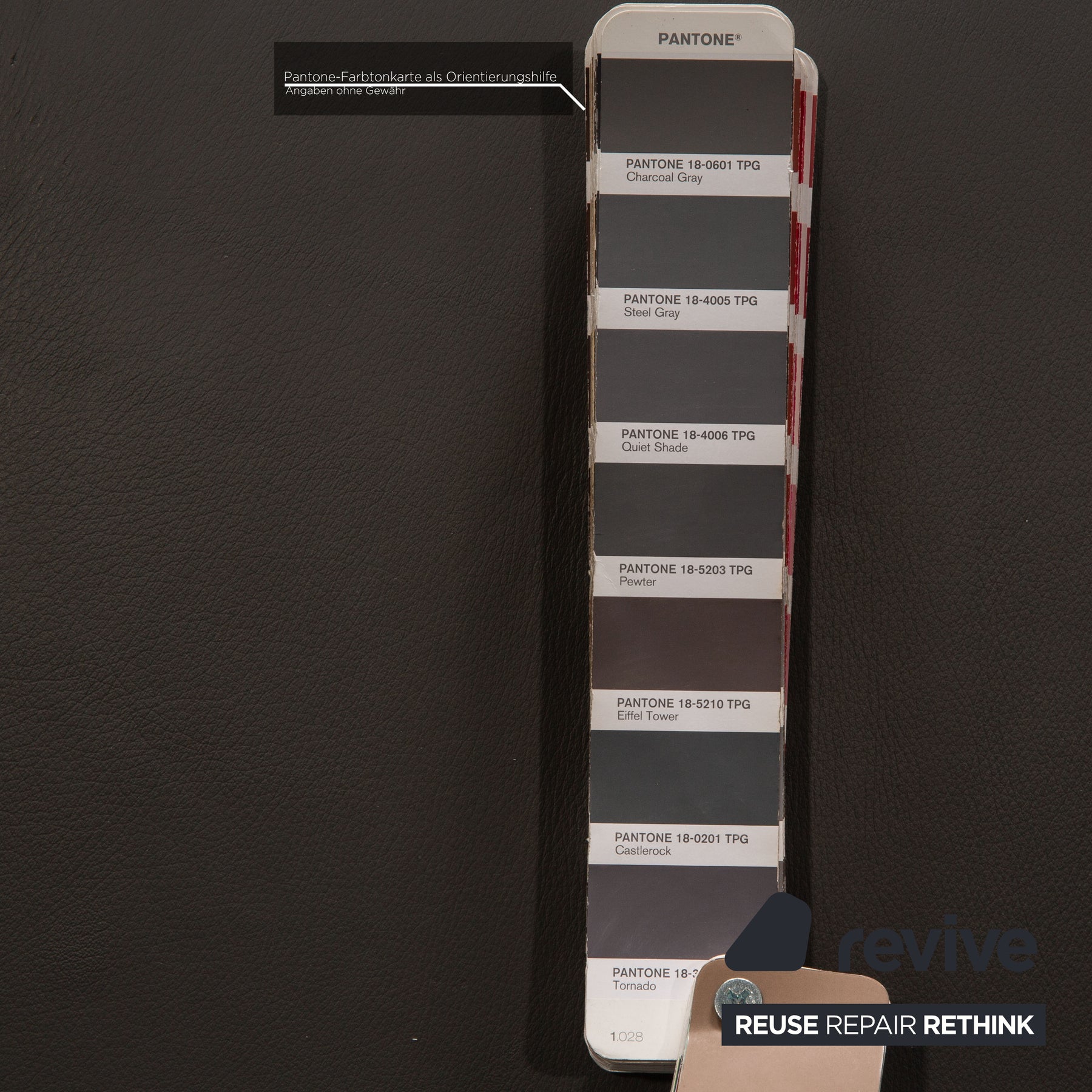 Le Cumuly trois places de Himolla est recouvert de cuir véritable gris et repose sur des pieds ronds et discrets. Il se caractérise par son design classique et son confort d'assise.