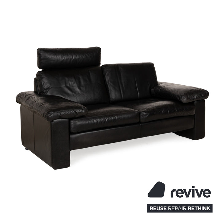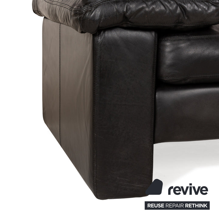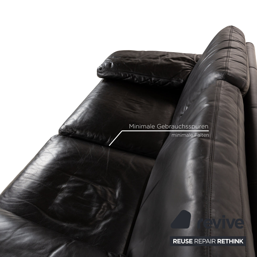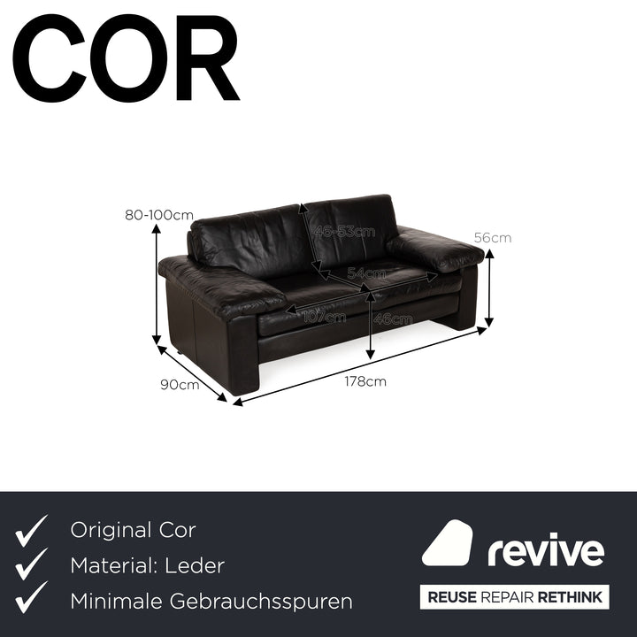 Le canapé Conseta de Cor est recouvert de cuir véritable noir et repose sur des panneaux latéraux allant du sol au plafond. Le design intemporel et classique caractérise ce biplace.