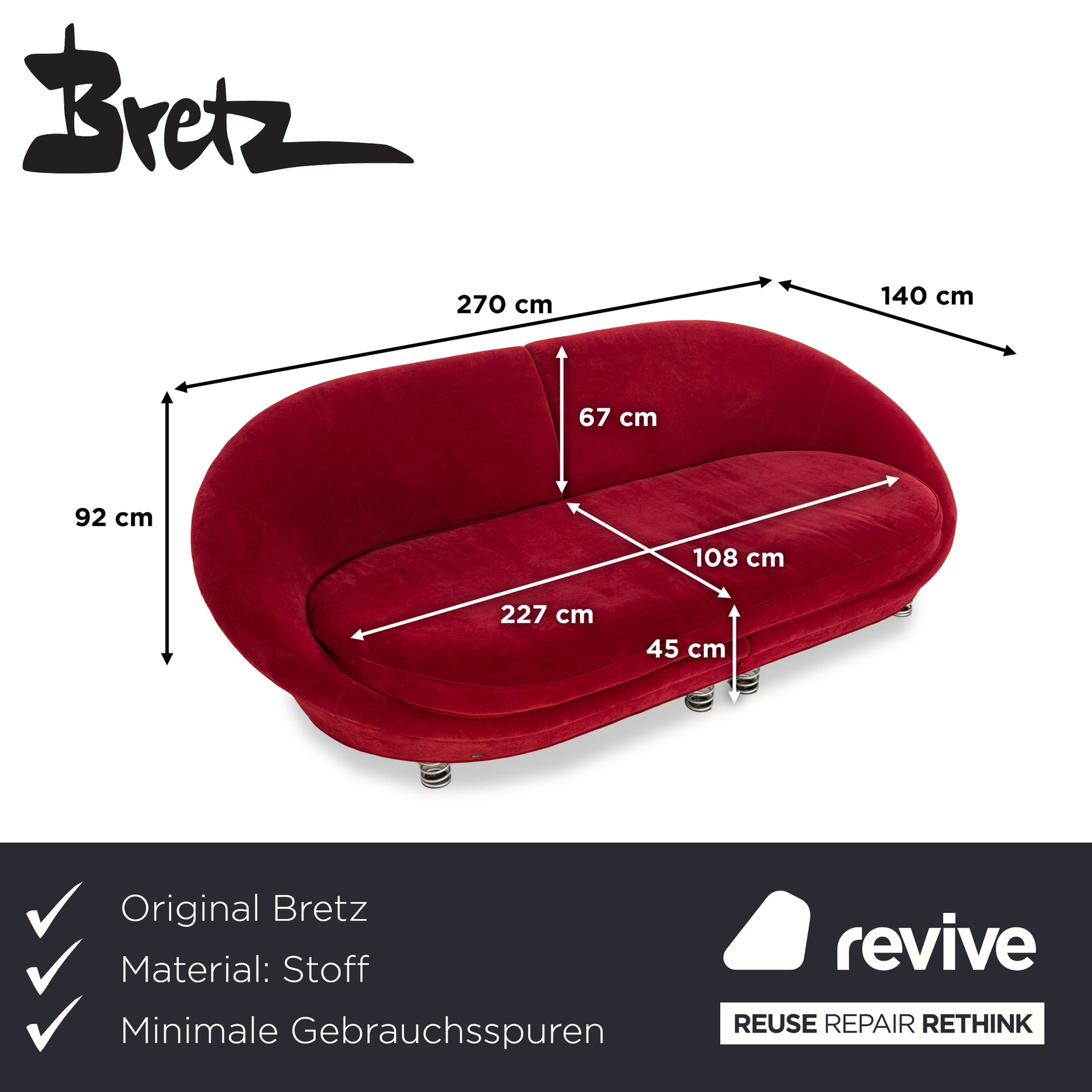 Depuis les années 1950, Bretz est synonyme de mobilier allemand capitonné au style distinctif, caractérisé par des couleurs et des formes audacieuses. La marque privilégie la fabrication artisanale : chaque pièce est confectionnée individuellement par des tapissiers expérimentés. Tissus veloutés, coutures originales et coussins moelleux composent un design qui rompt avec les conventions et transforme les pièces en espaces de vie dynamiques. Le mobilier Bretz allie confort et personnalité, et s’adresse à ceux qui recherchent un intérieur unique. Ici, durabilité et originalité se conjuguent à une approche intemporelle qui prend en compte dès le départ le potentiel des pièces d’occasion.