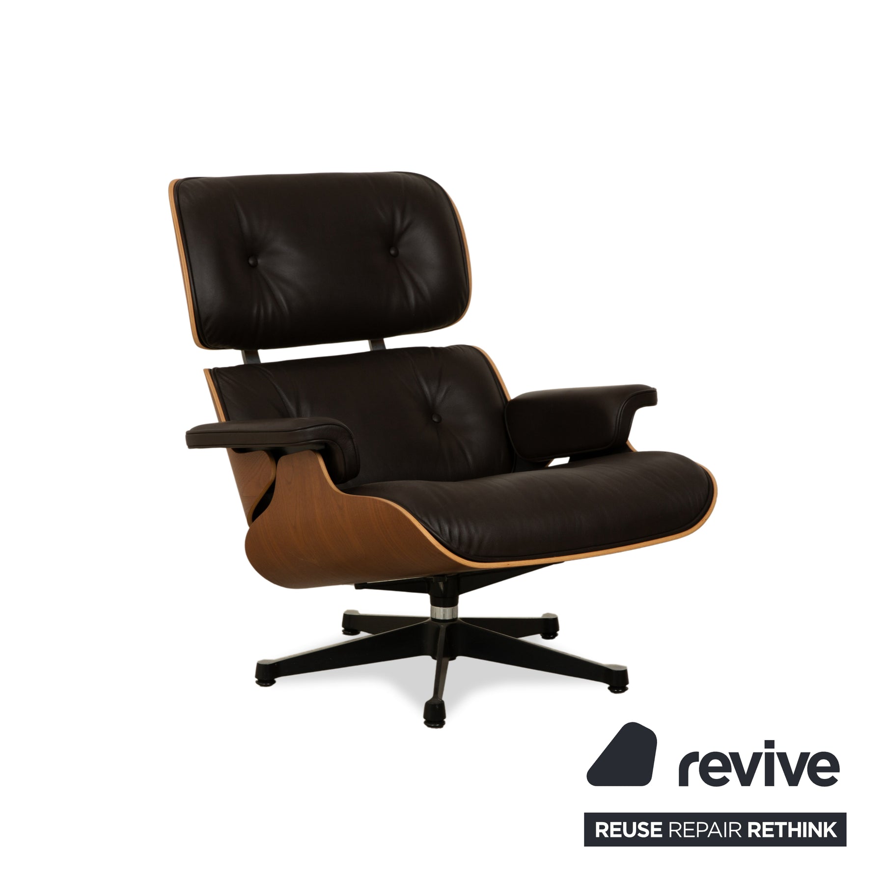 Ensemble de 2 chaises Vitra Eames Lounge avec ottoman en cuir marron foncé, fonction manuelle